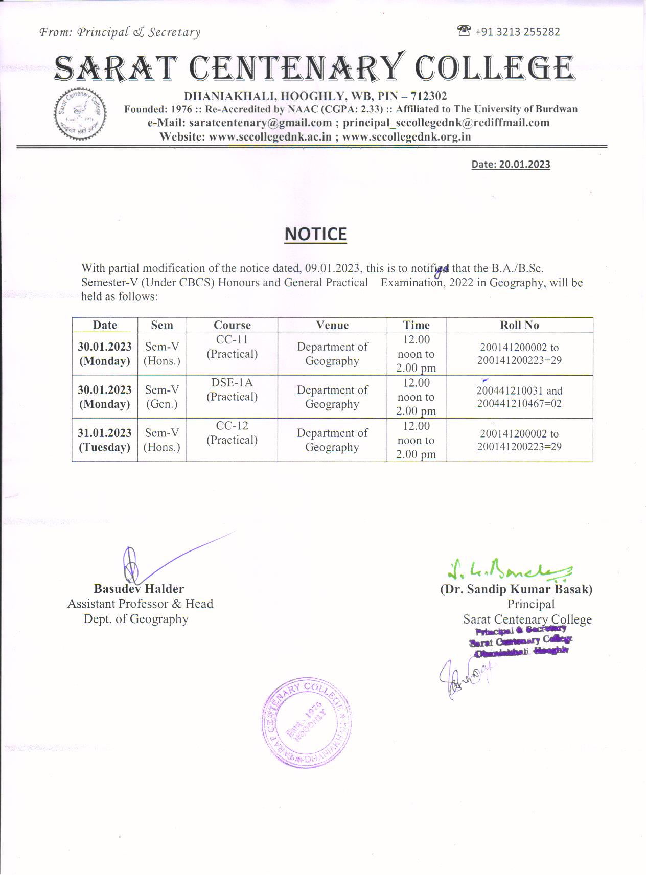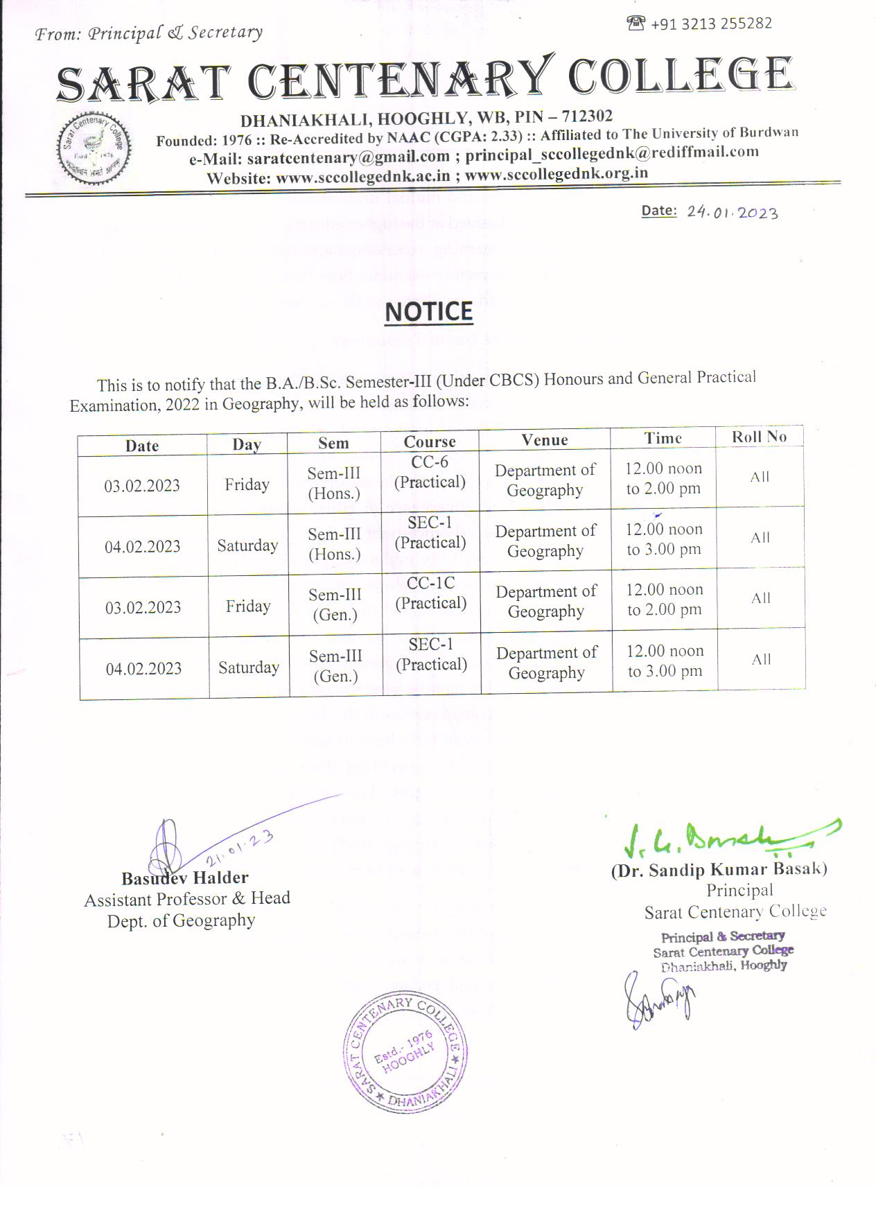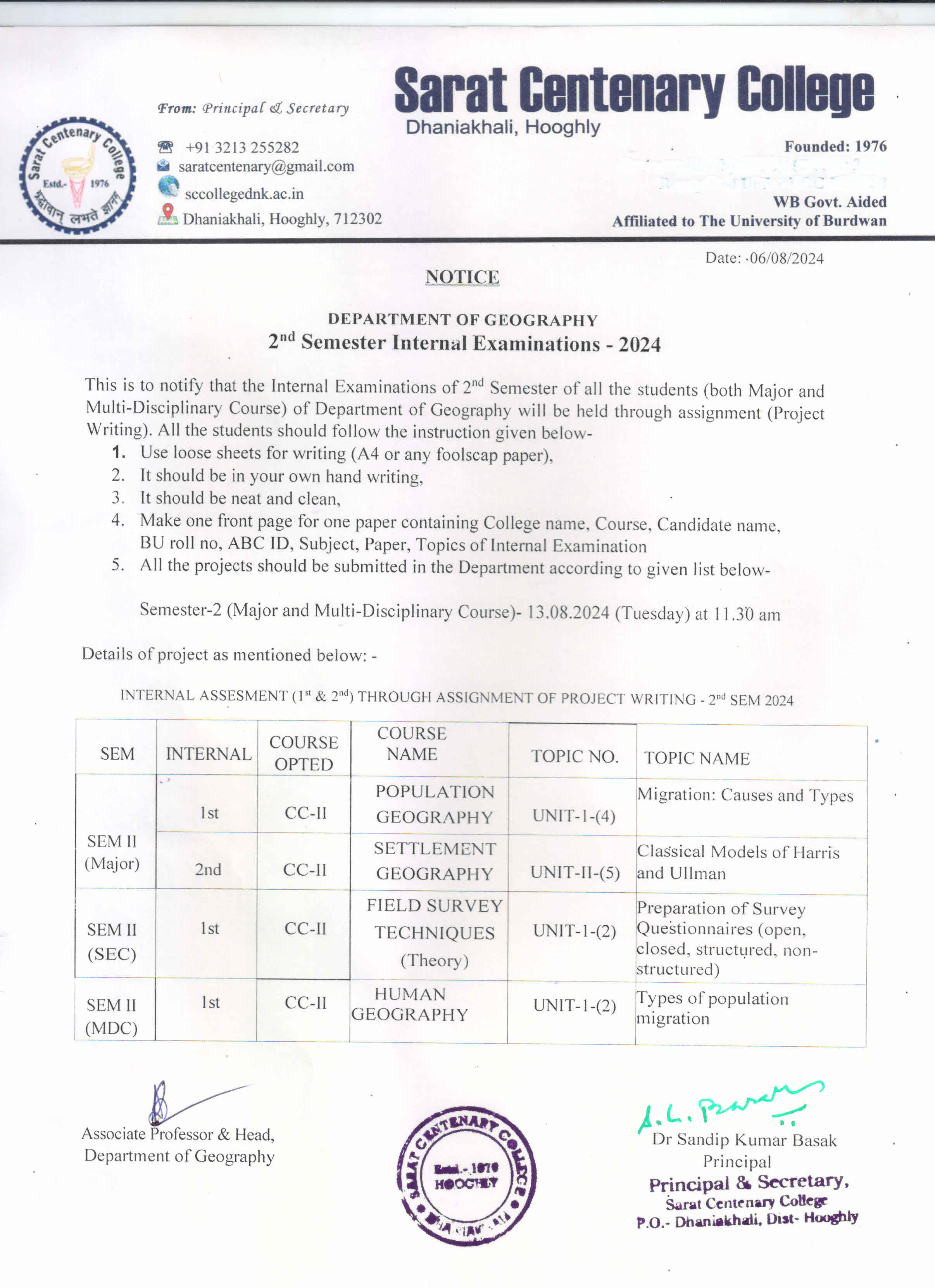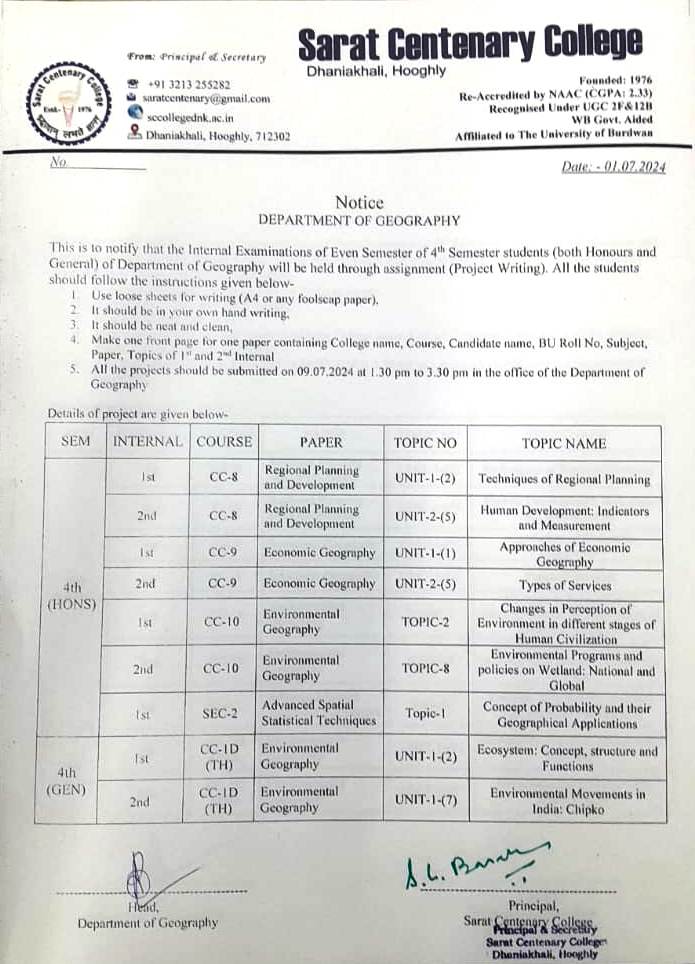 sem 2 geo internal exam notice |