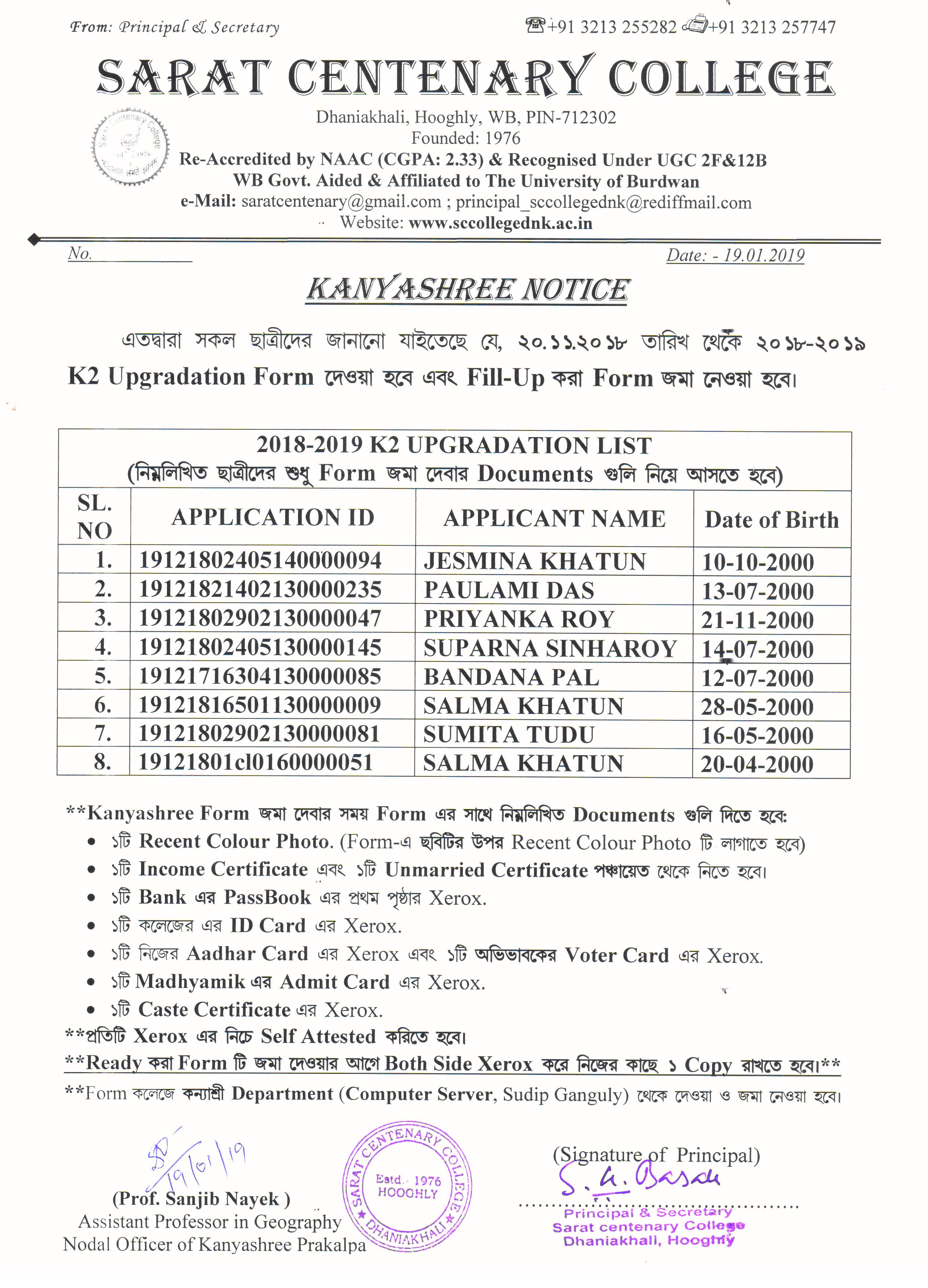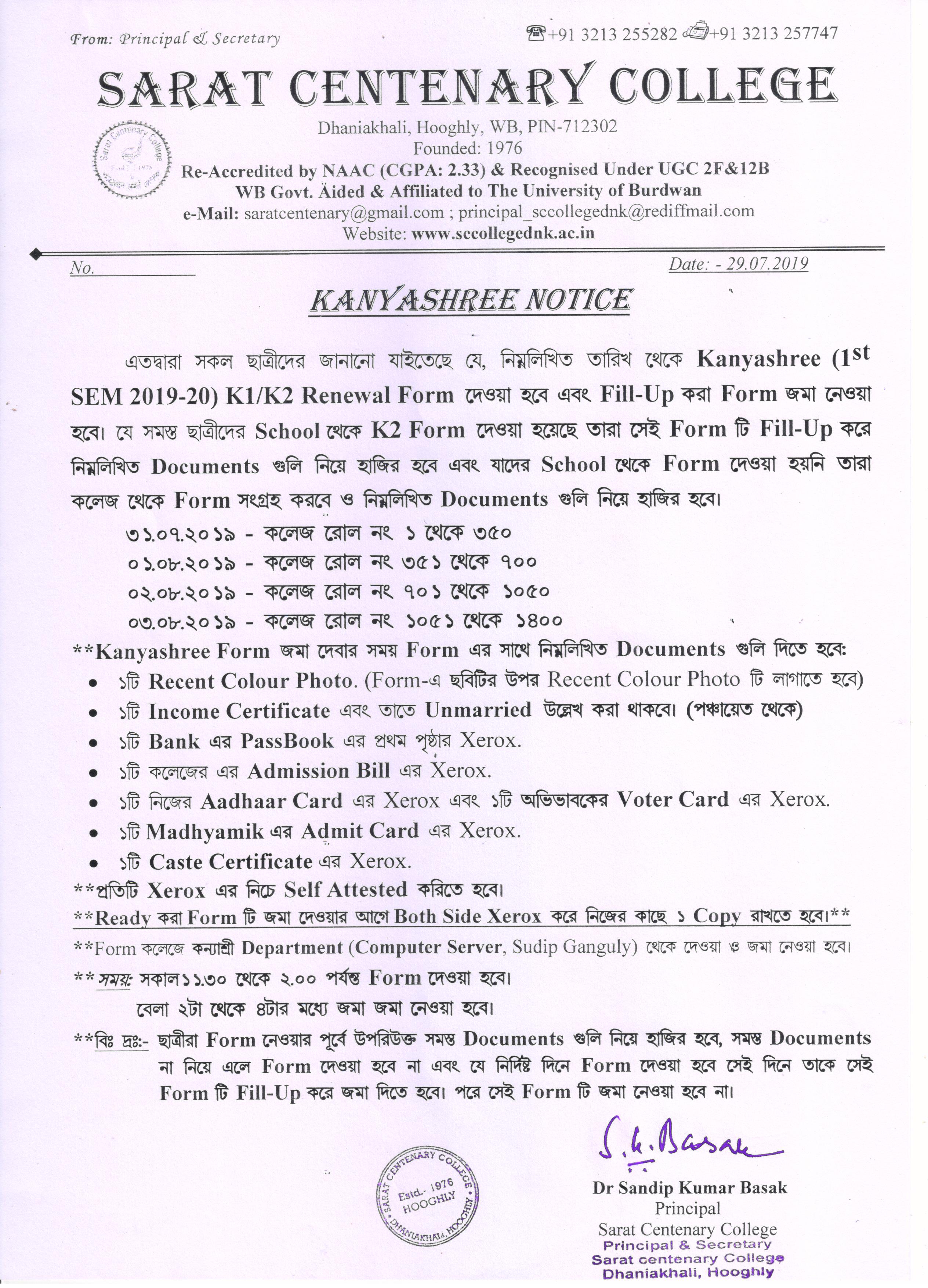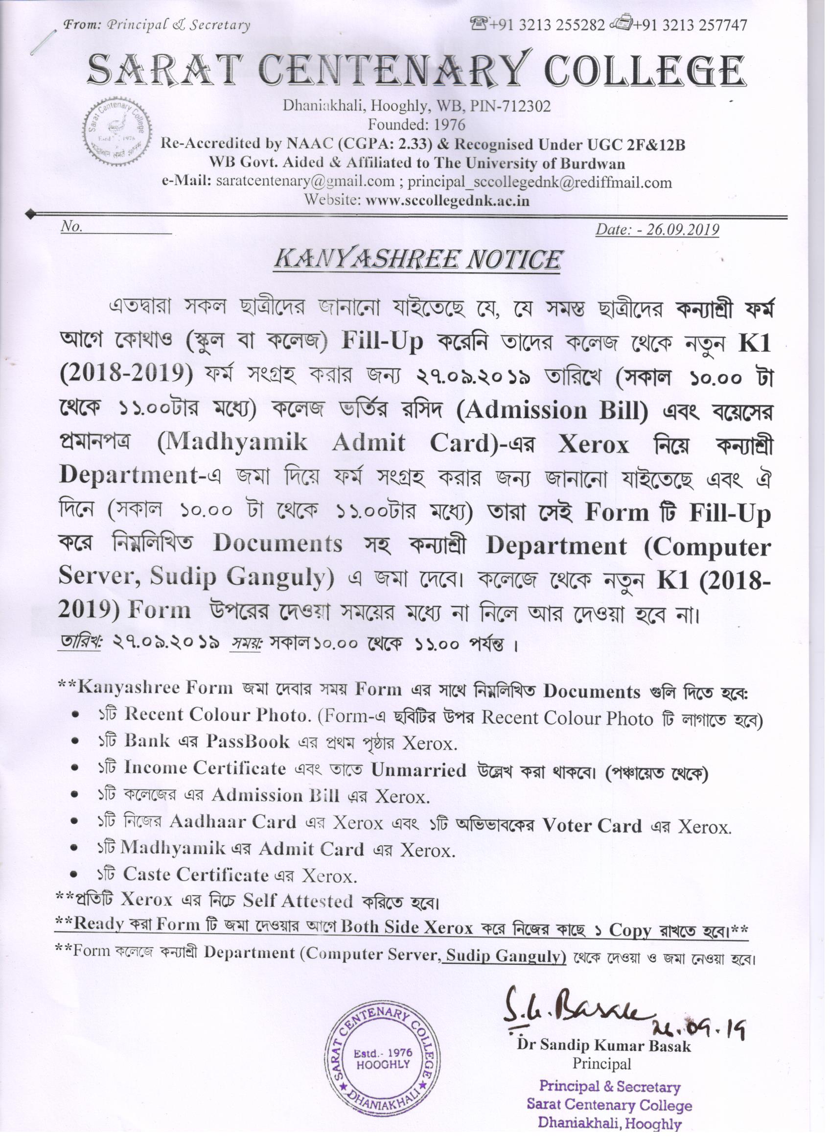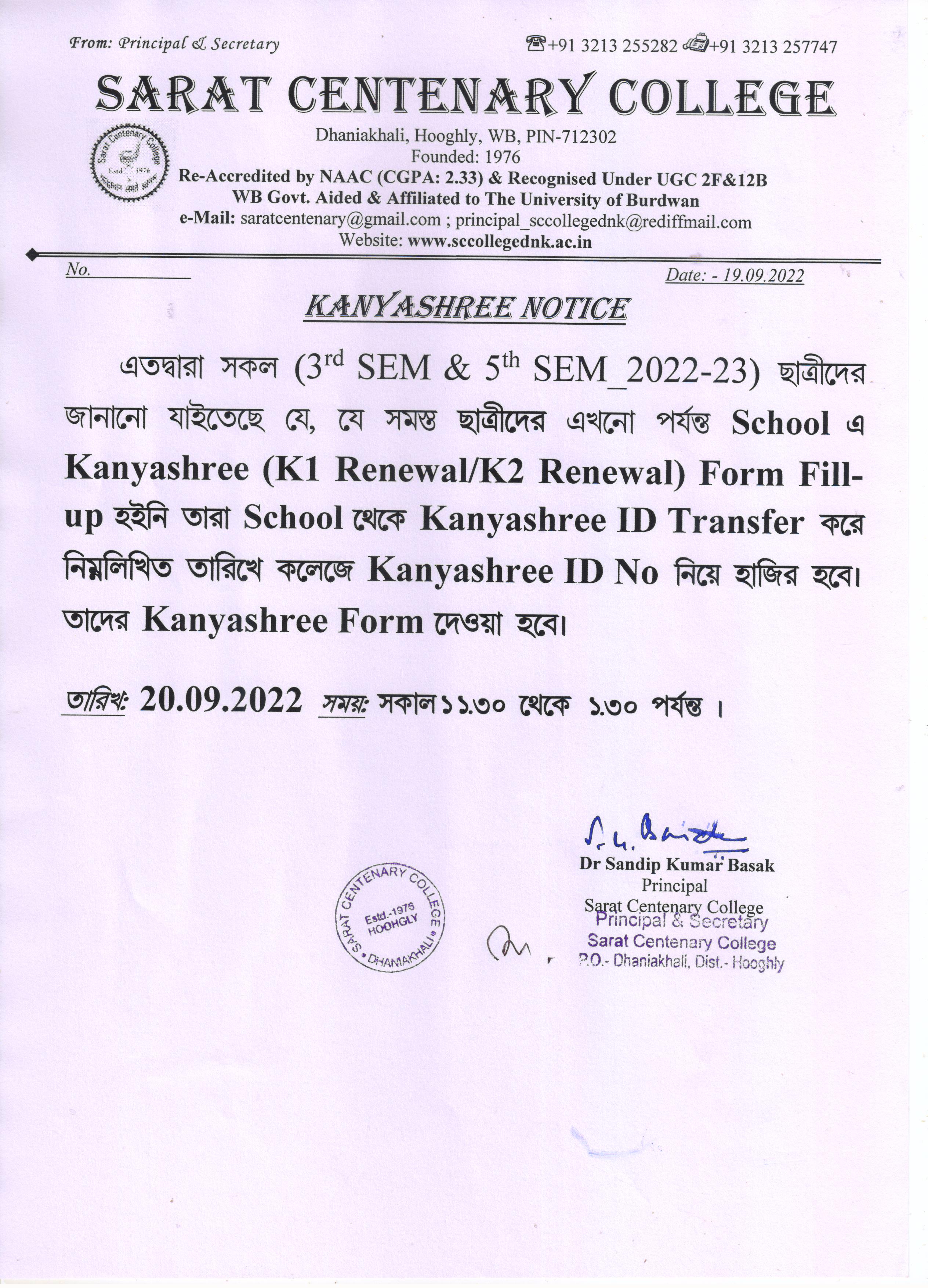 Kanyashree Notice for K2 Upgradation Form Fillup 2017-18 and Start New Session 2018-19