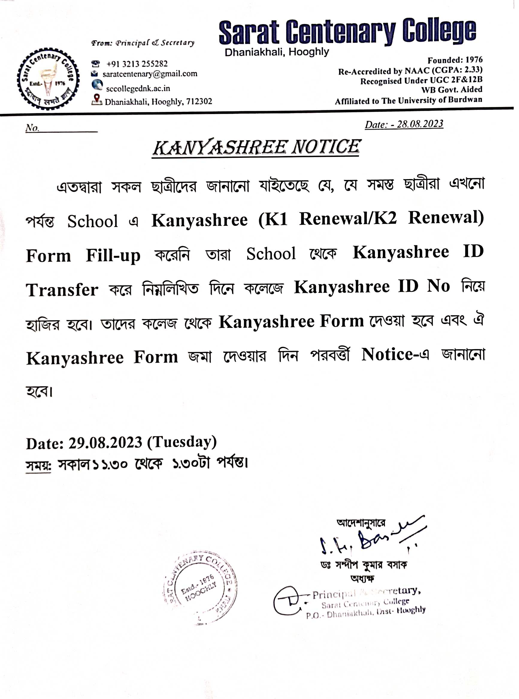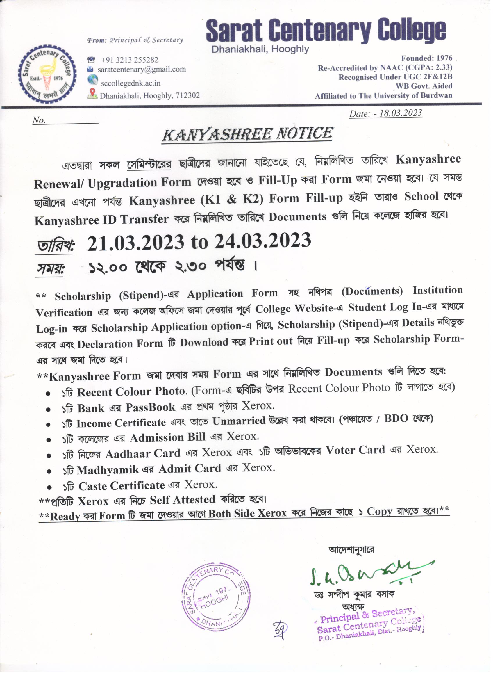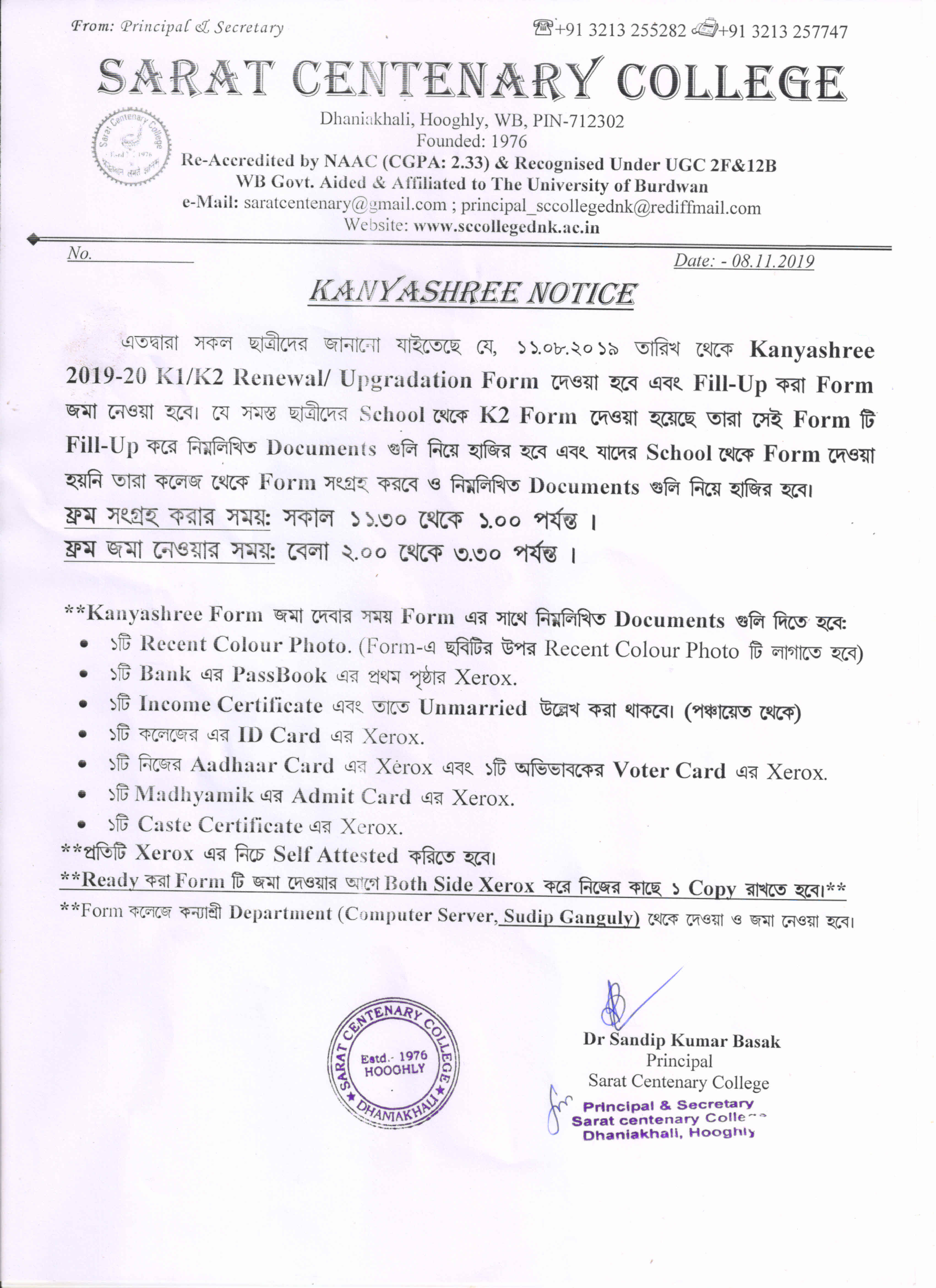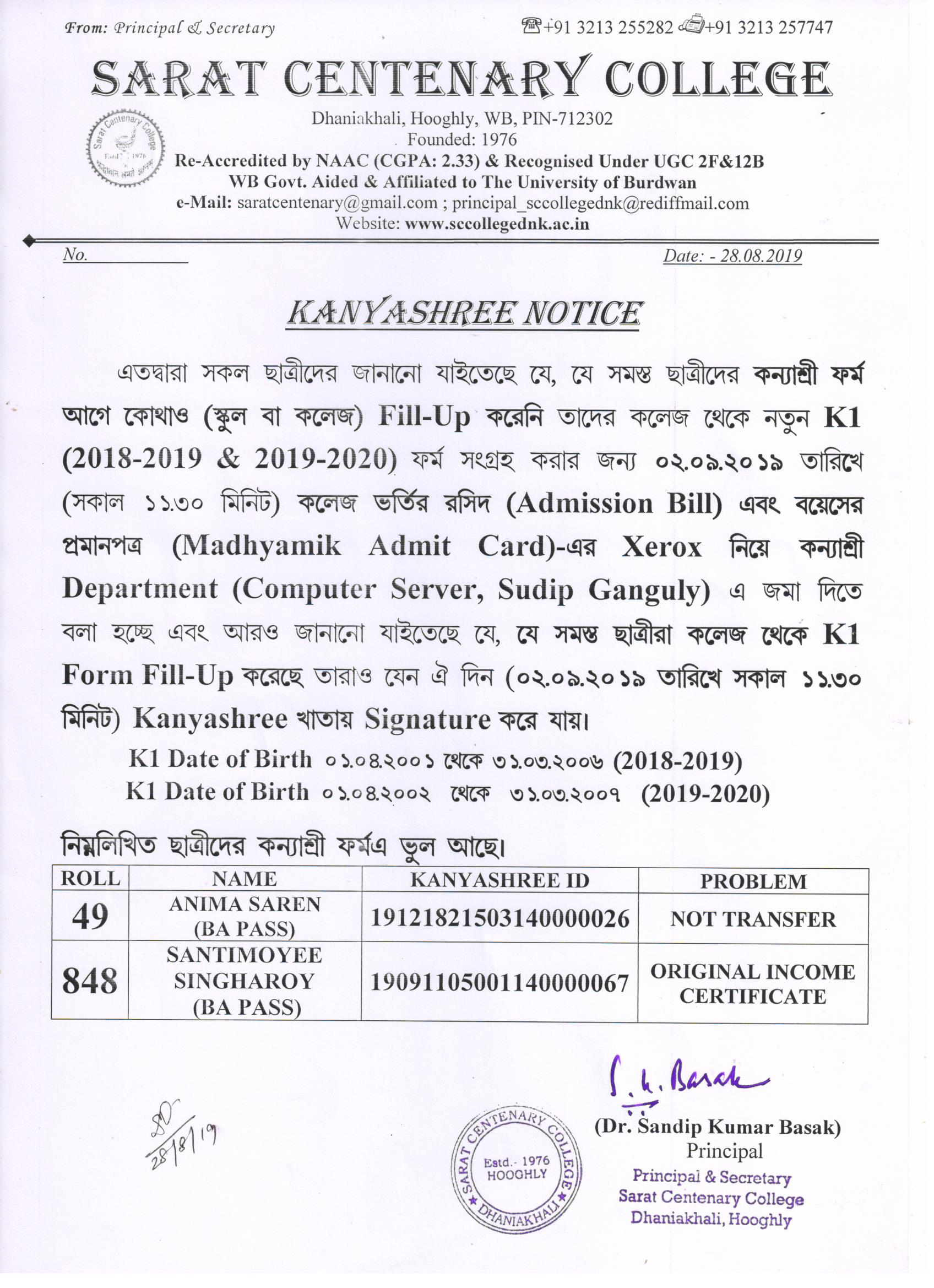 Kanyashree Notice for K2 Upgradation Form Fillup 2017-18 and Start New Session 2018-19