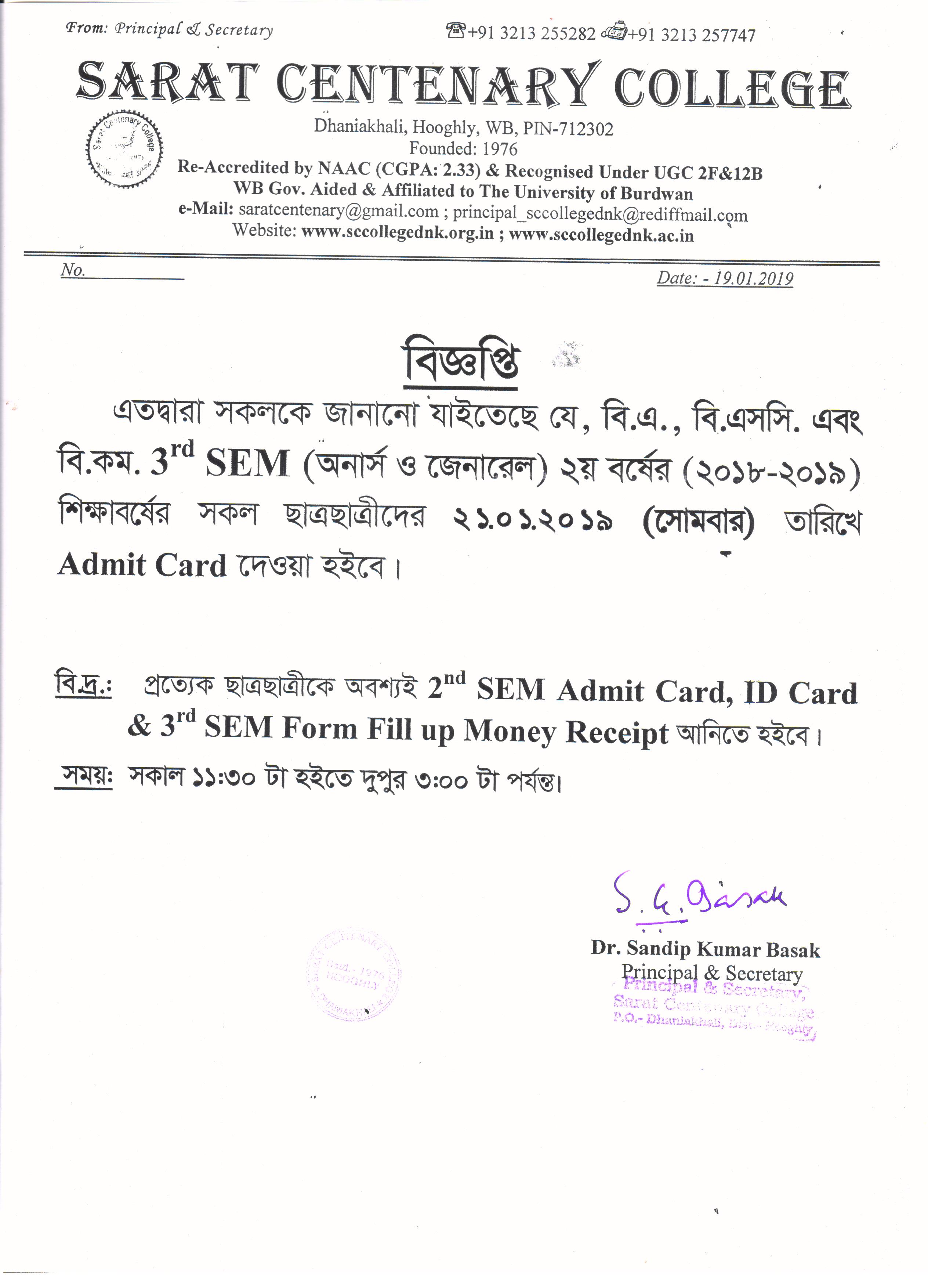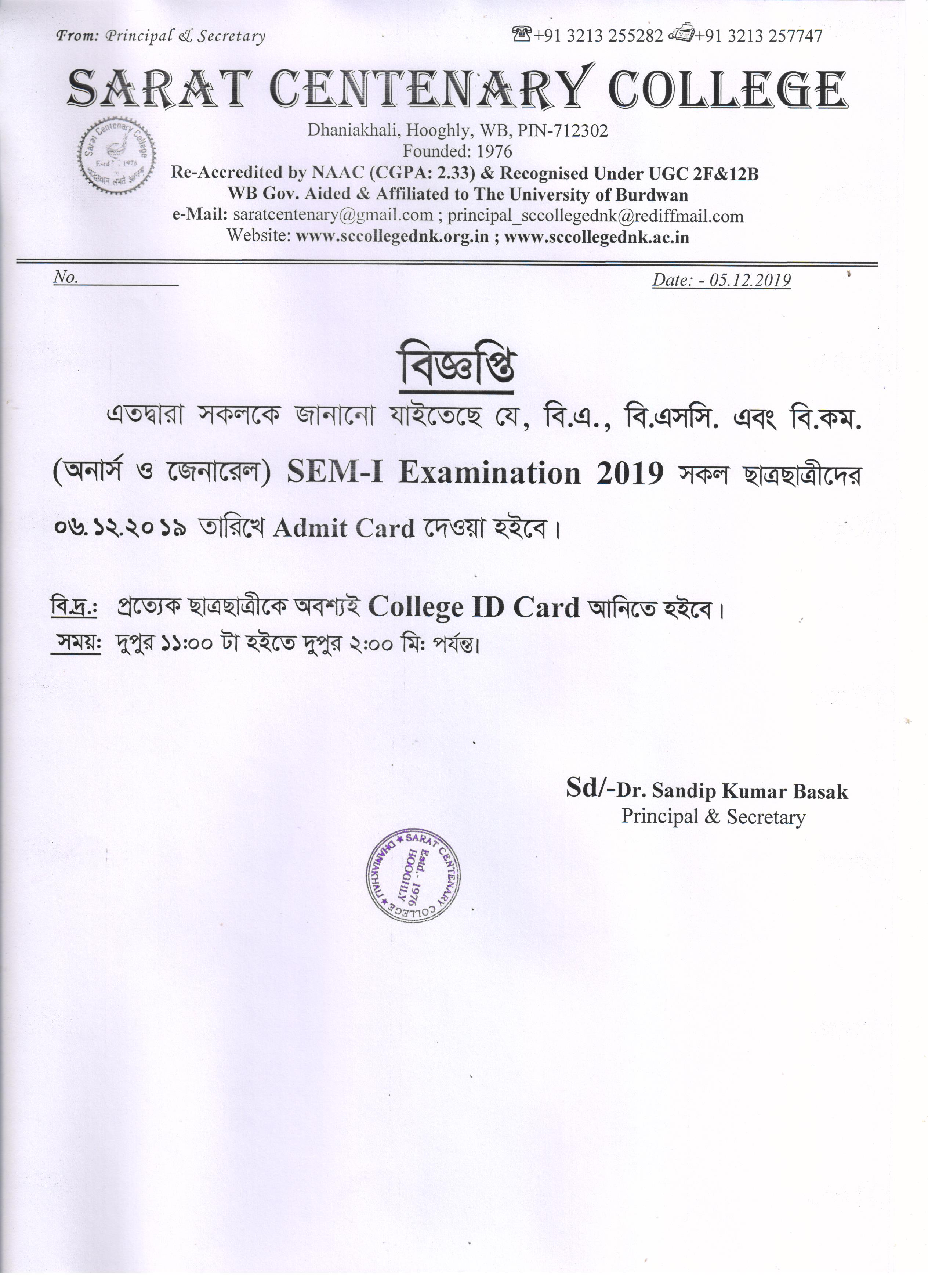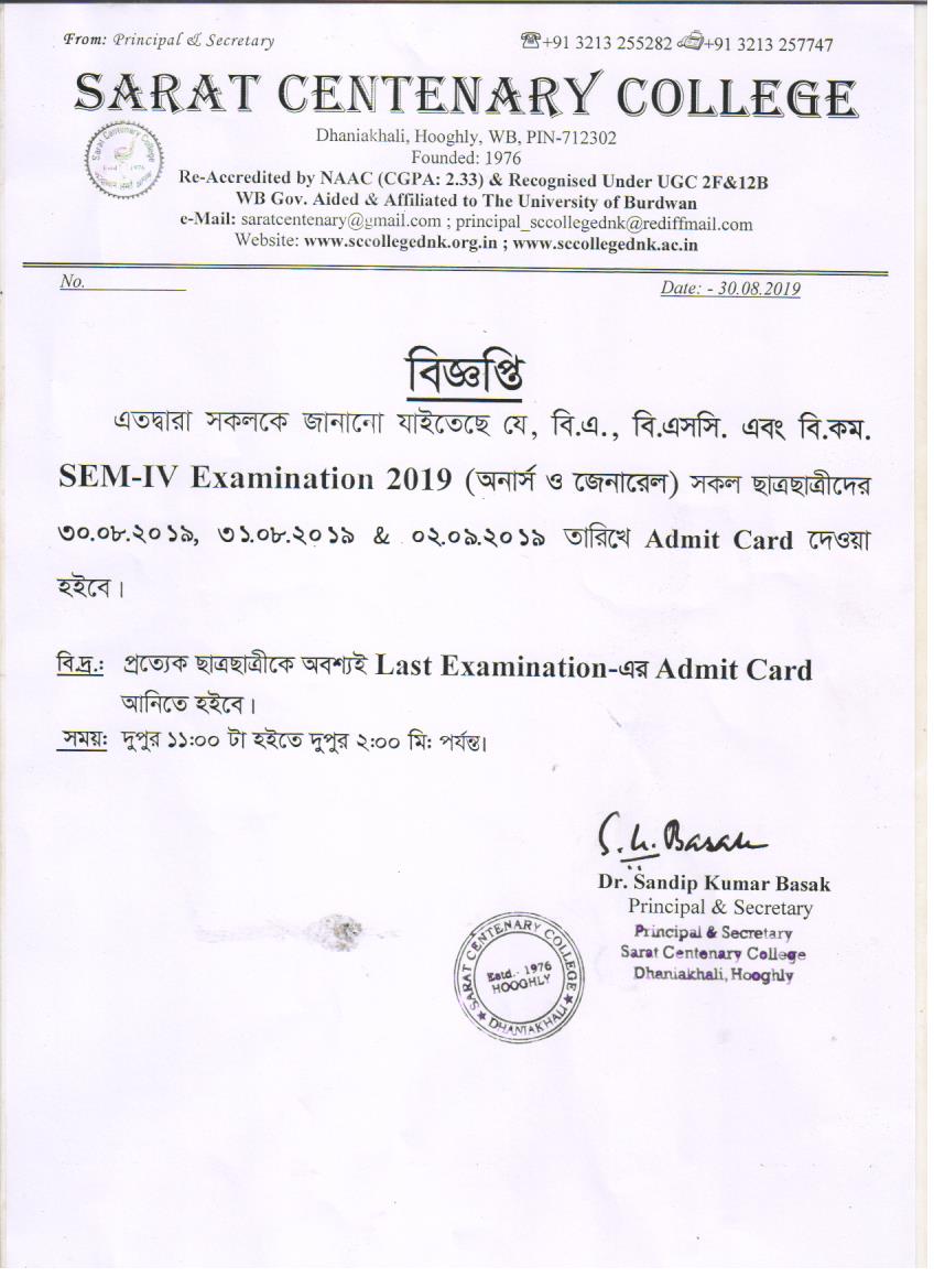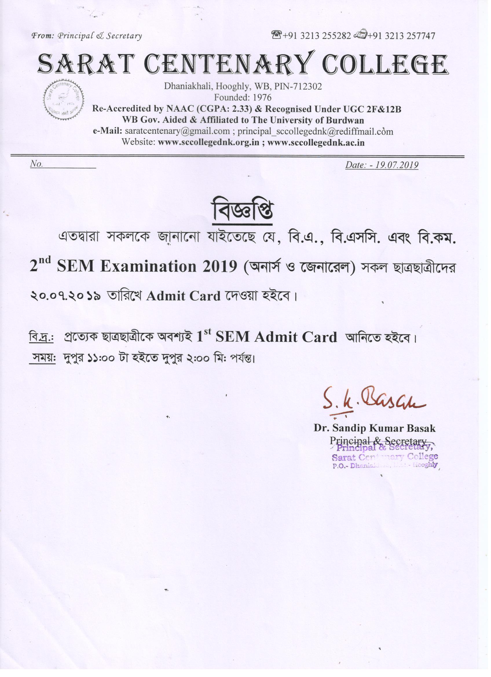 CBCS Semester-II Admit Card Distribution on 06.07.2018