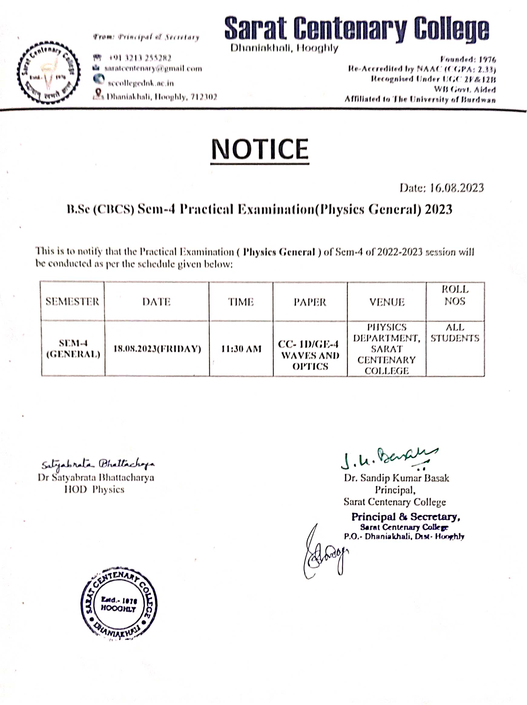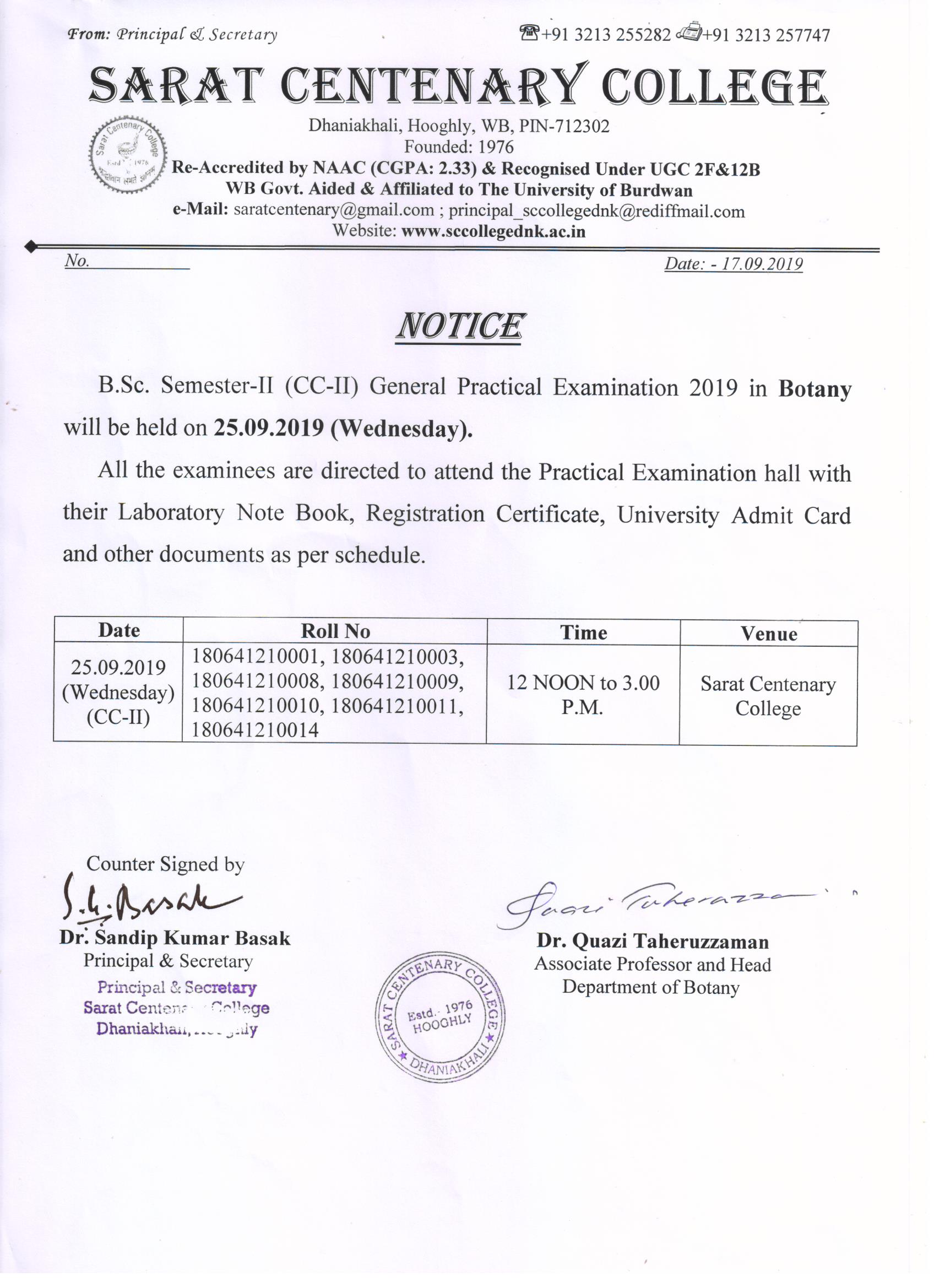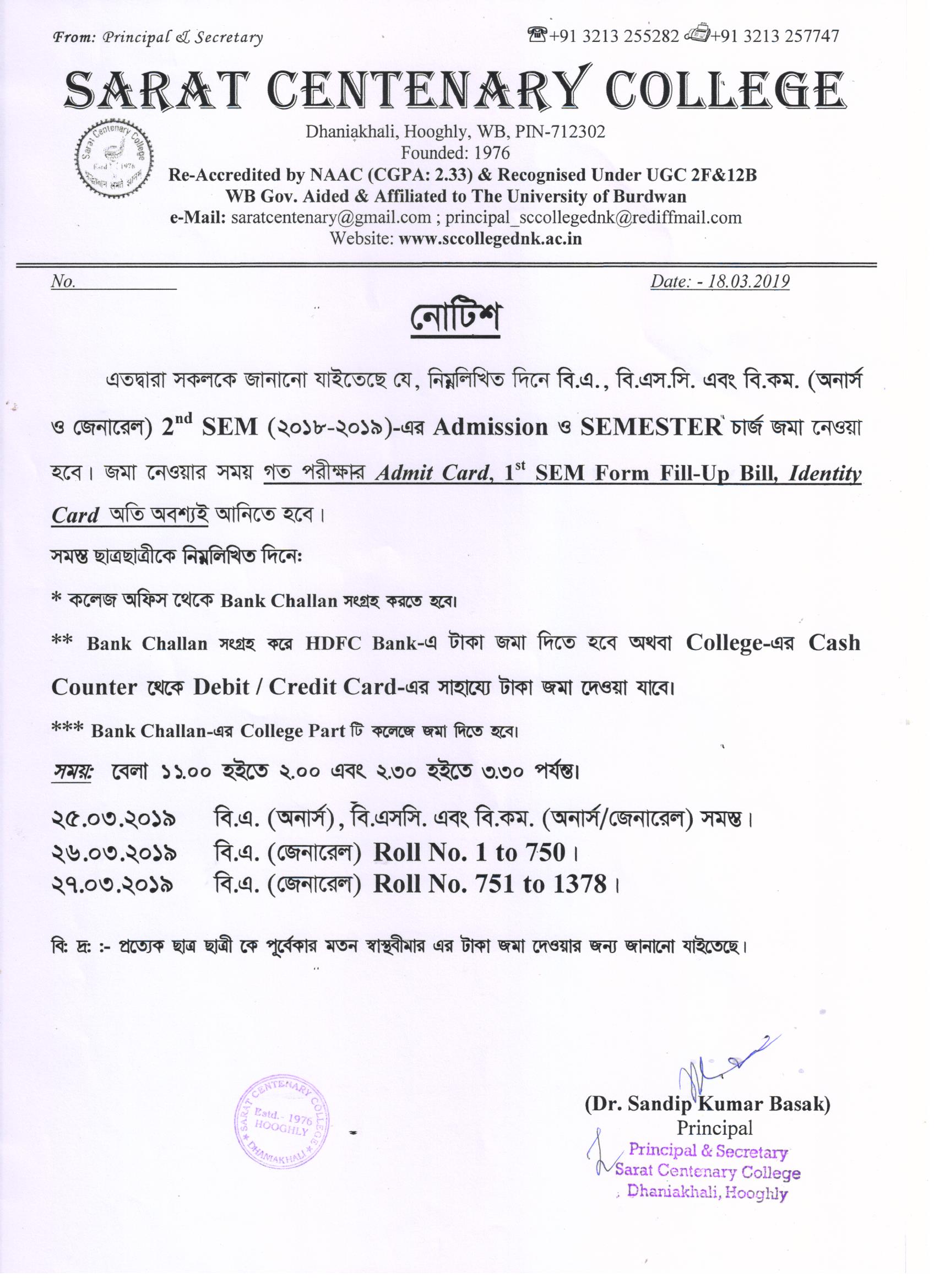 CBCS Semester-II Admit Card Distribution on 06.07.2018