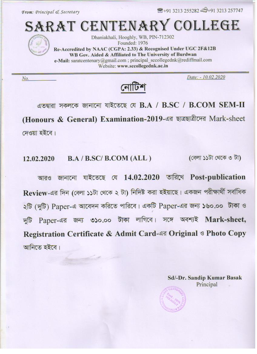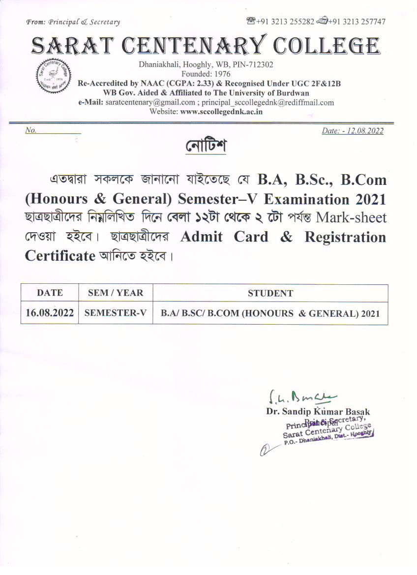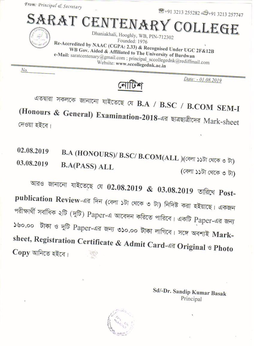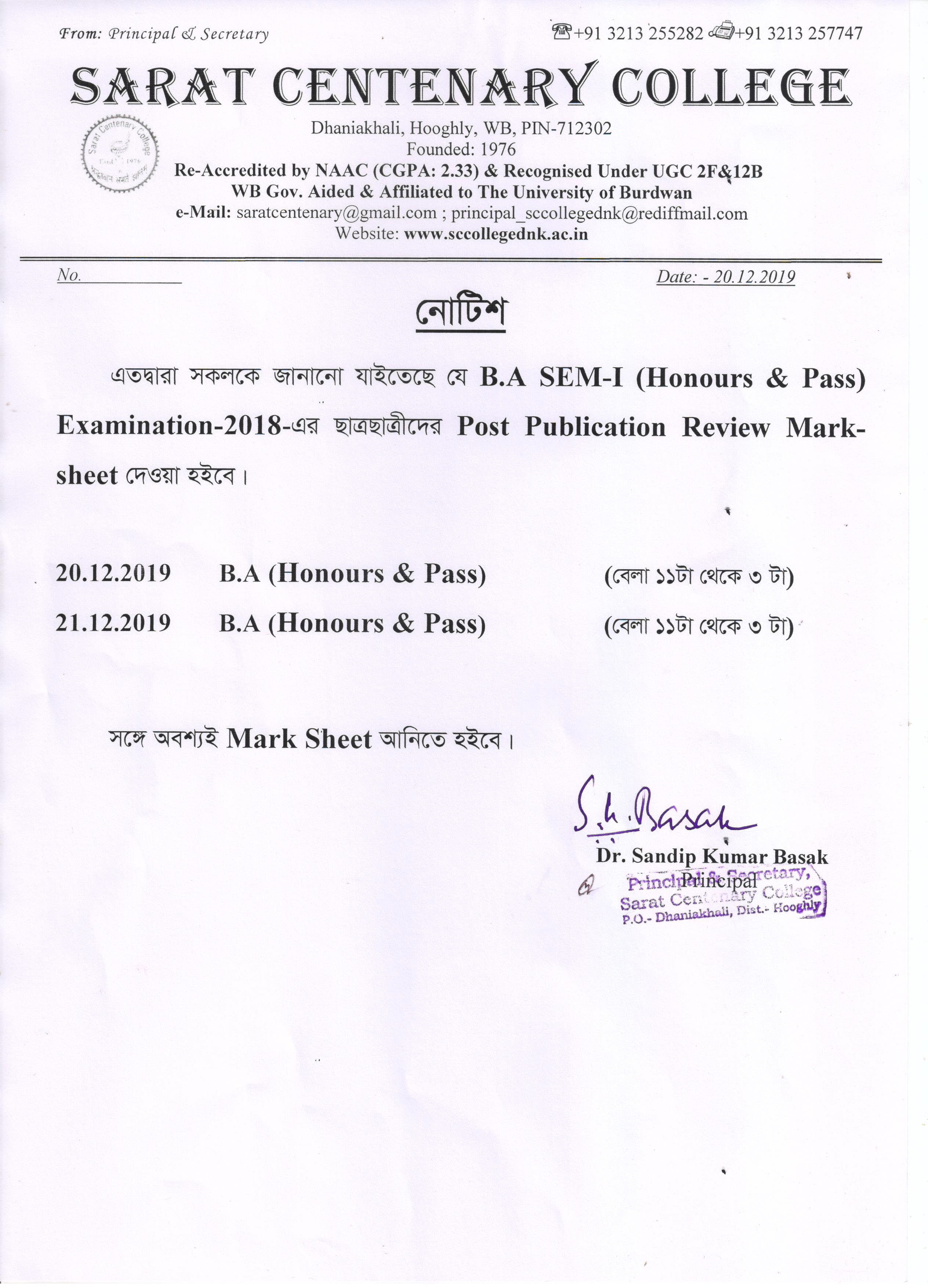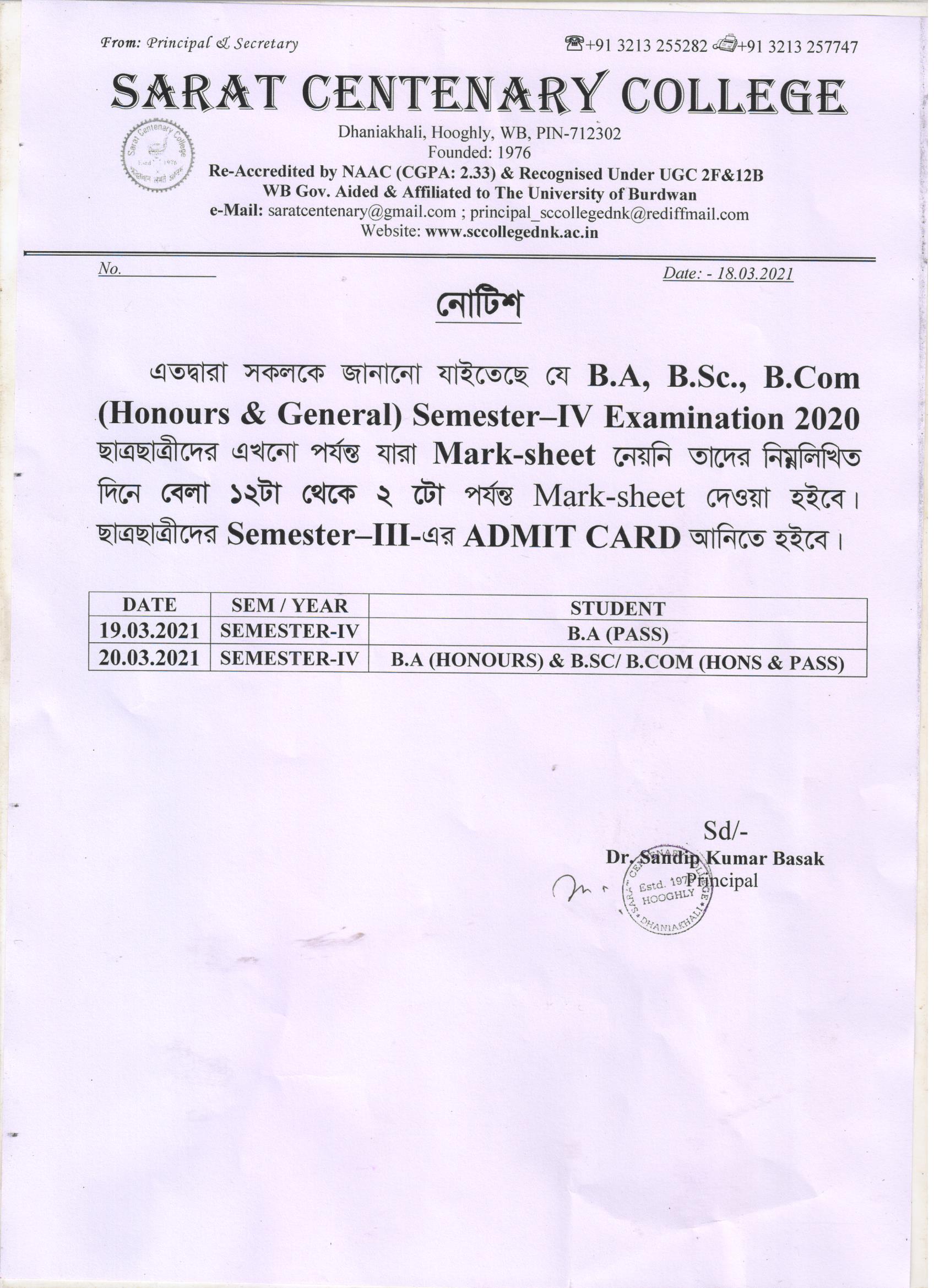 Ba/BSc/BCom (Honours) Part-III Marksheet distribution