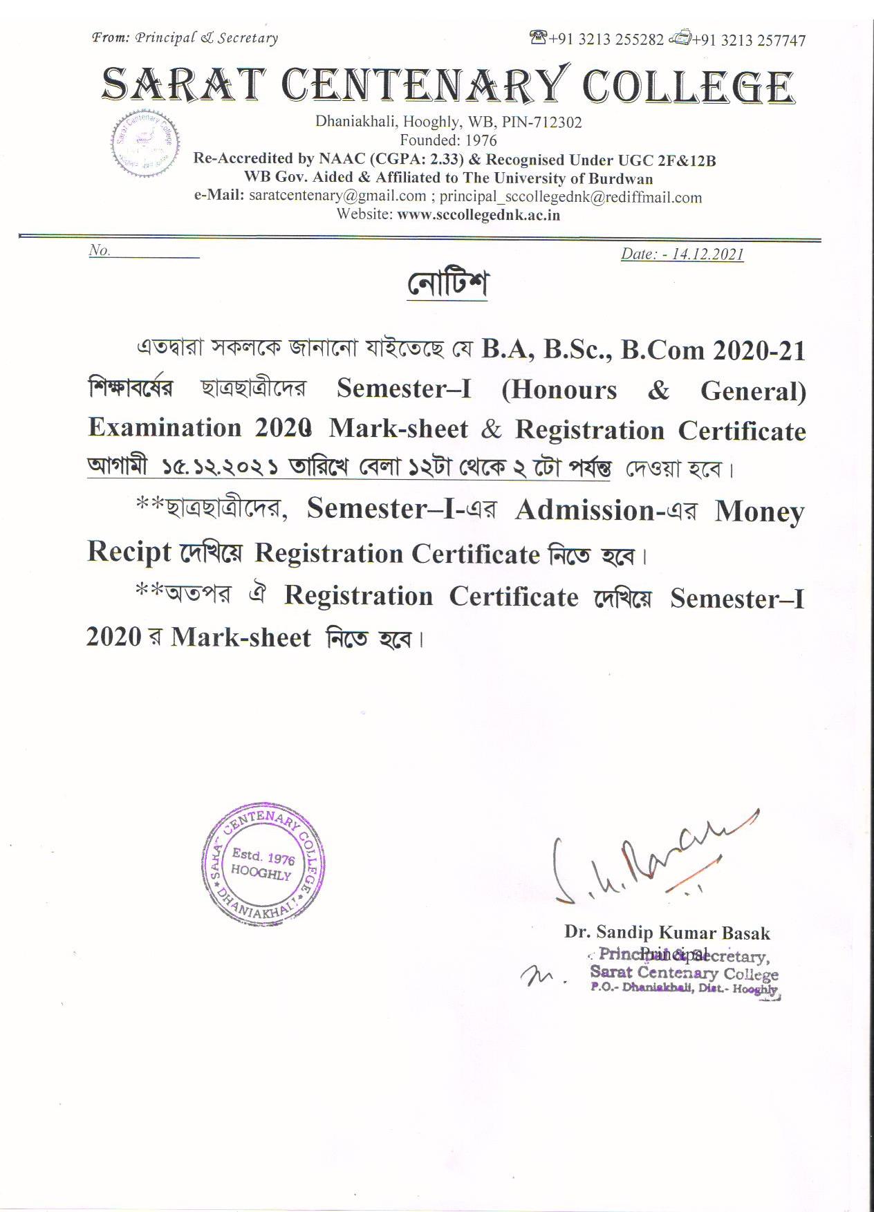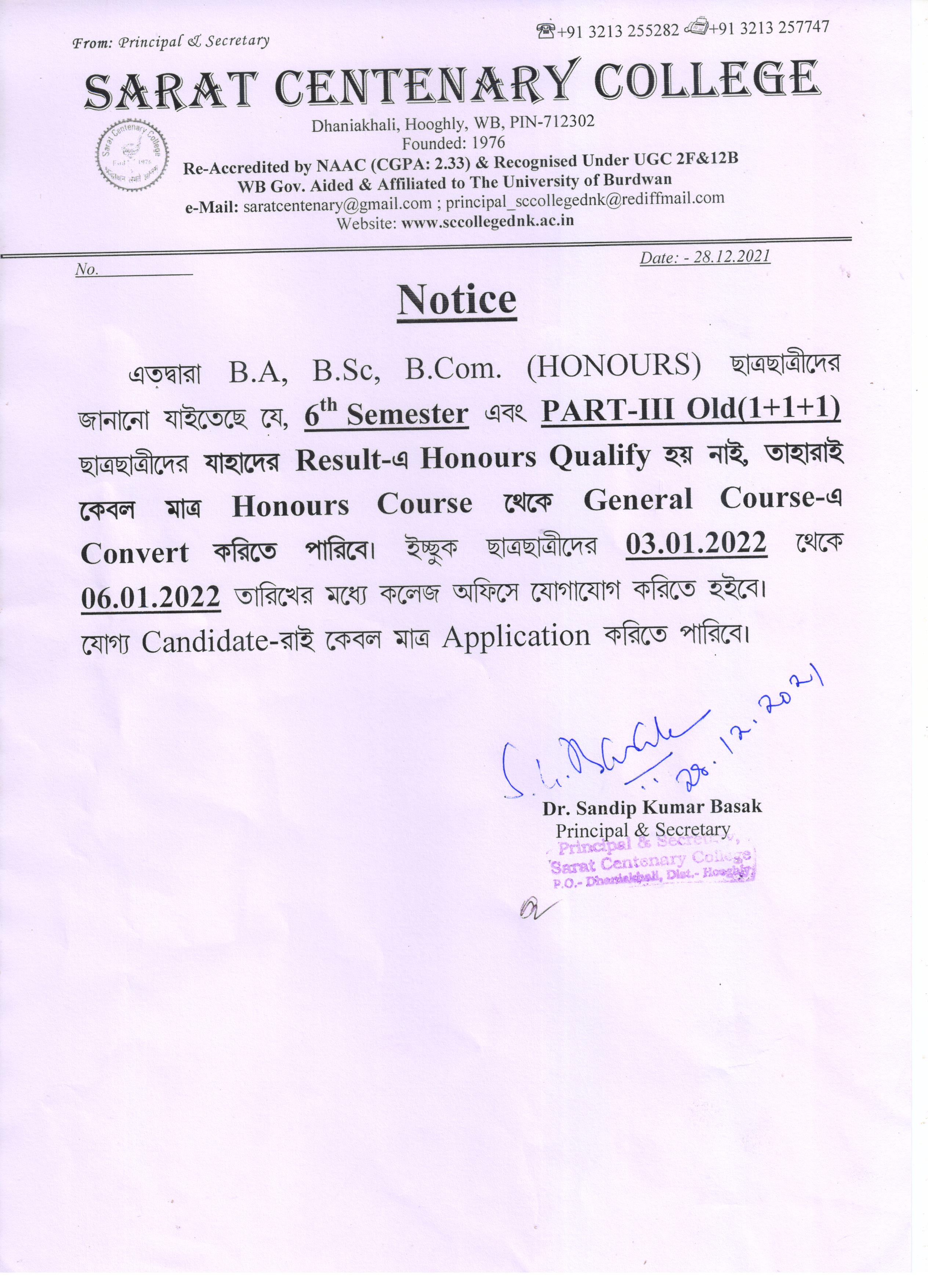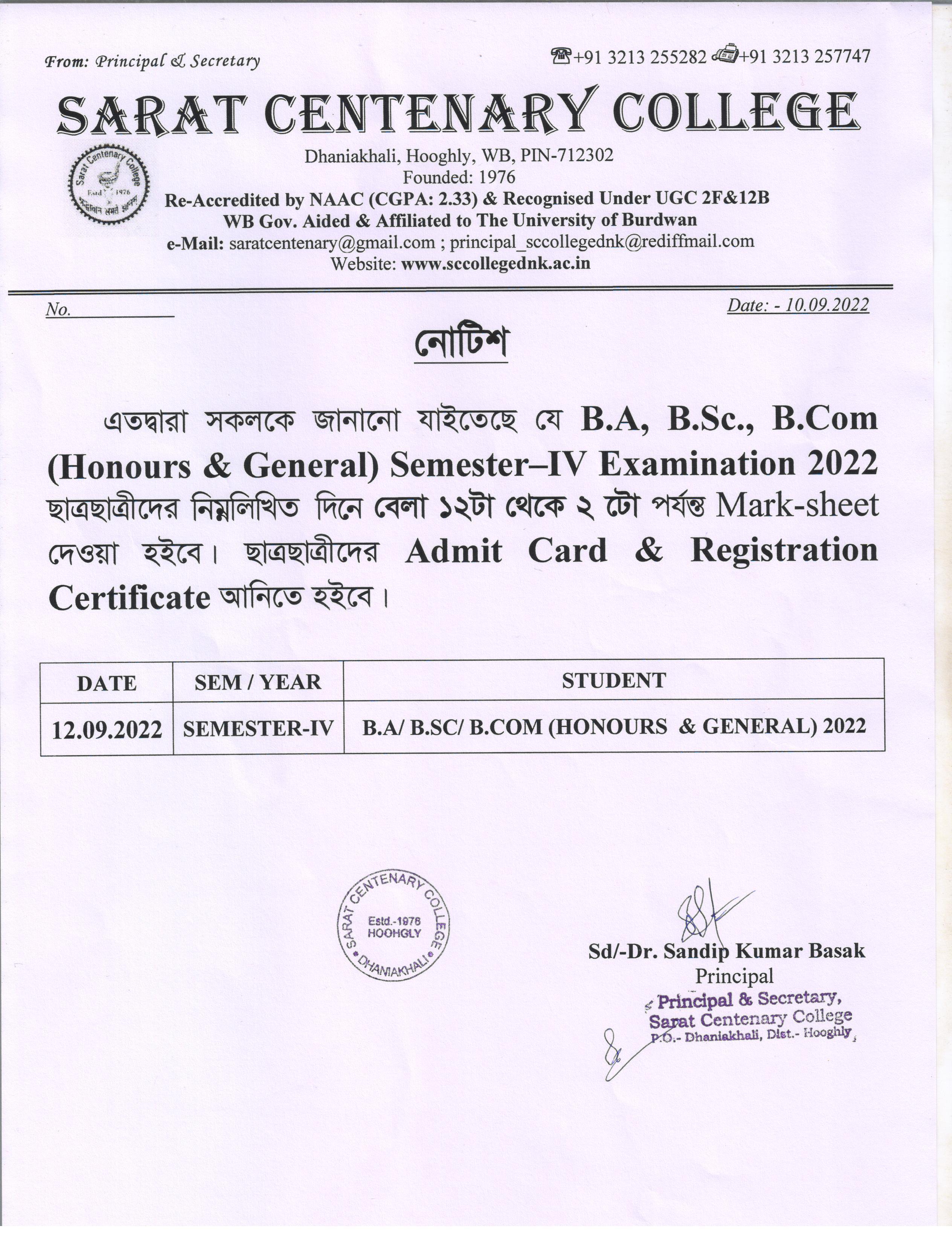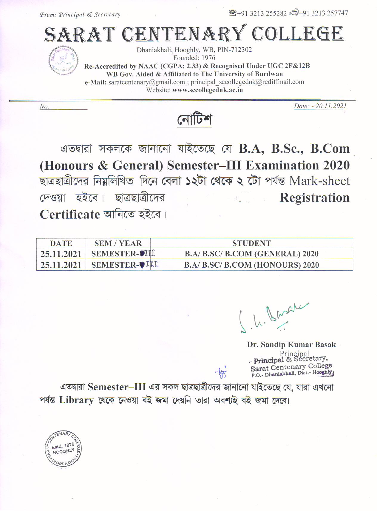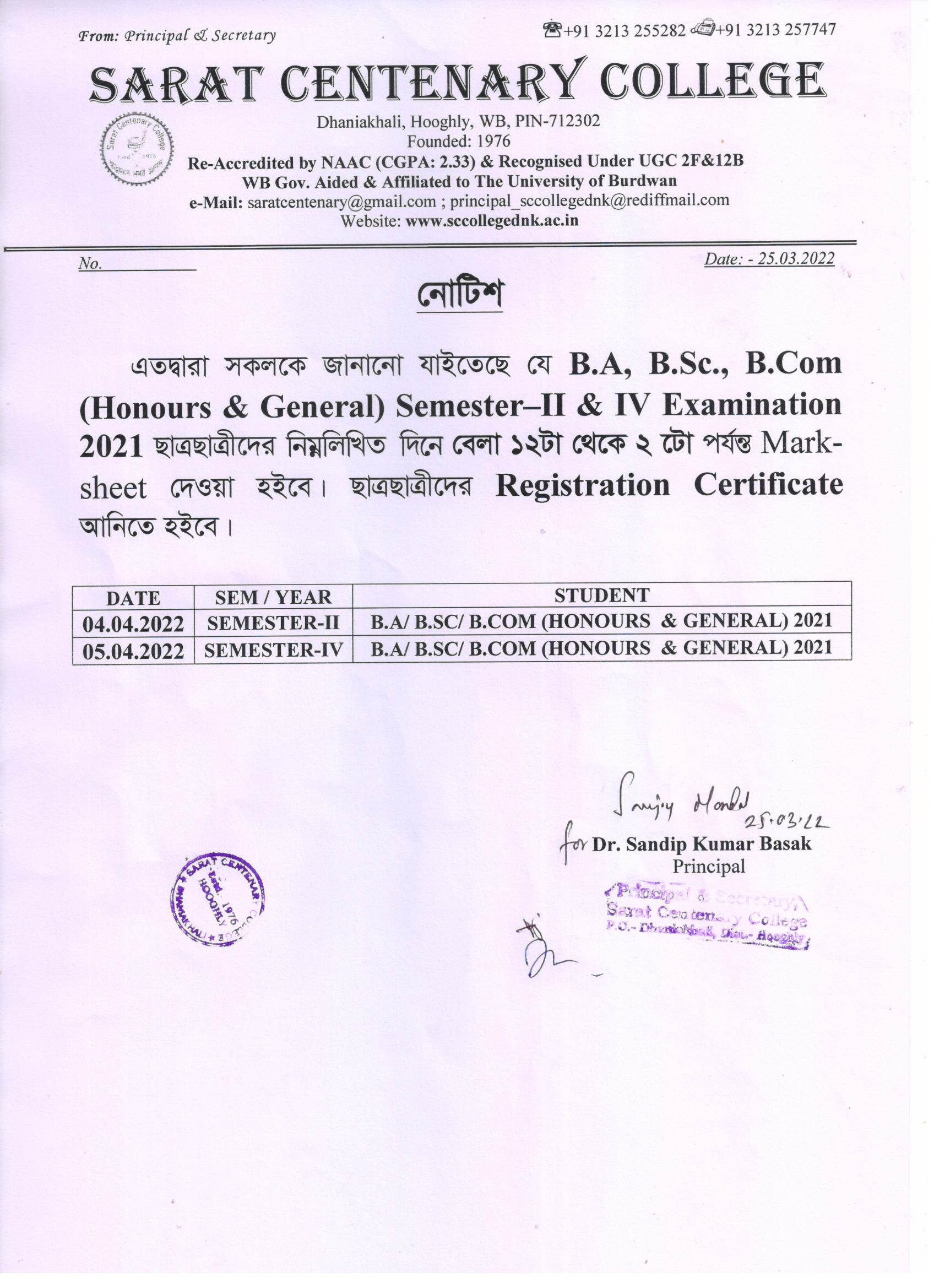 Ba/BSc/BCom (Honours) Part-III Marksheet distribution