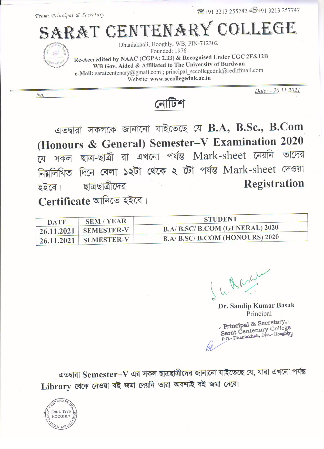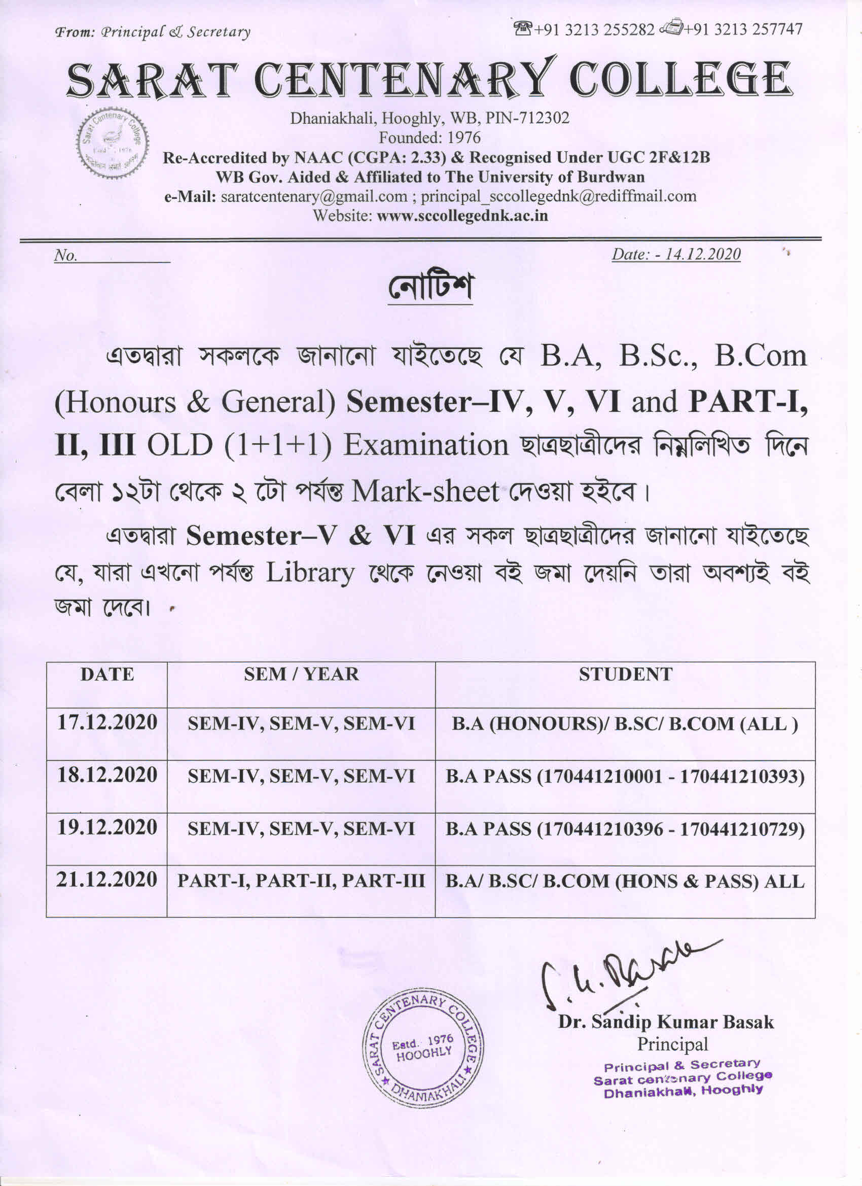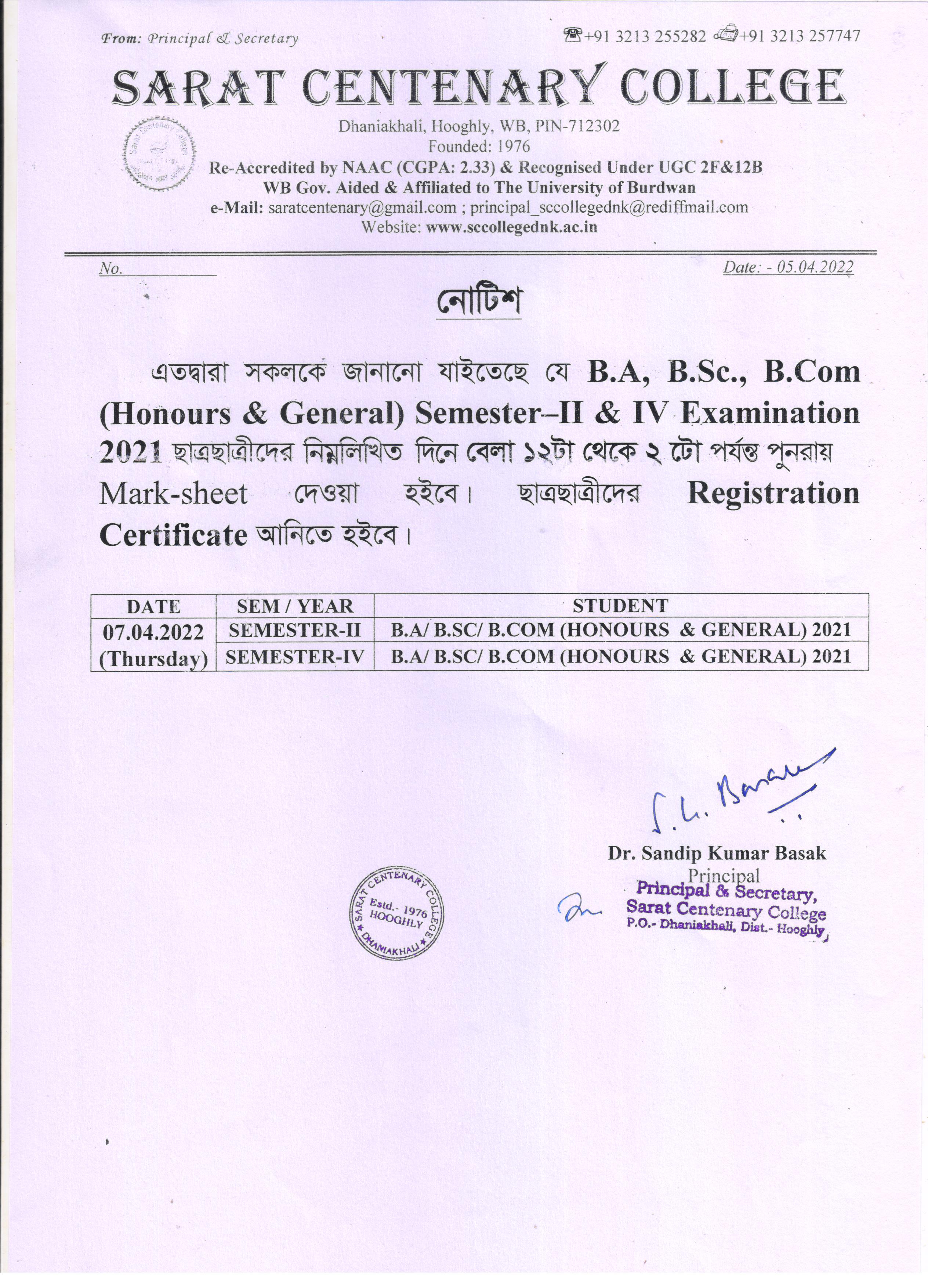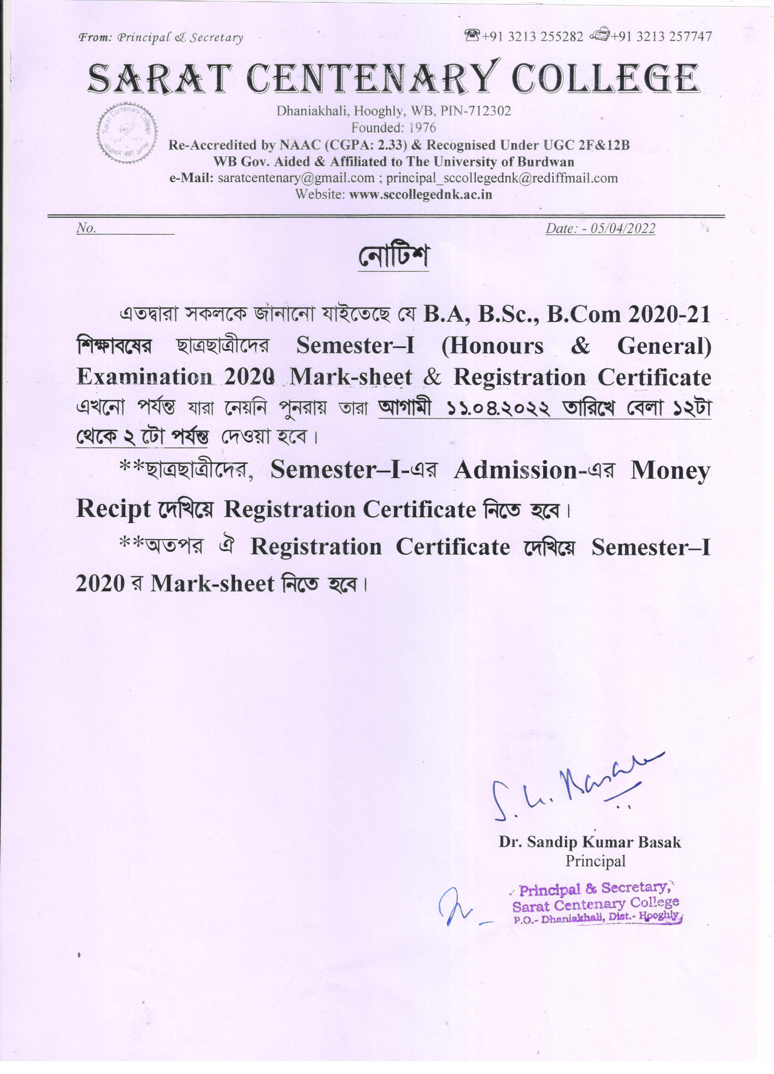 Ba/BSc/BCom (Honours) Part-III Marksheet distribution