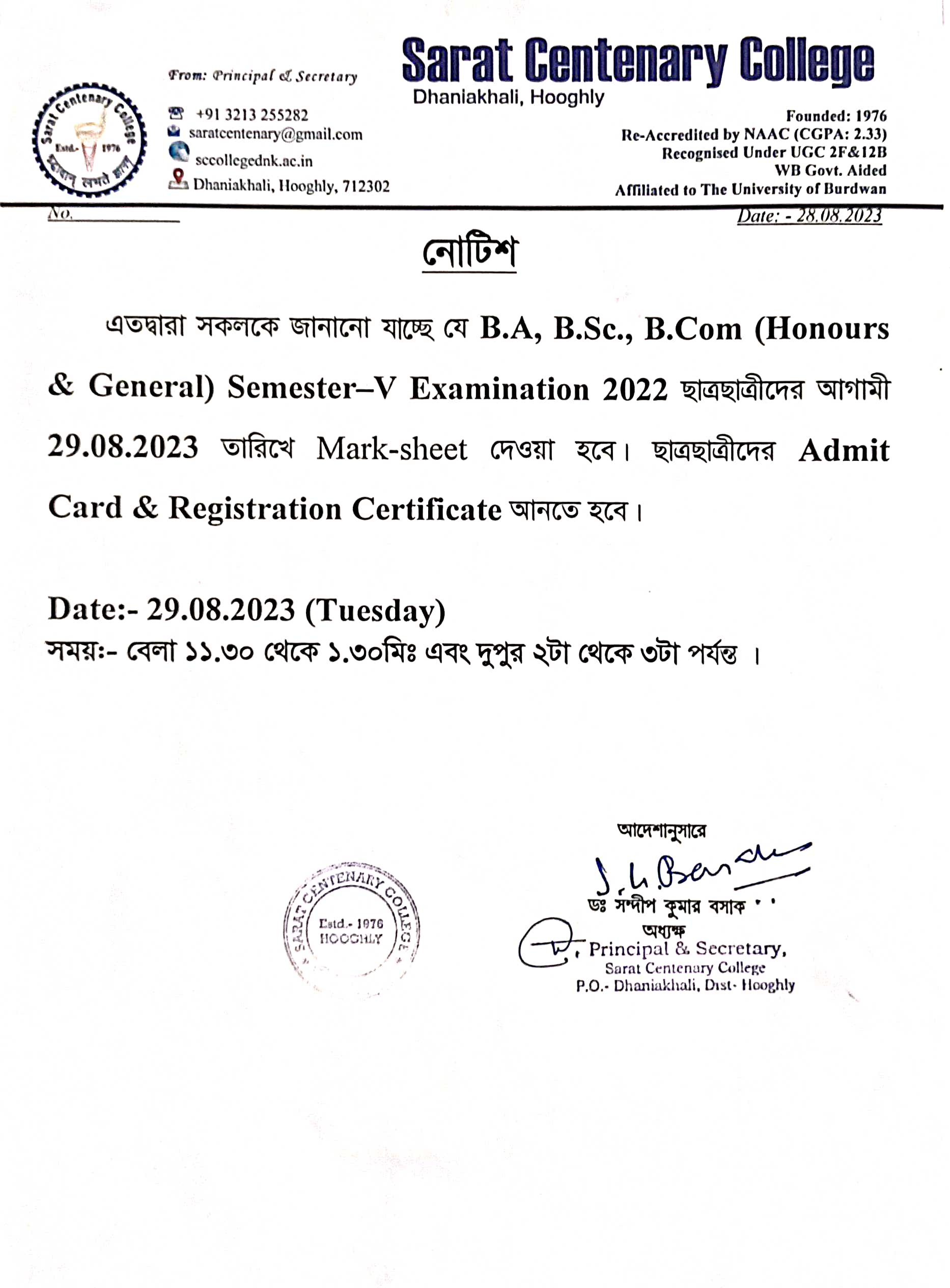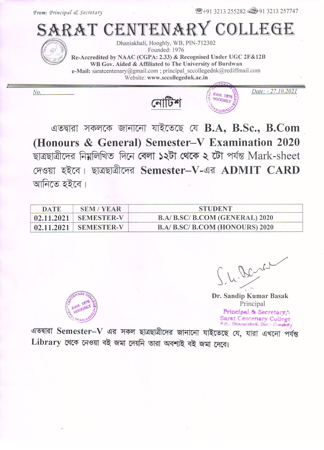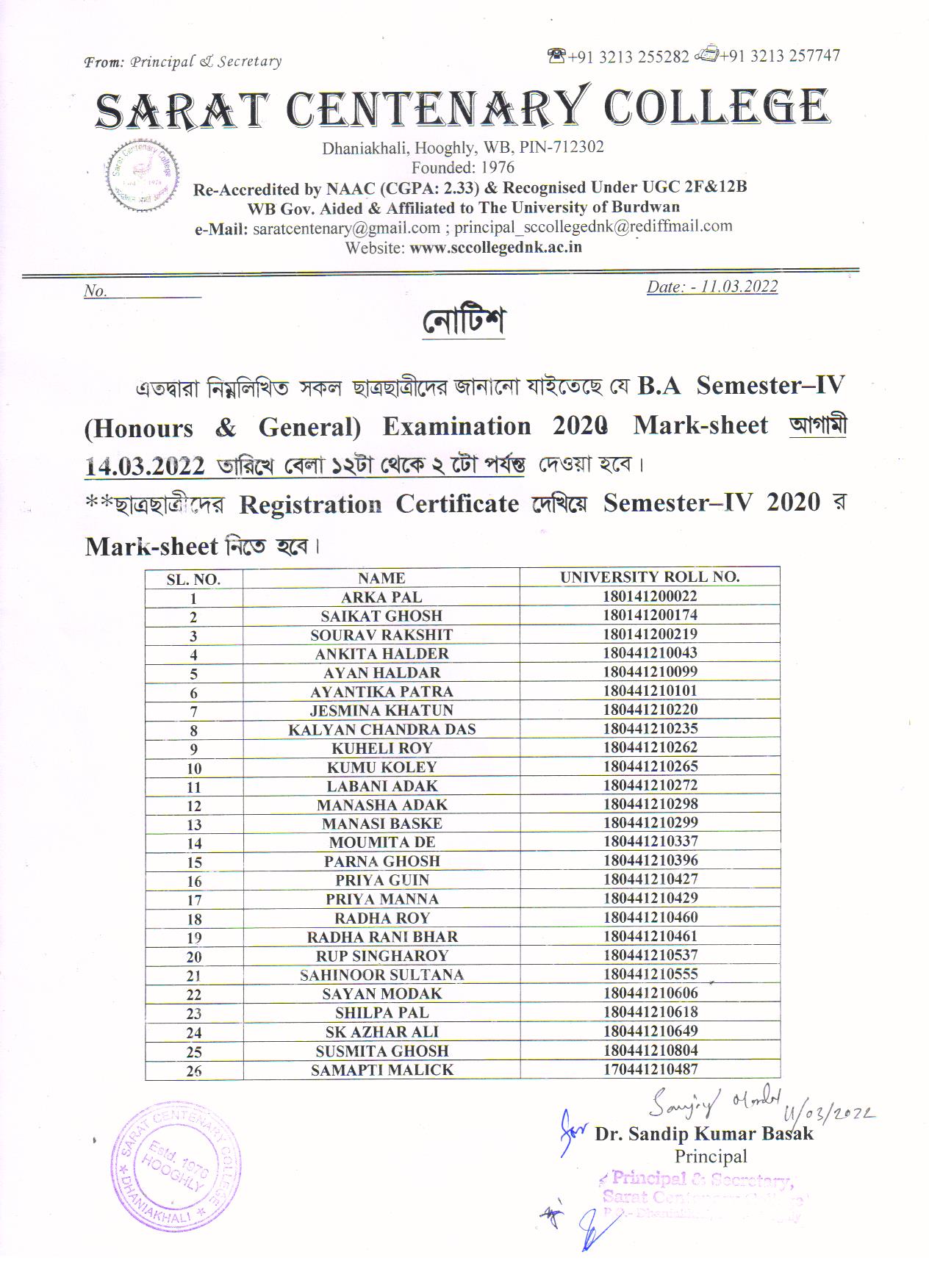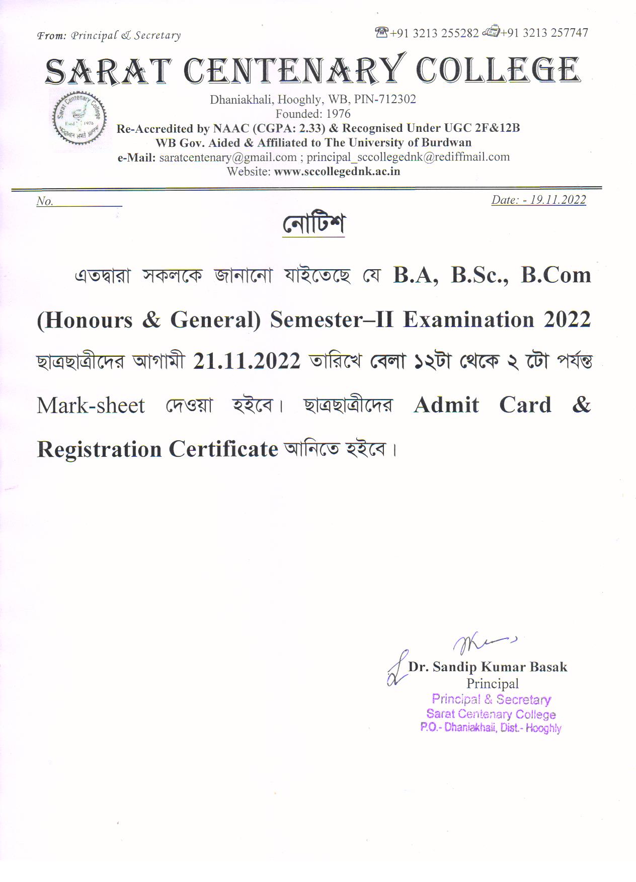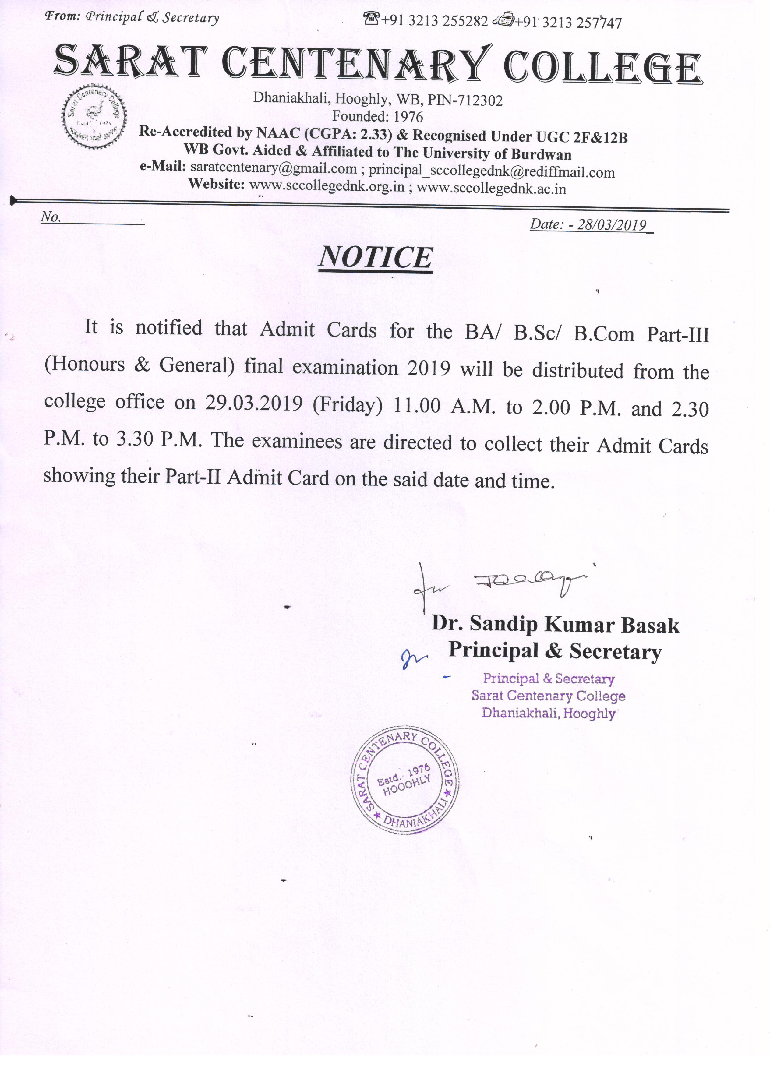 Ba/BSc/BCom (Honours) Part-III Marksheet distribution