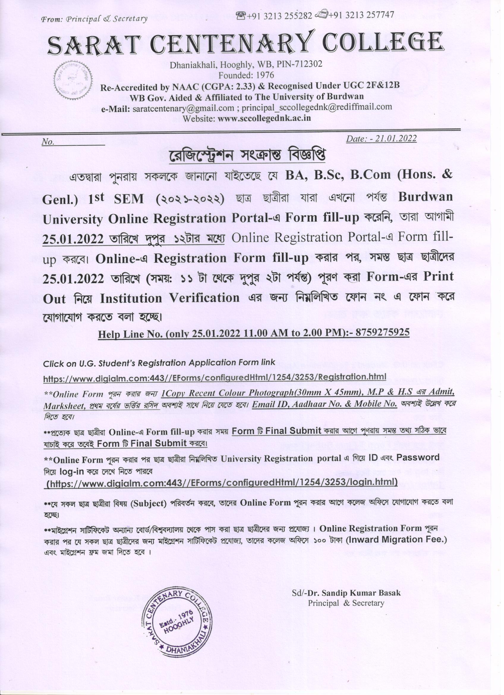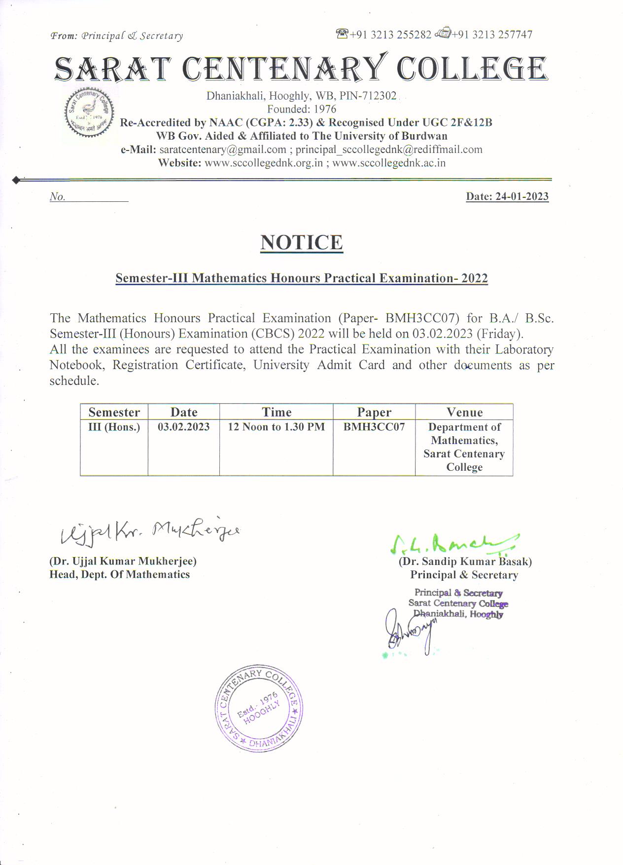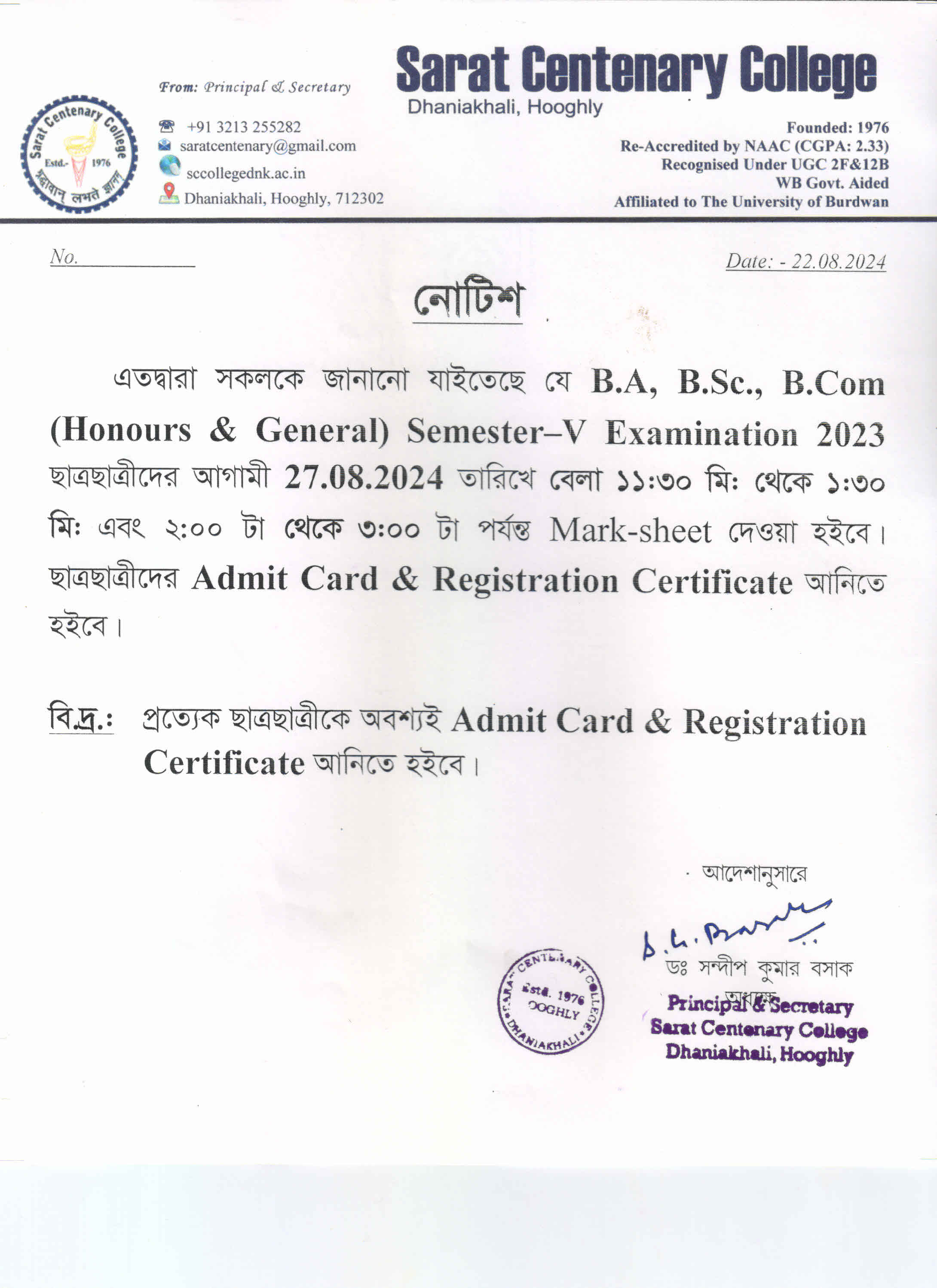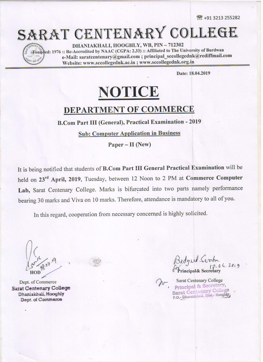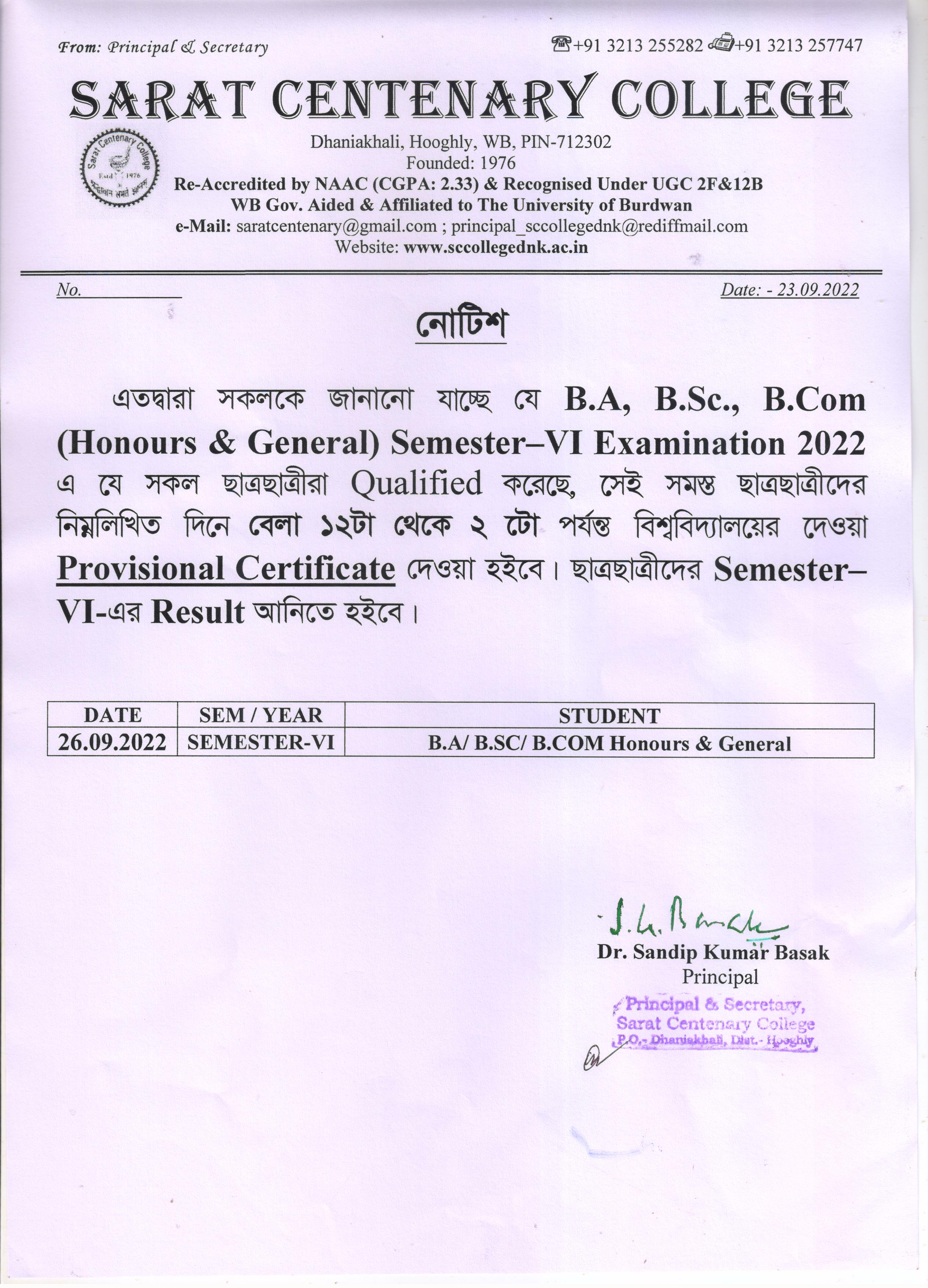 Ba/BSc/BCom (Honours) Part-III Marksheet distribution