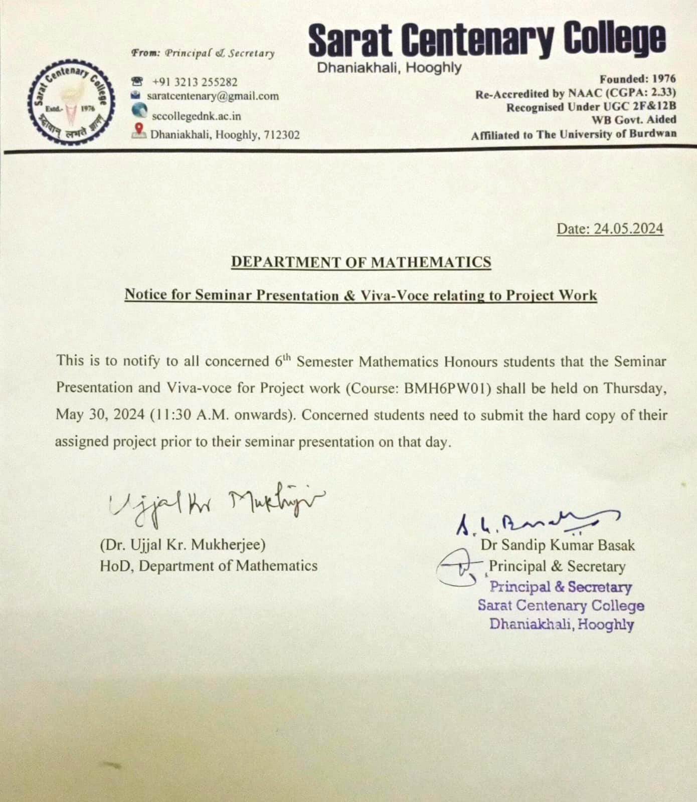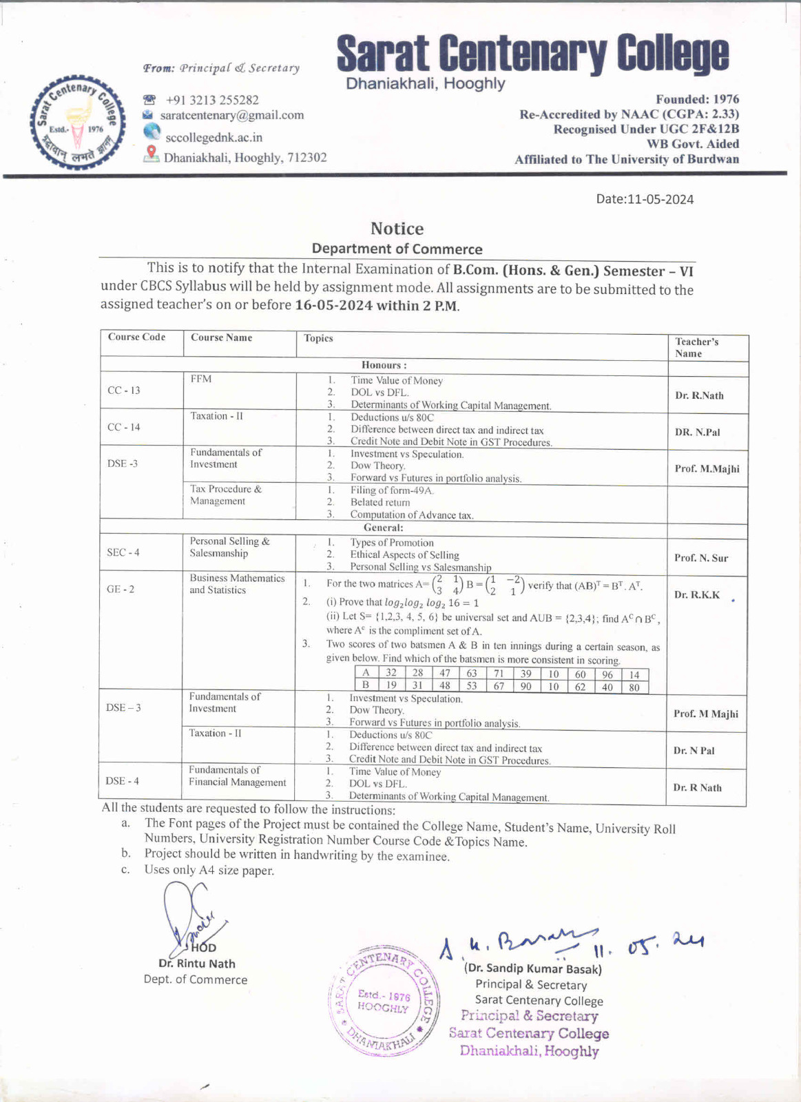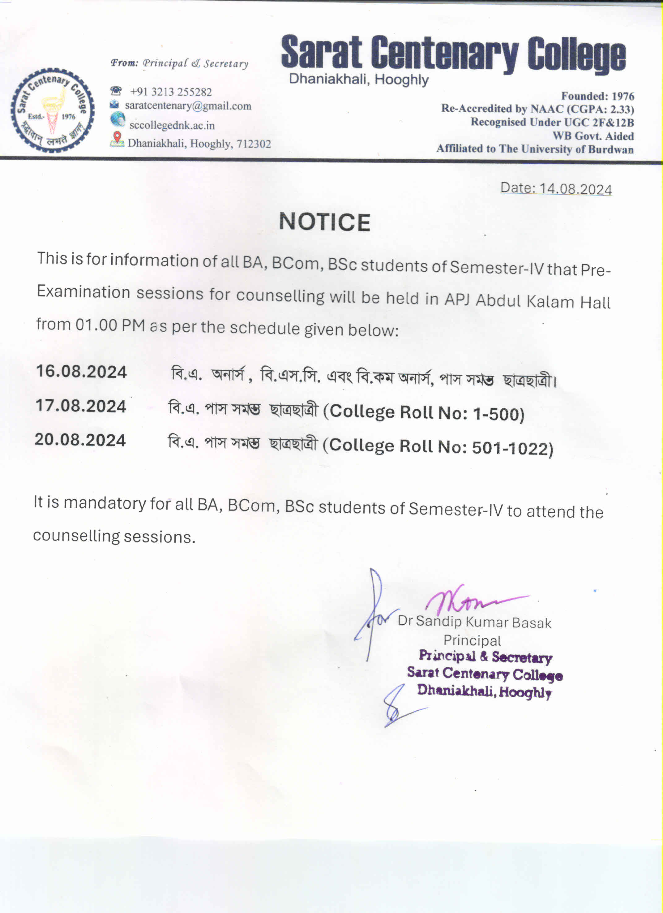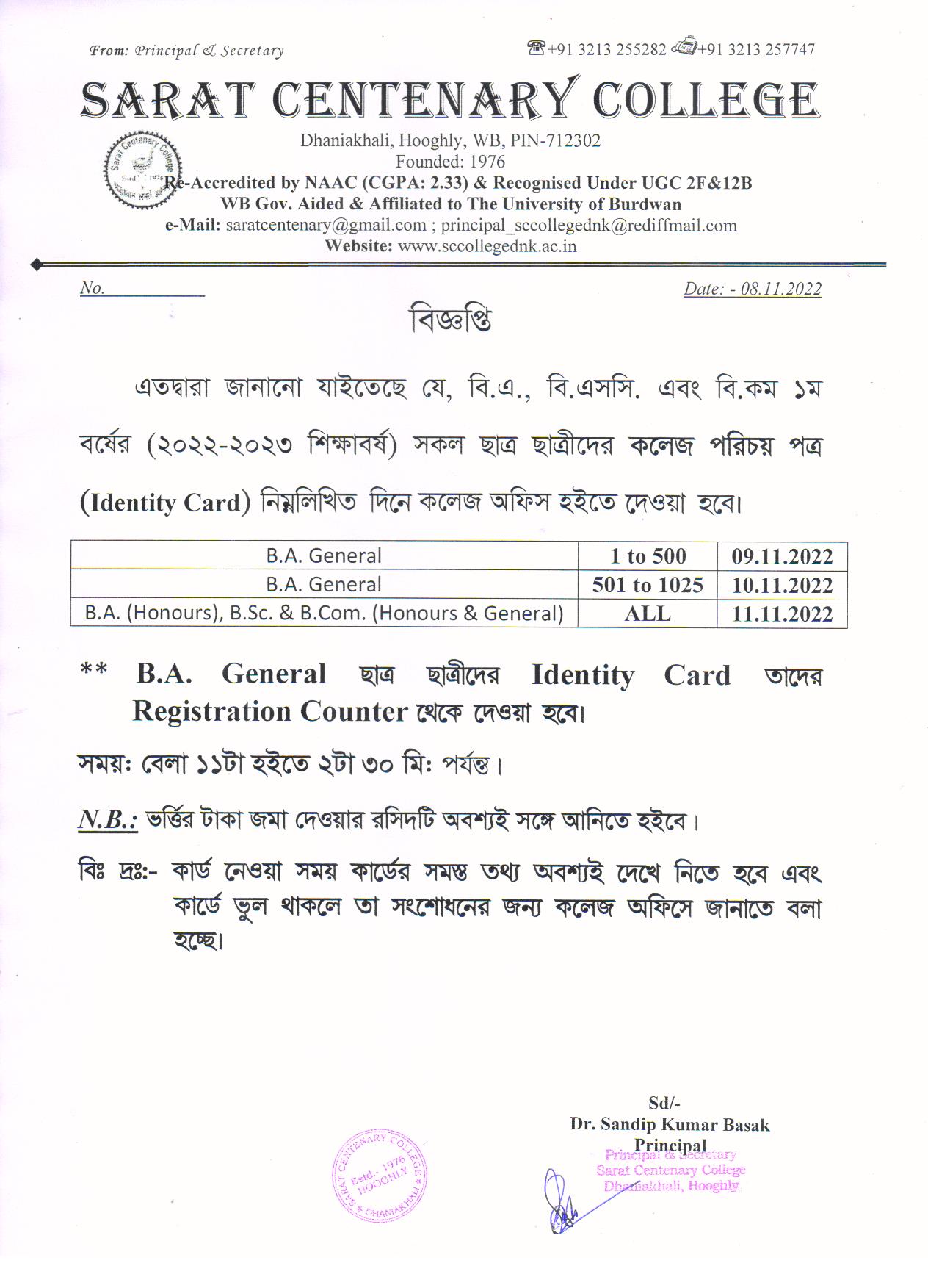 Ba/BSc/BCom (Honours) Part-III Marksheet distribution