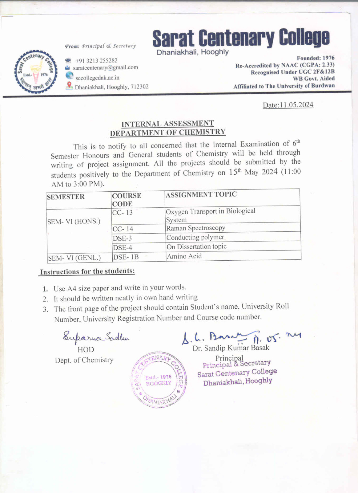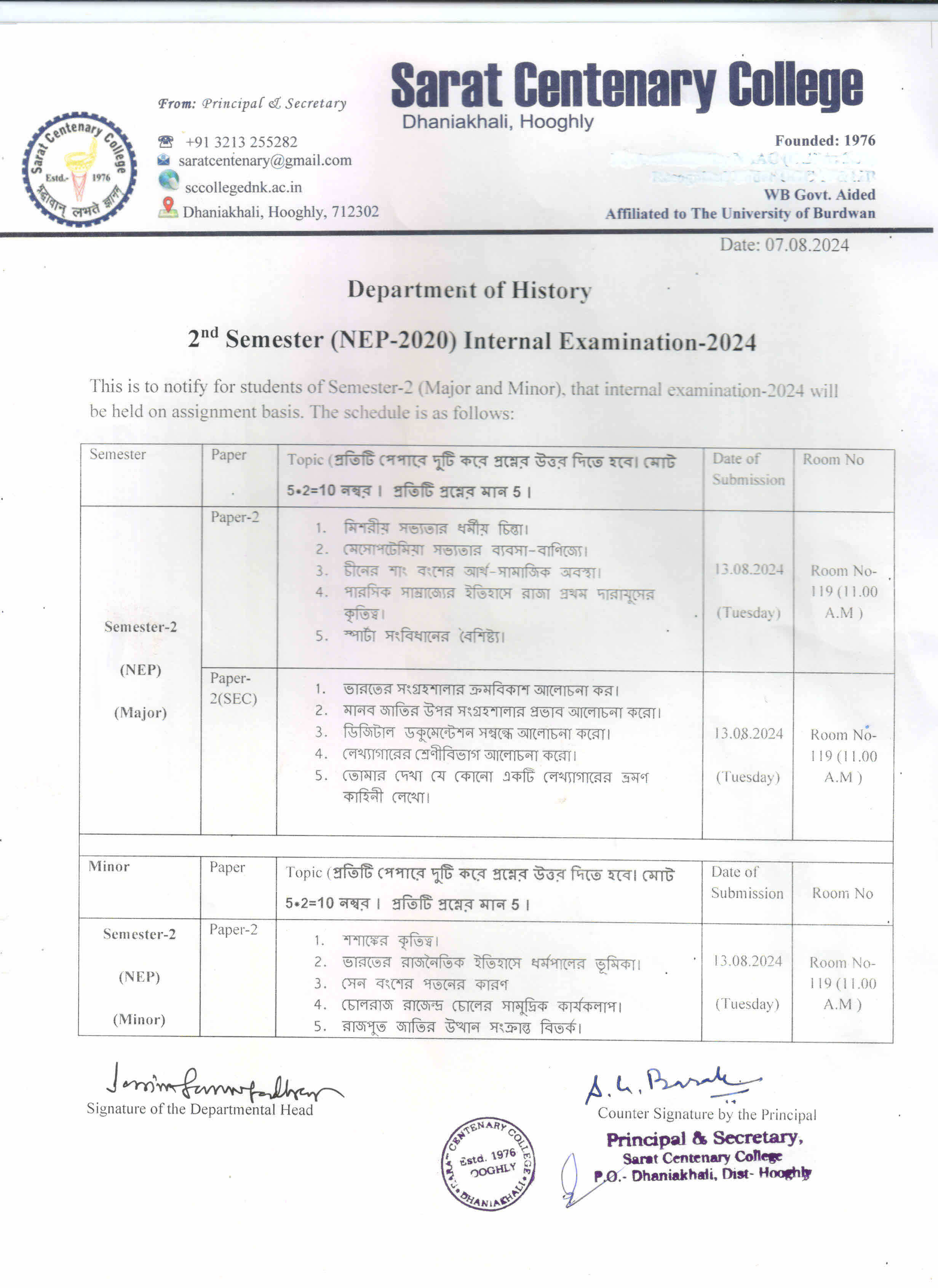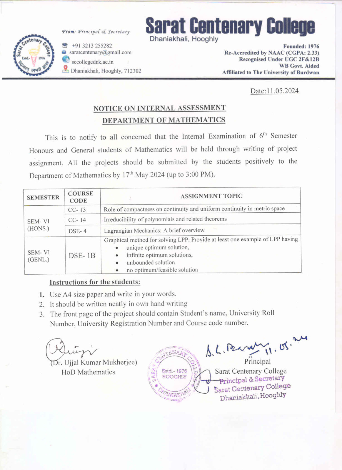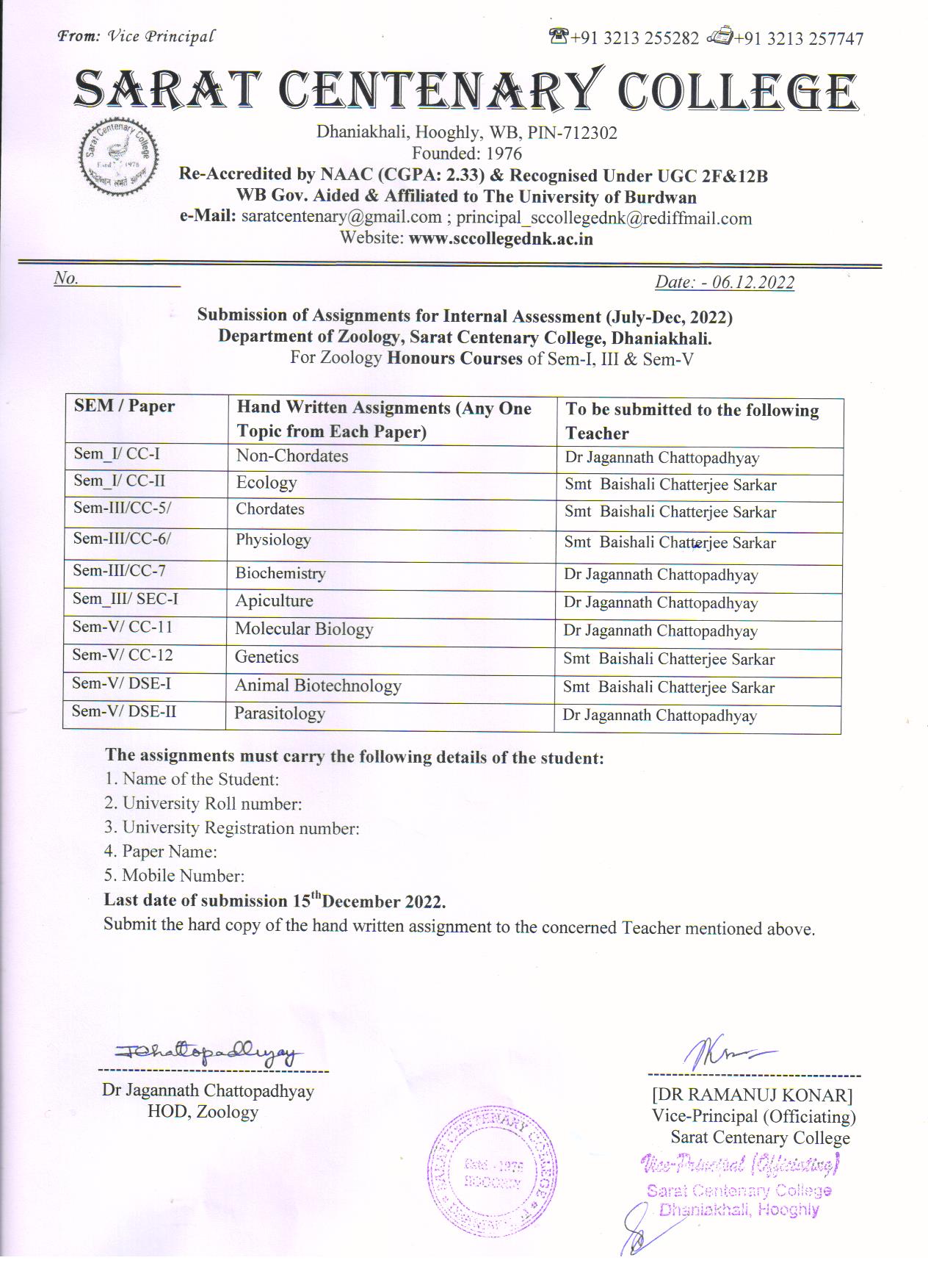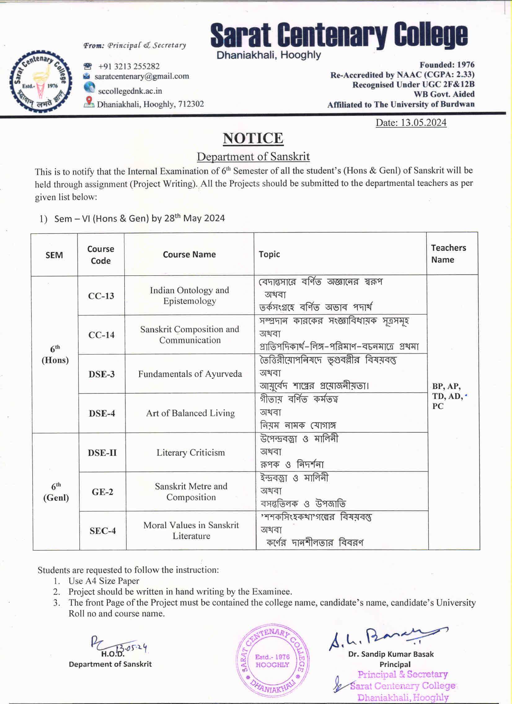 Ba/BSc/BCom (Honours) Part-III Marksheet distribution
