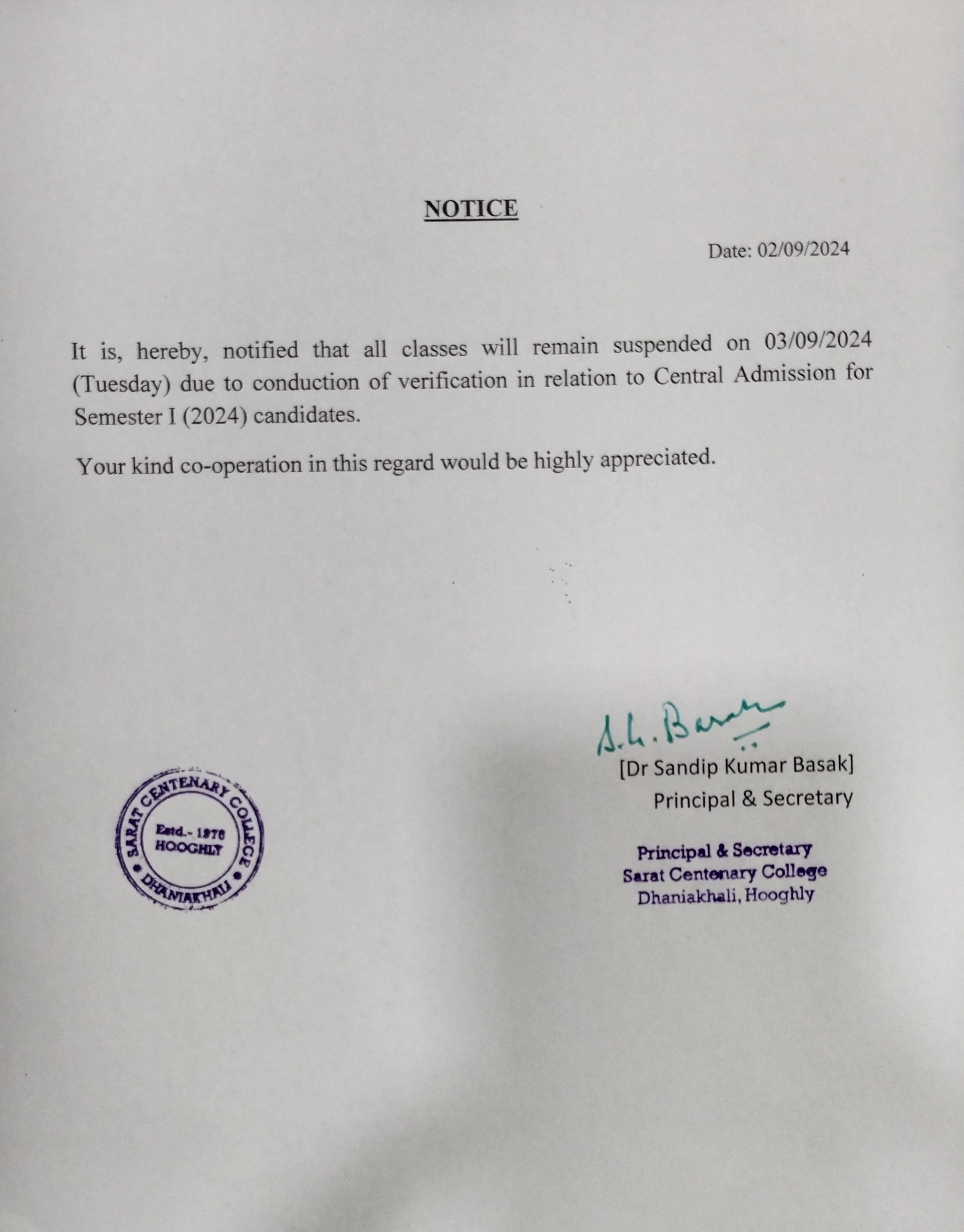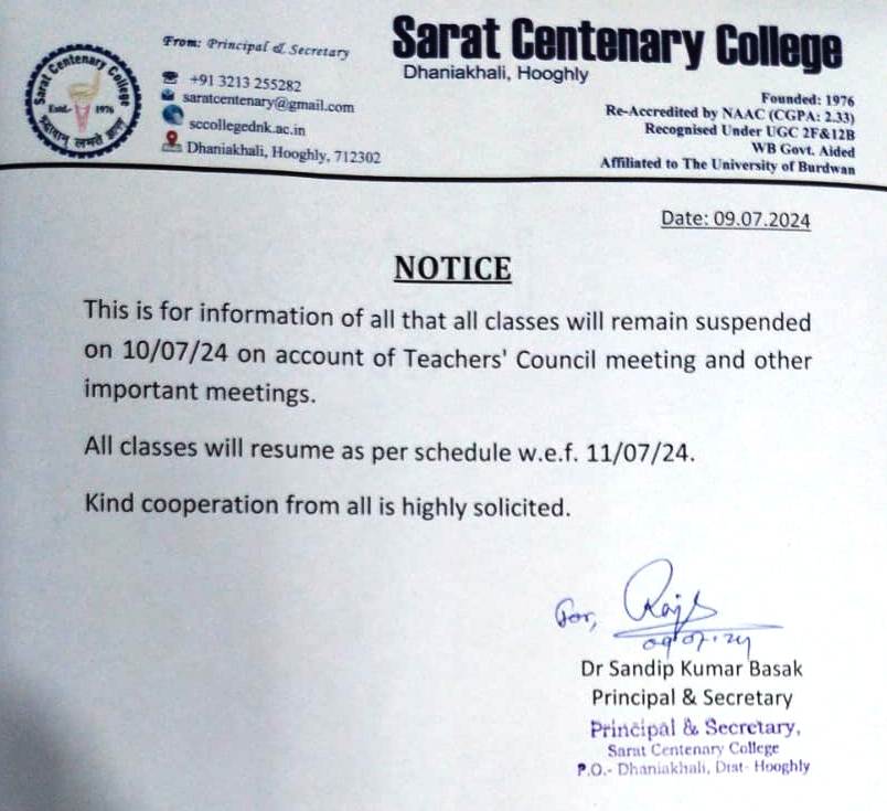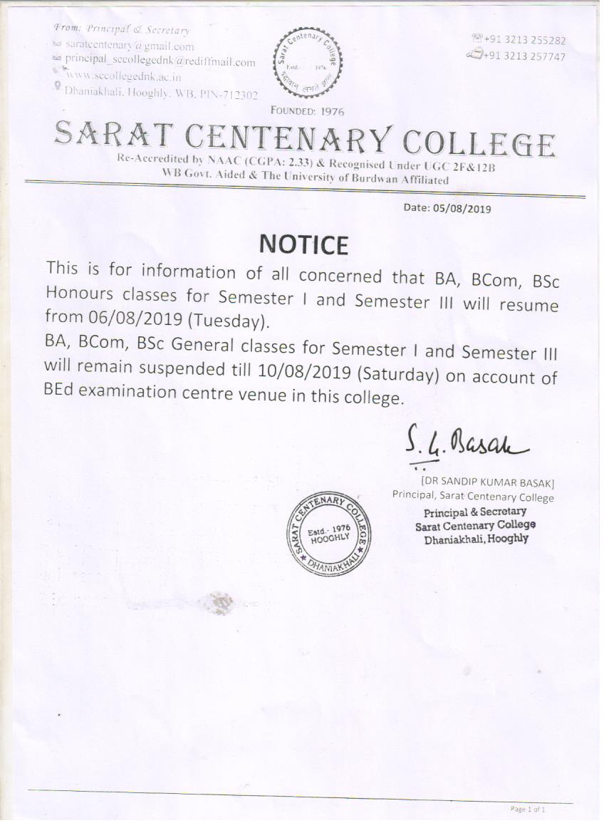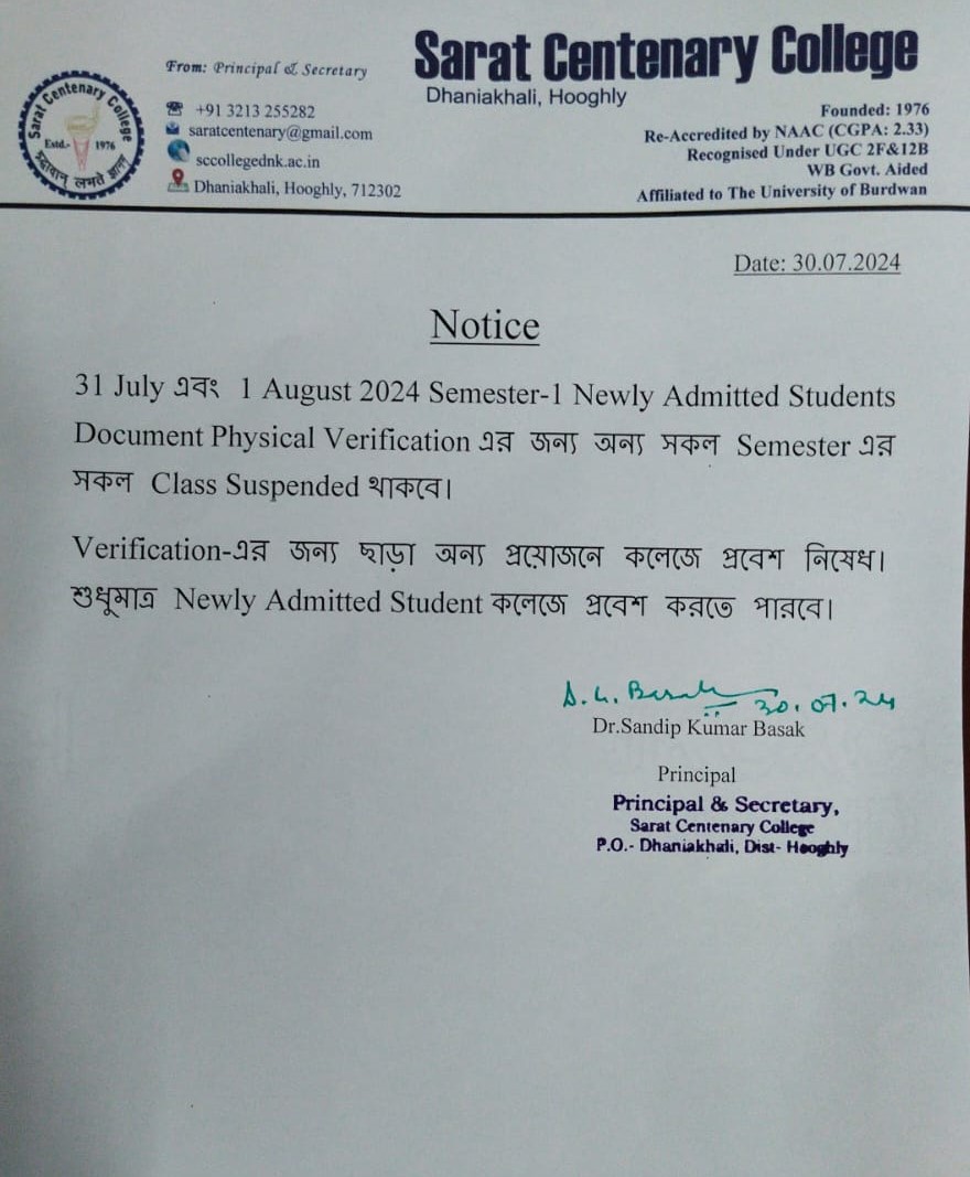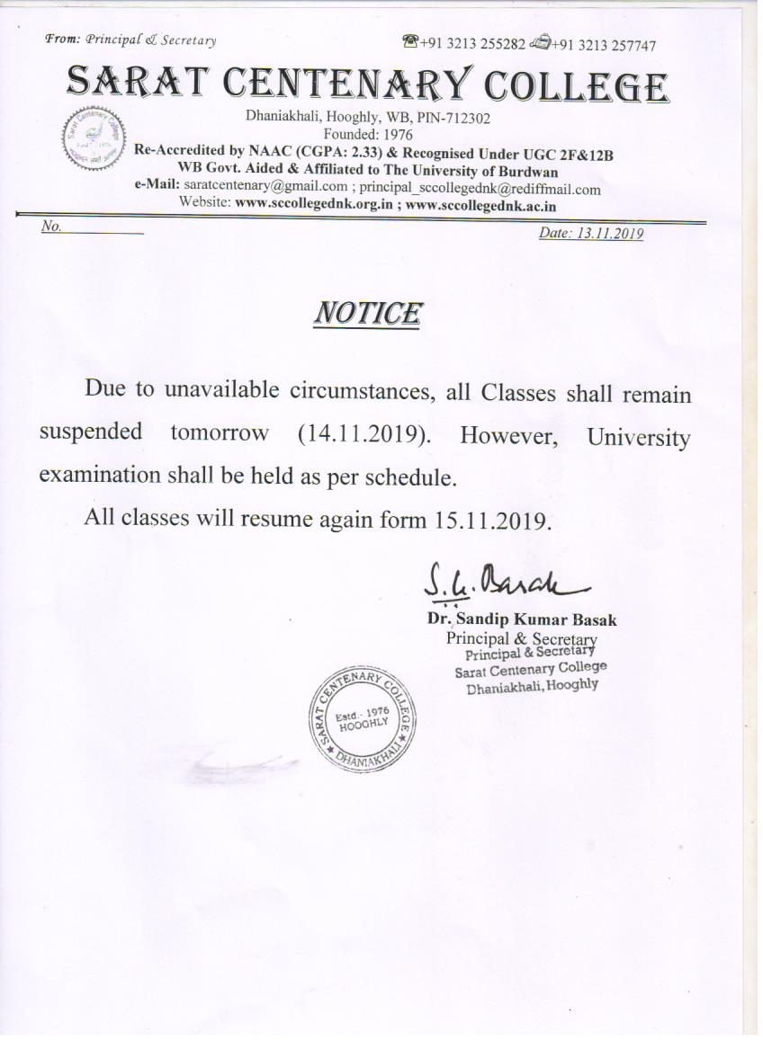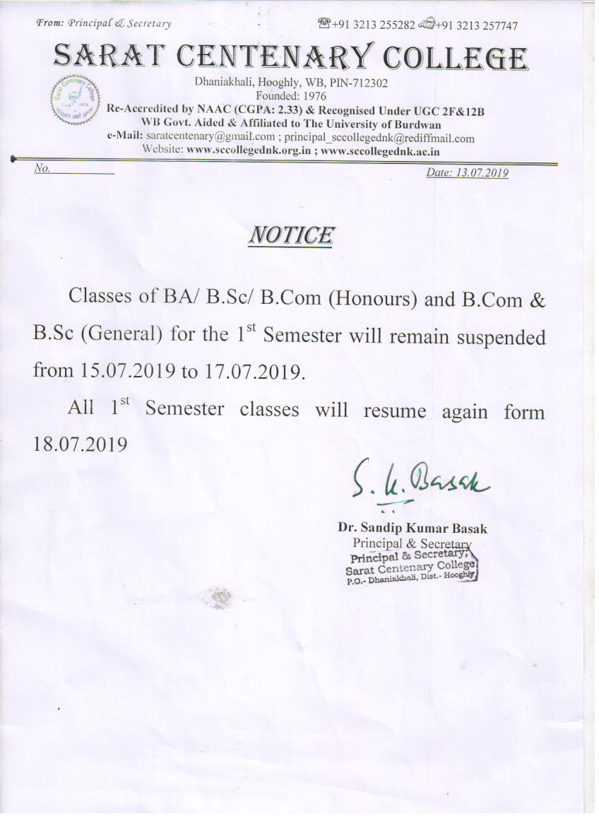 Class Suspended for BA/BSc/ BCom 1st SEM students