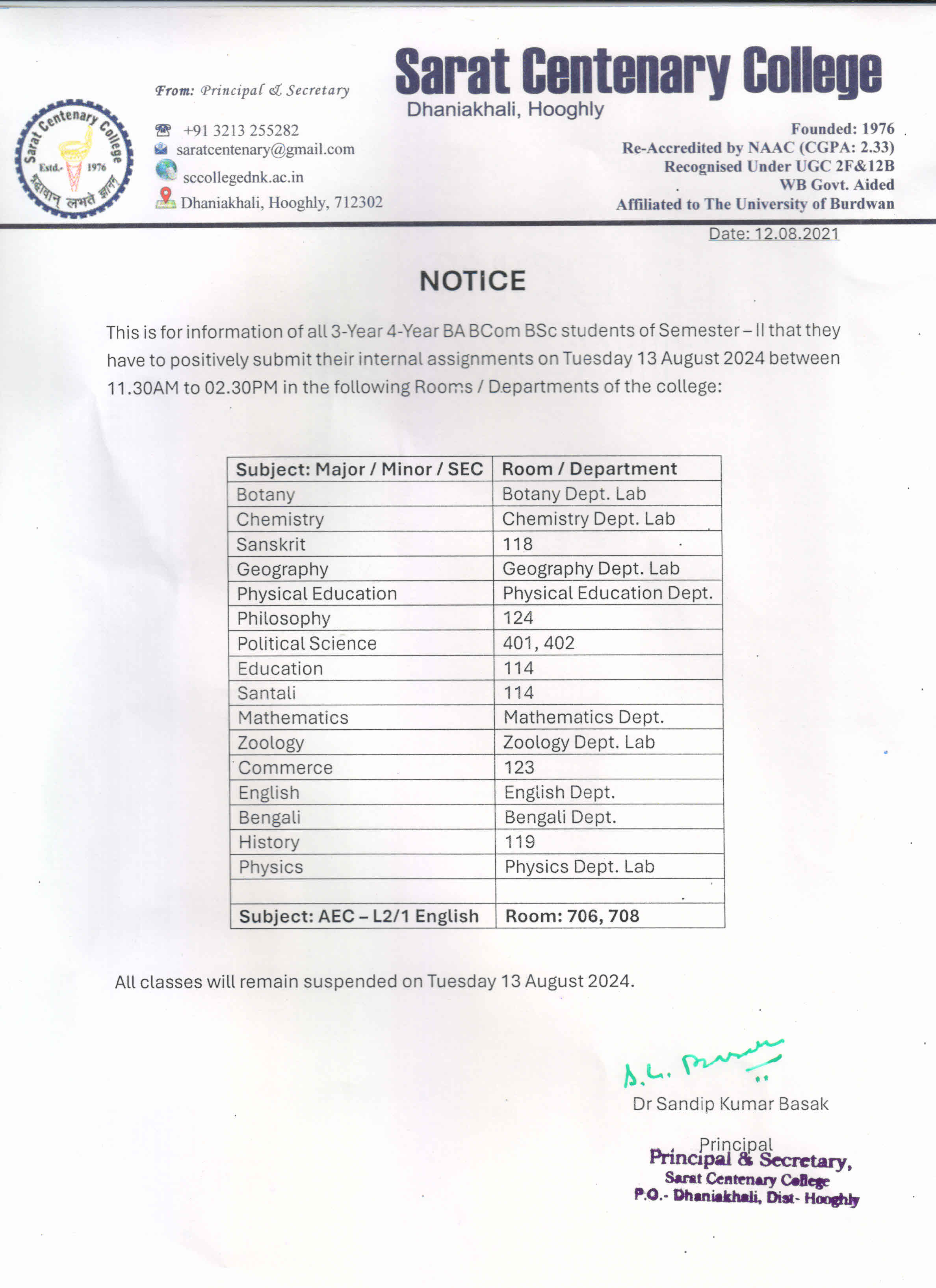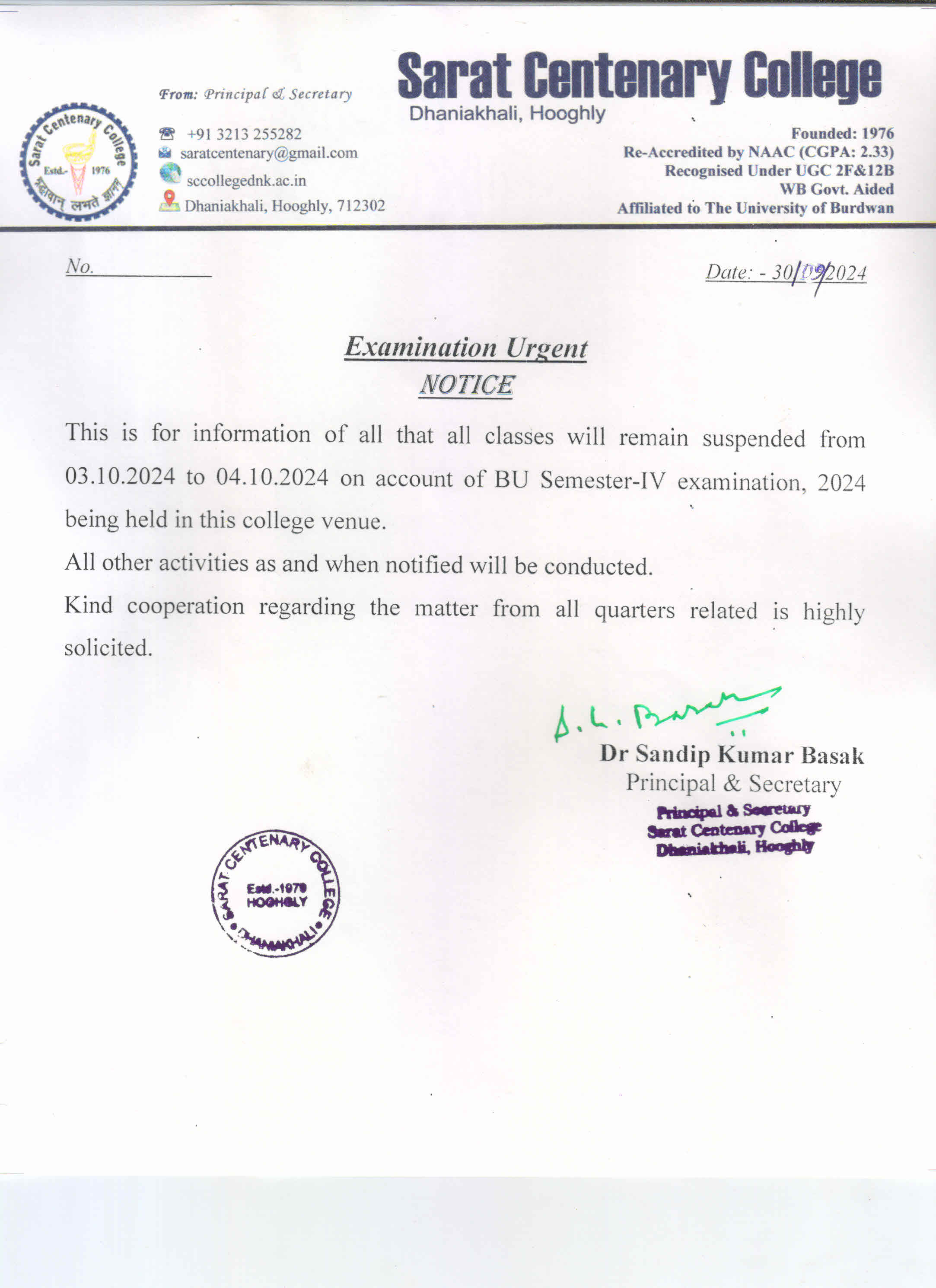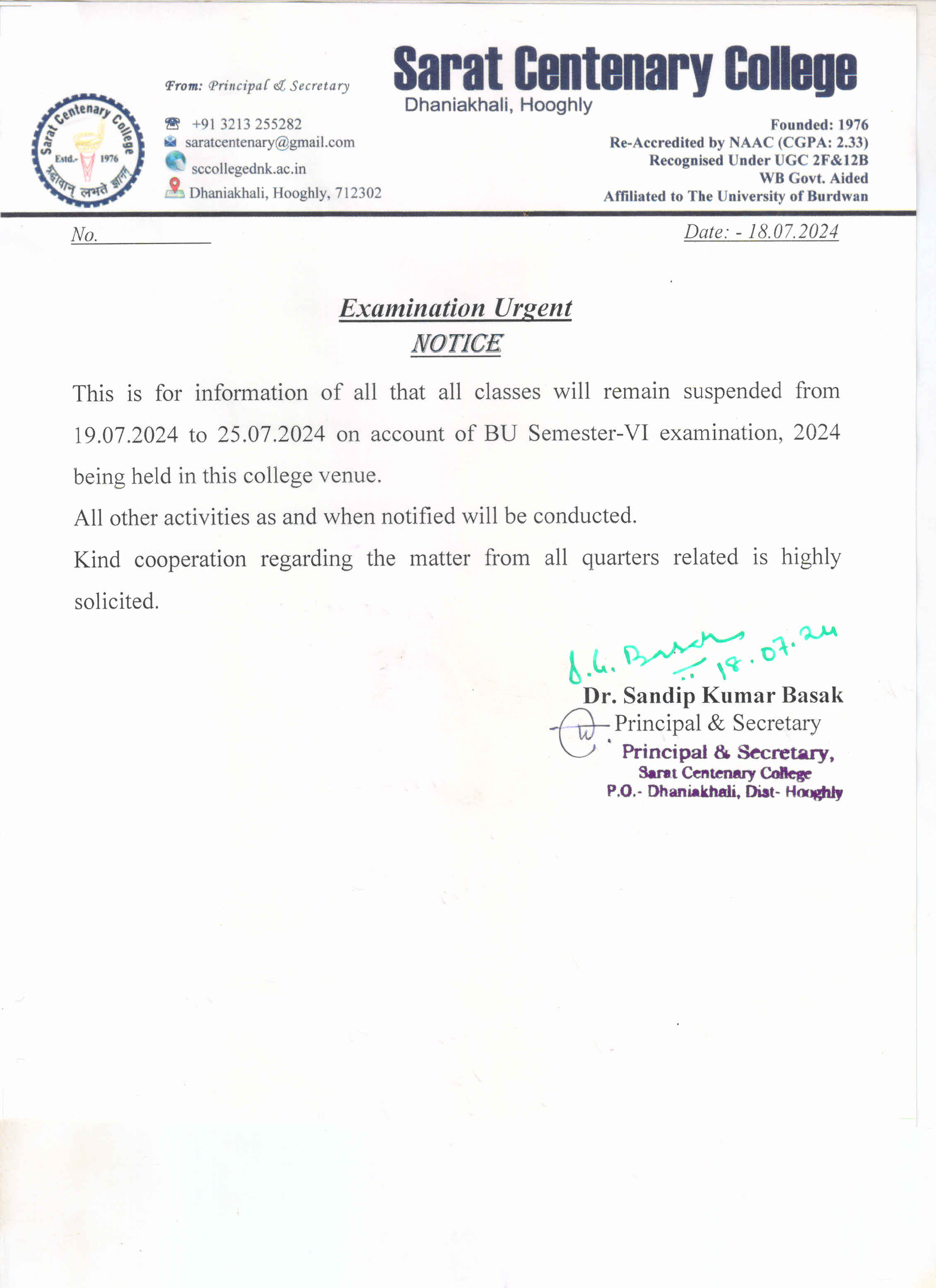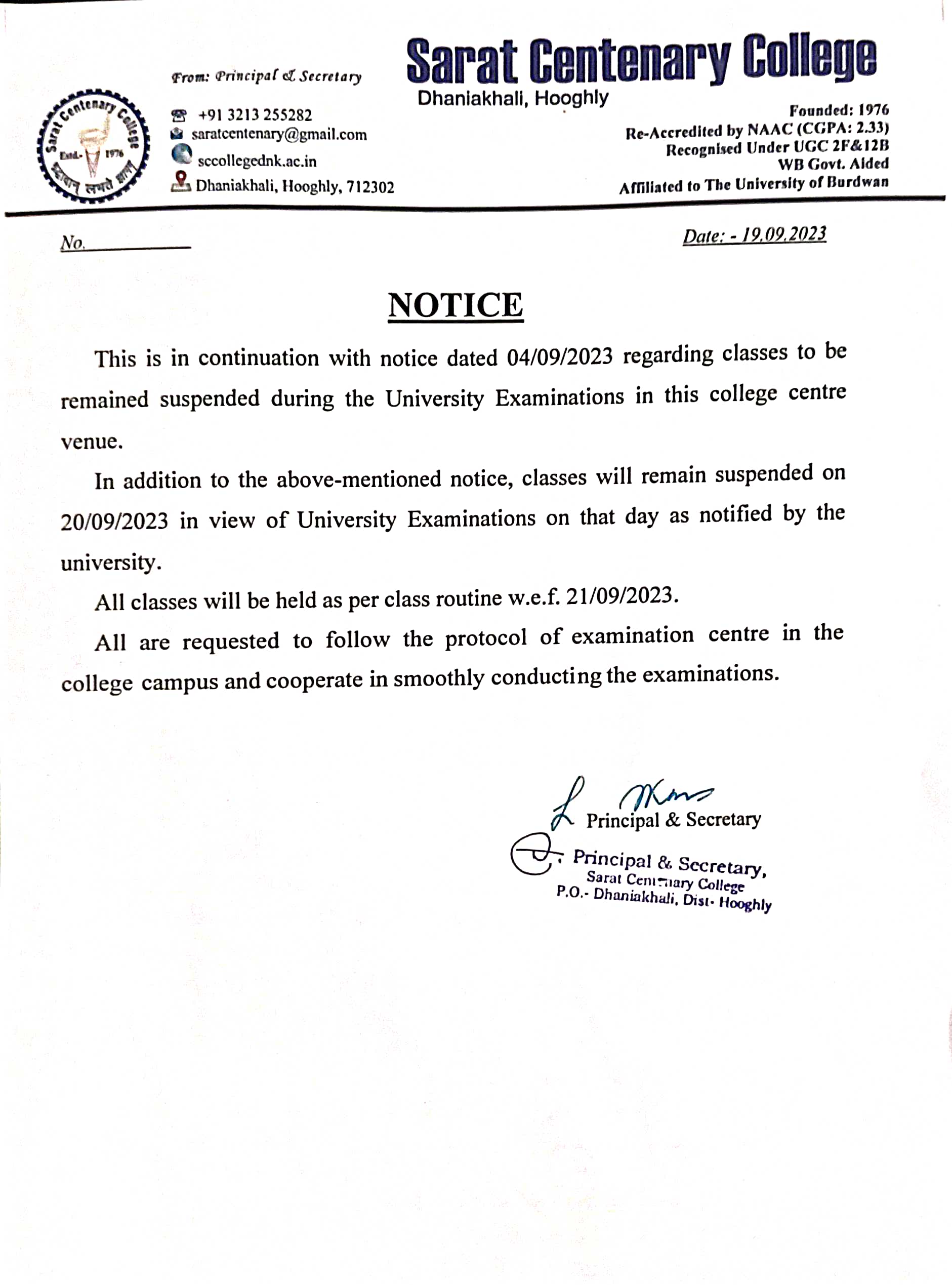 Class Suspended for BA/BSc/ BCom 1st SEM students
