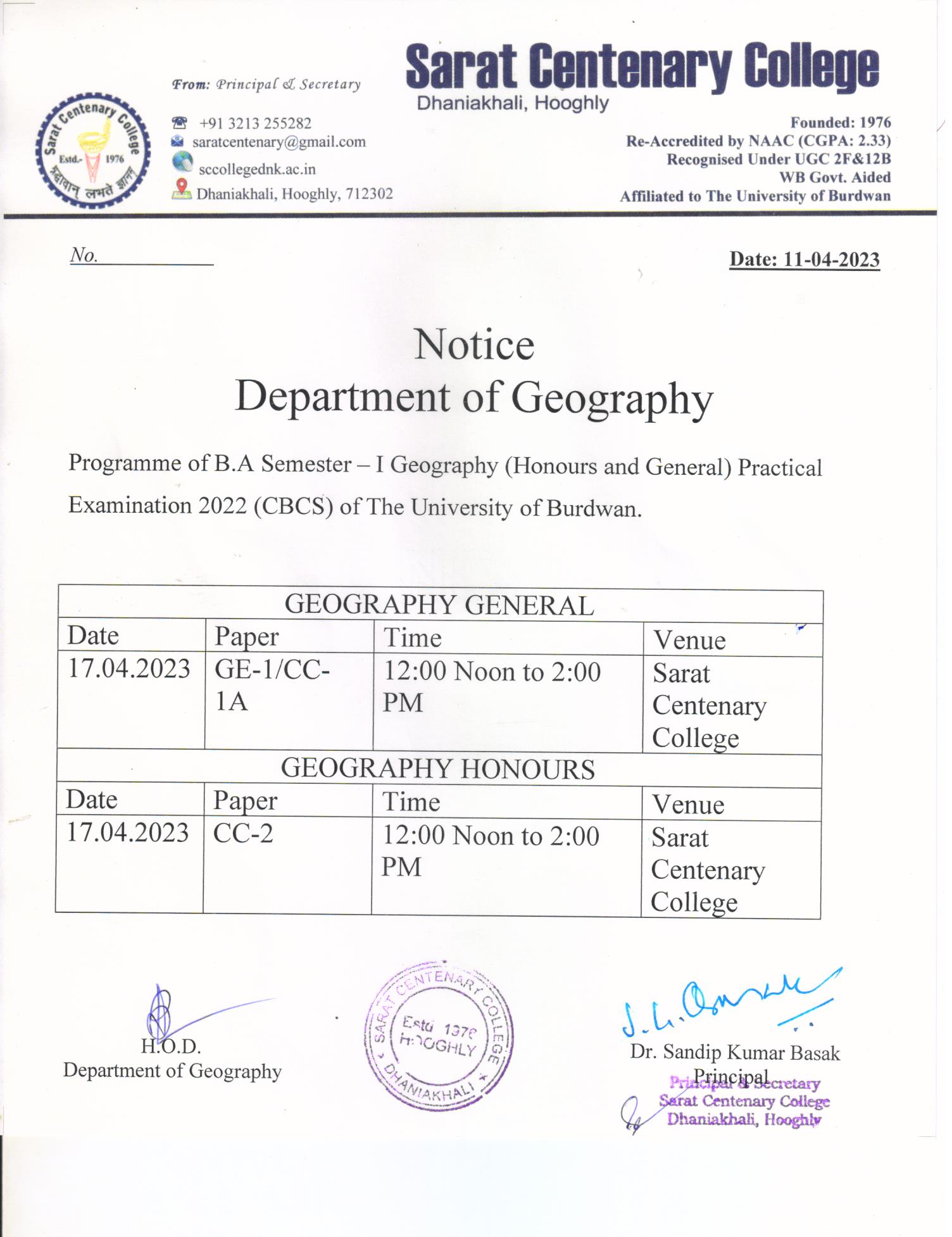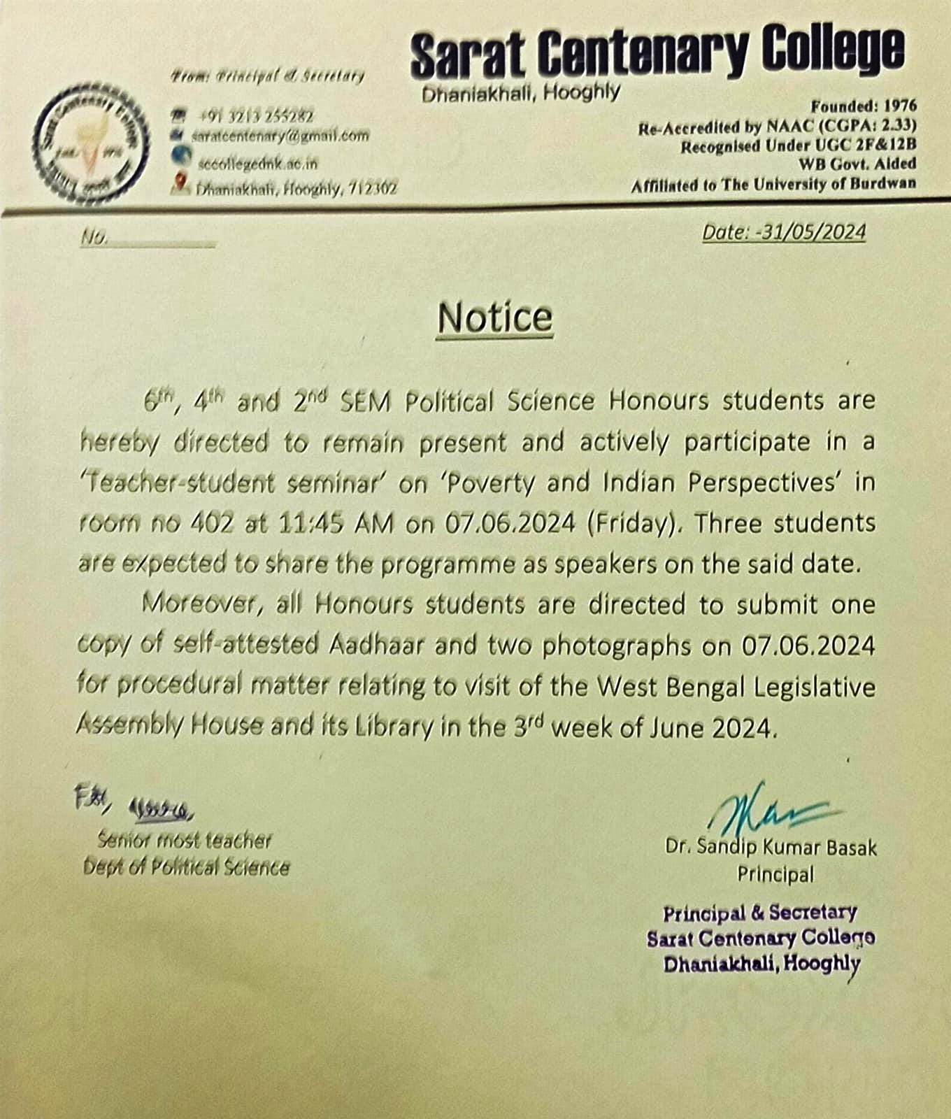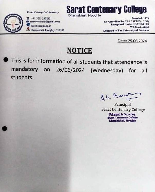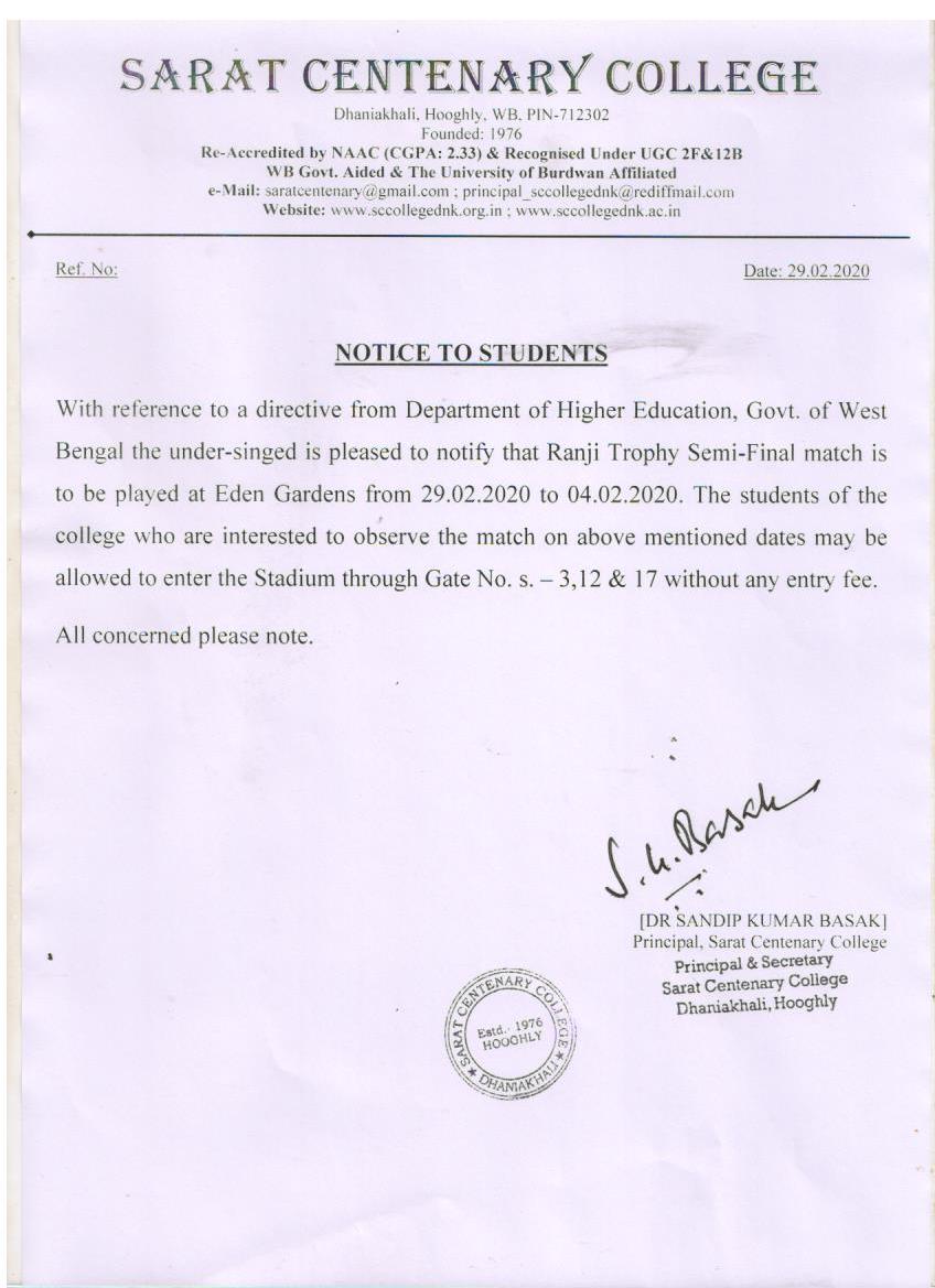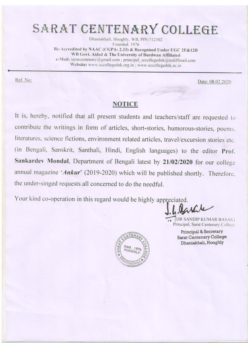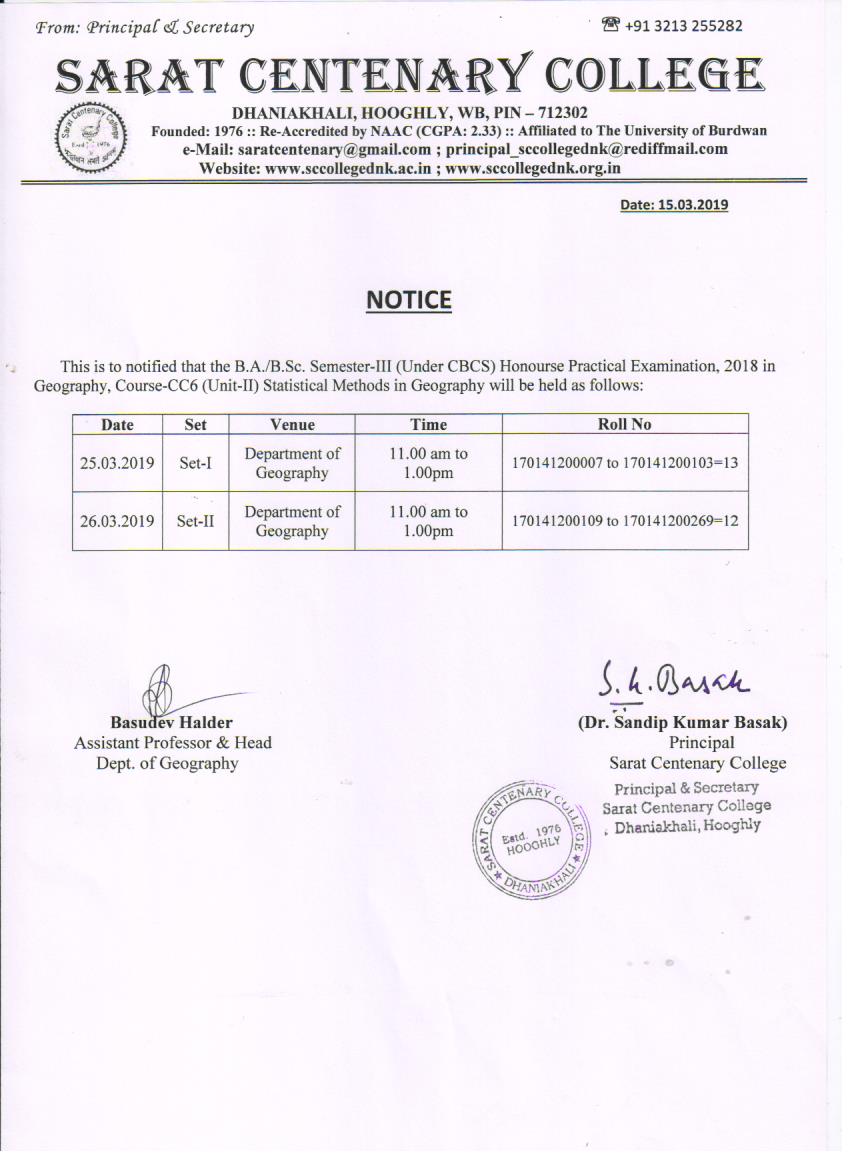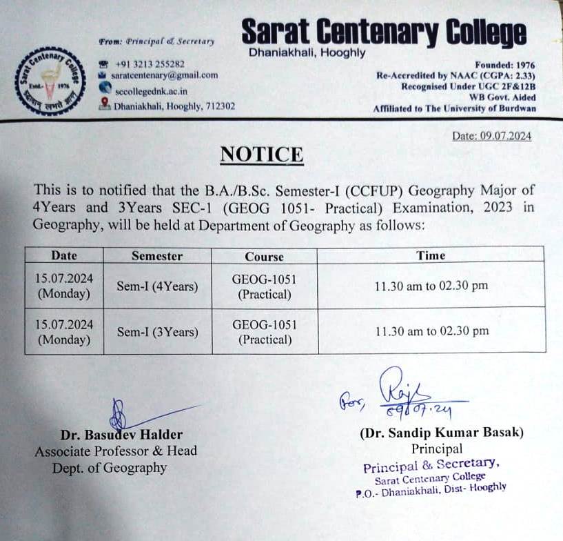 Notice for TS, NTS & Student of Geography Department