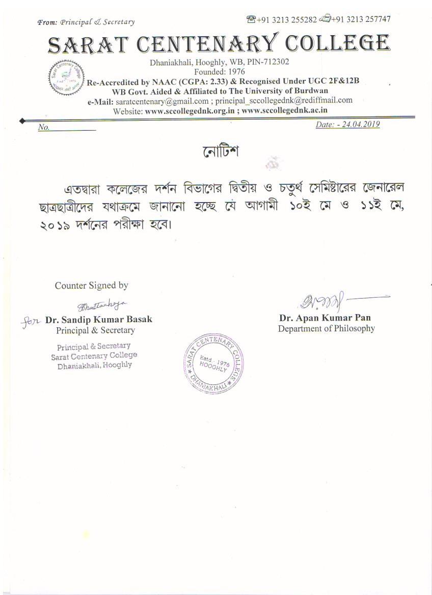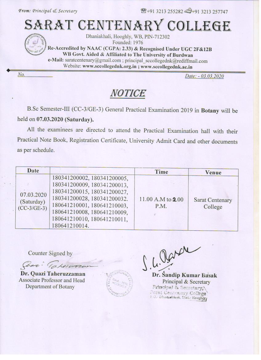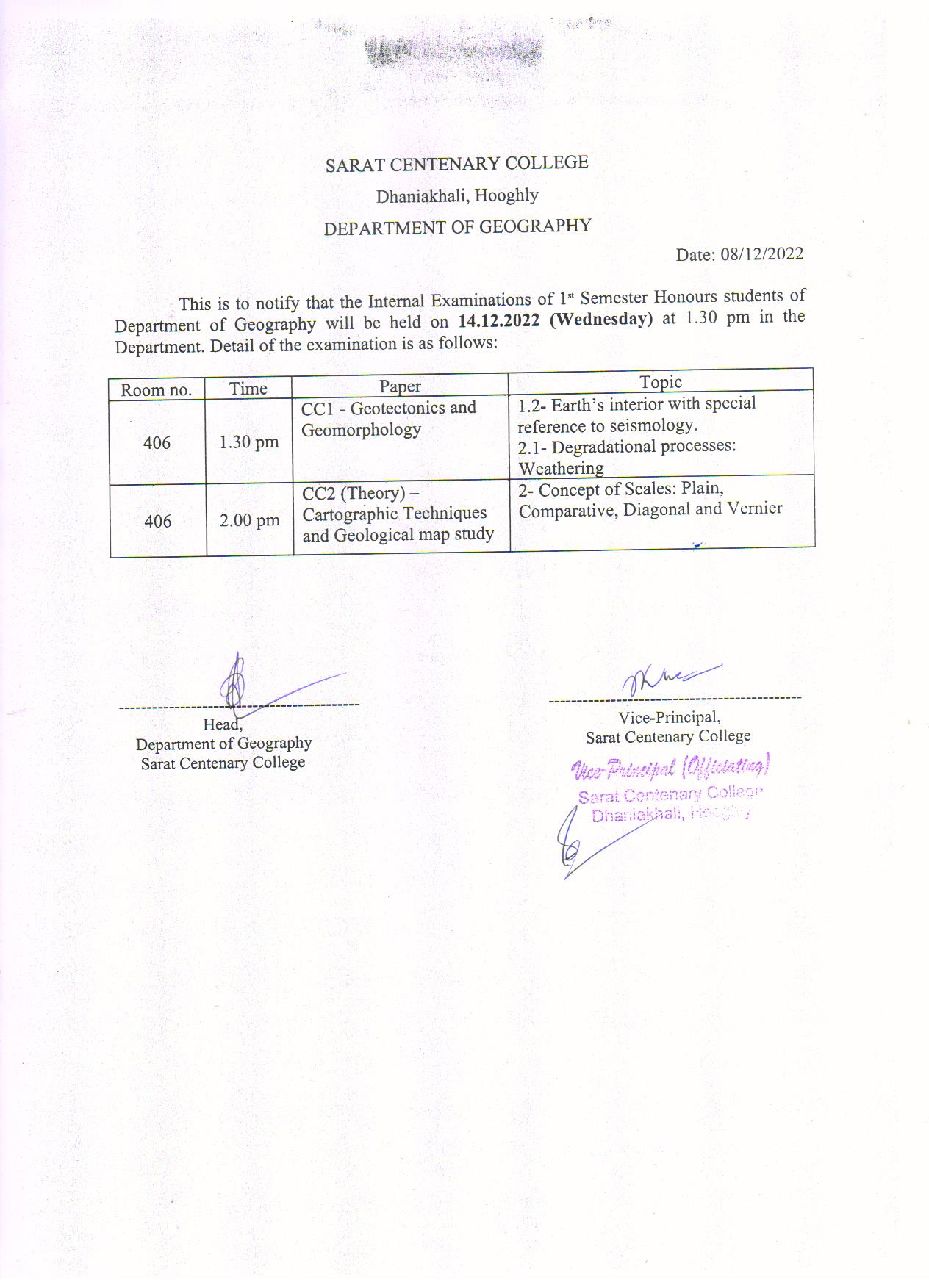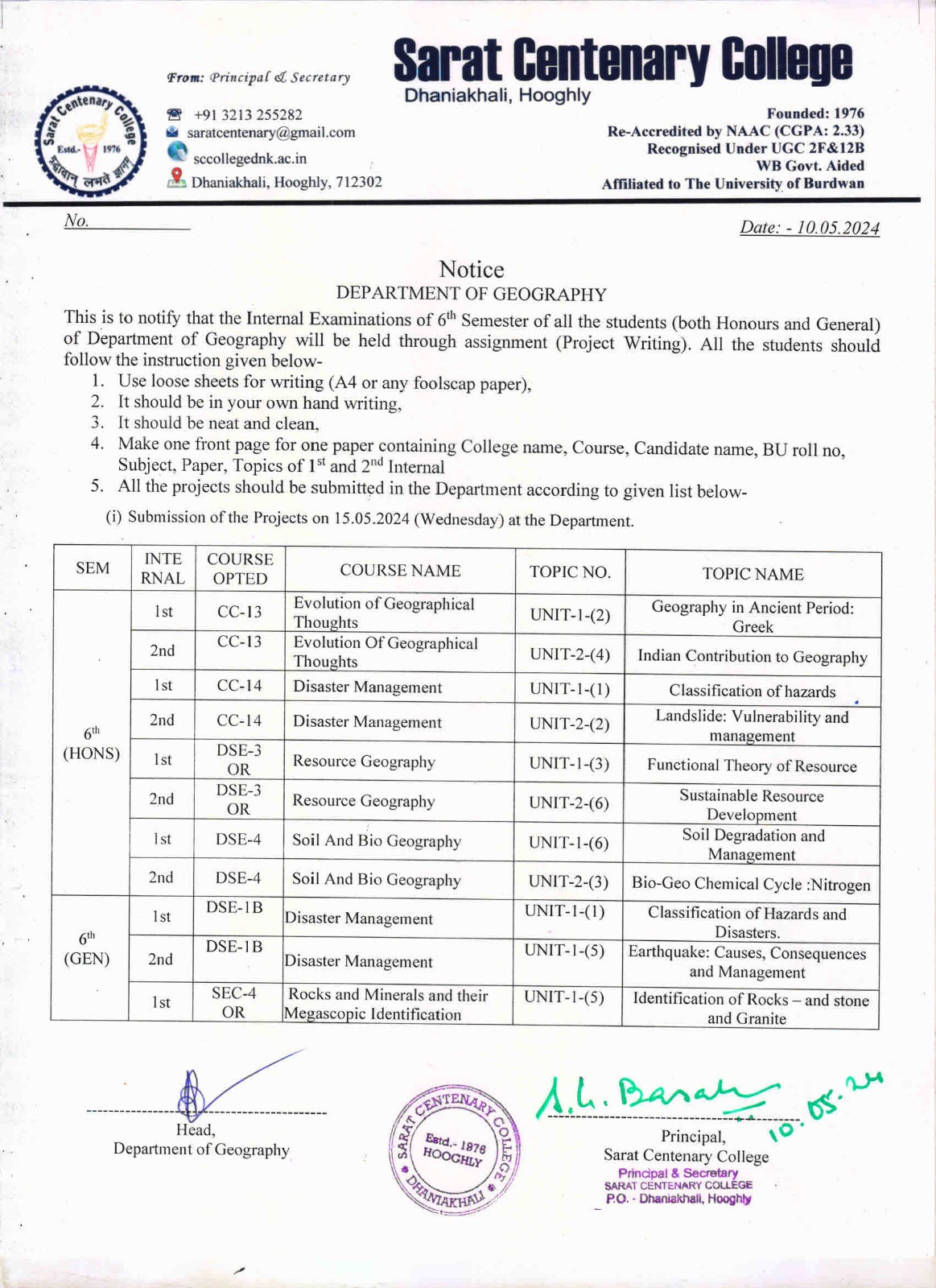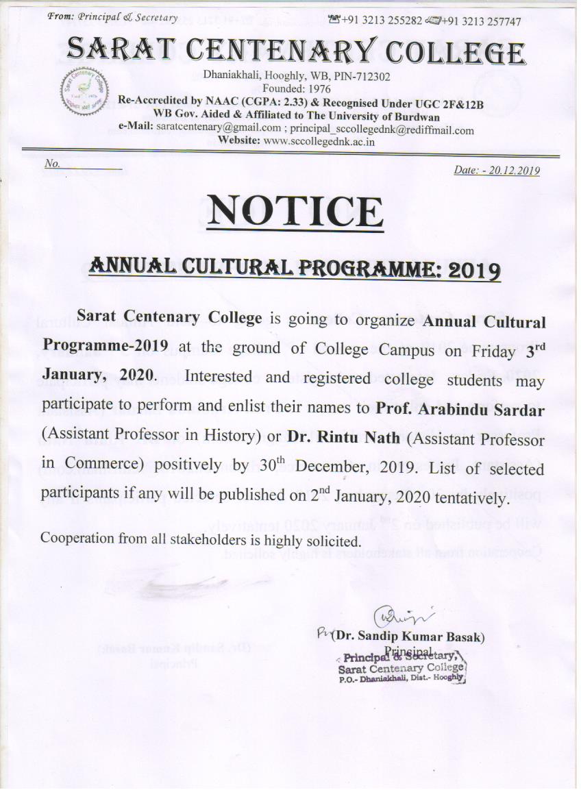 Notice for TS, NTS & Student of Geography Department