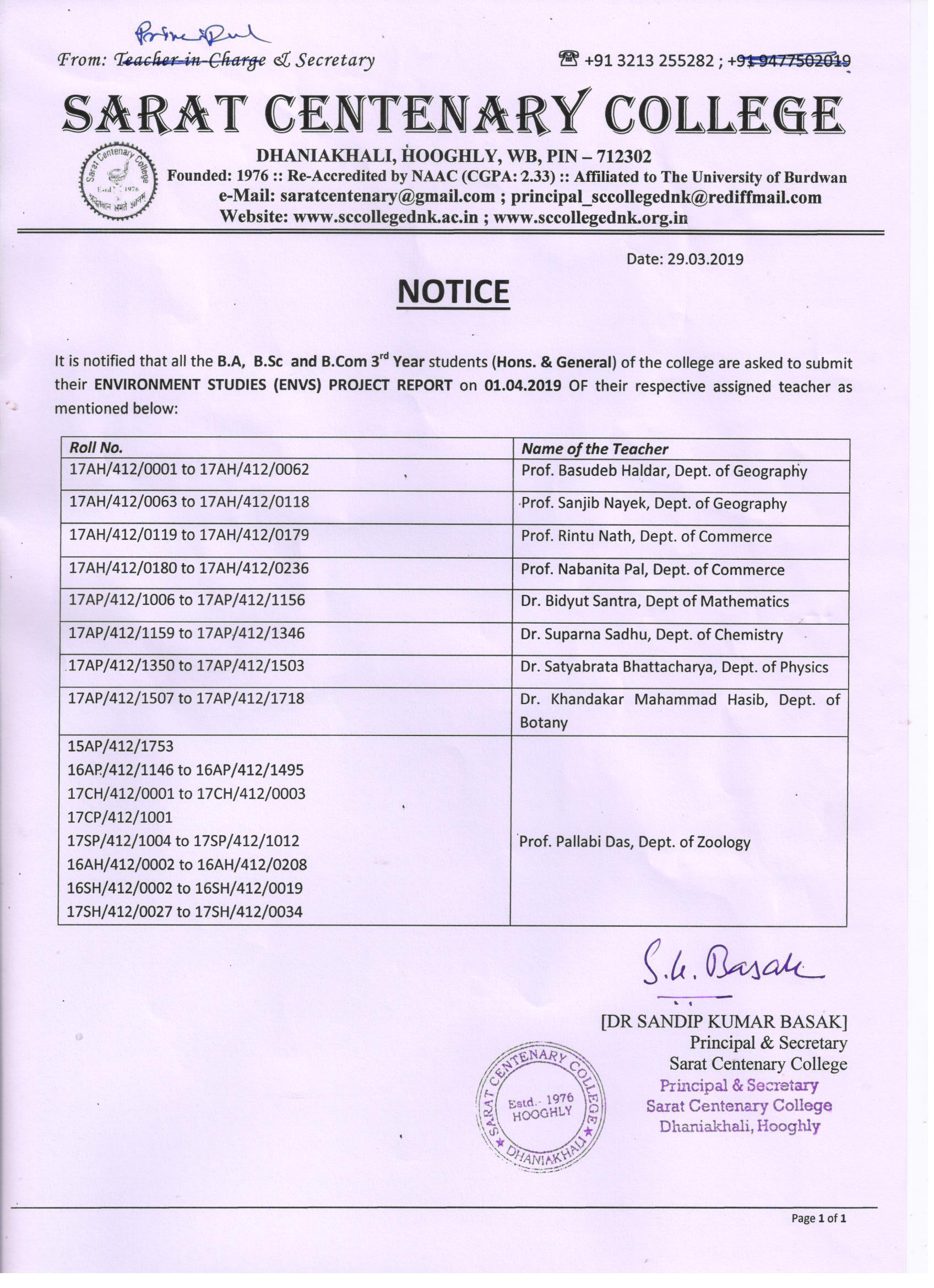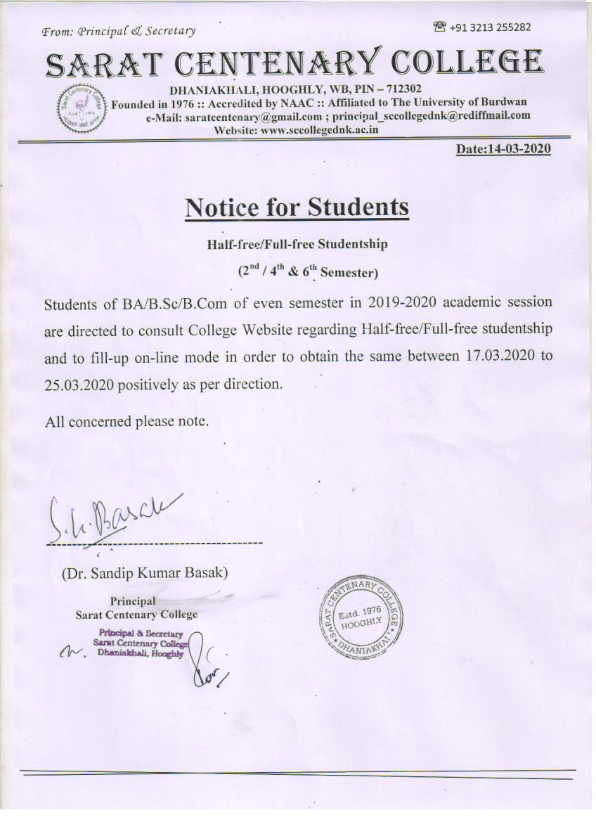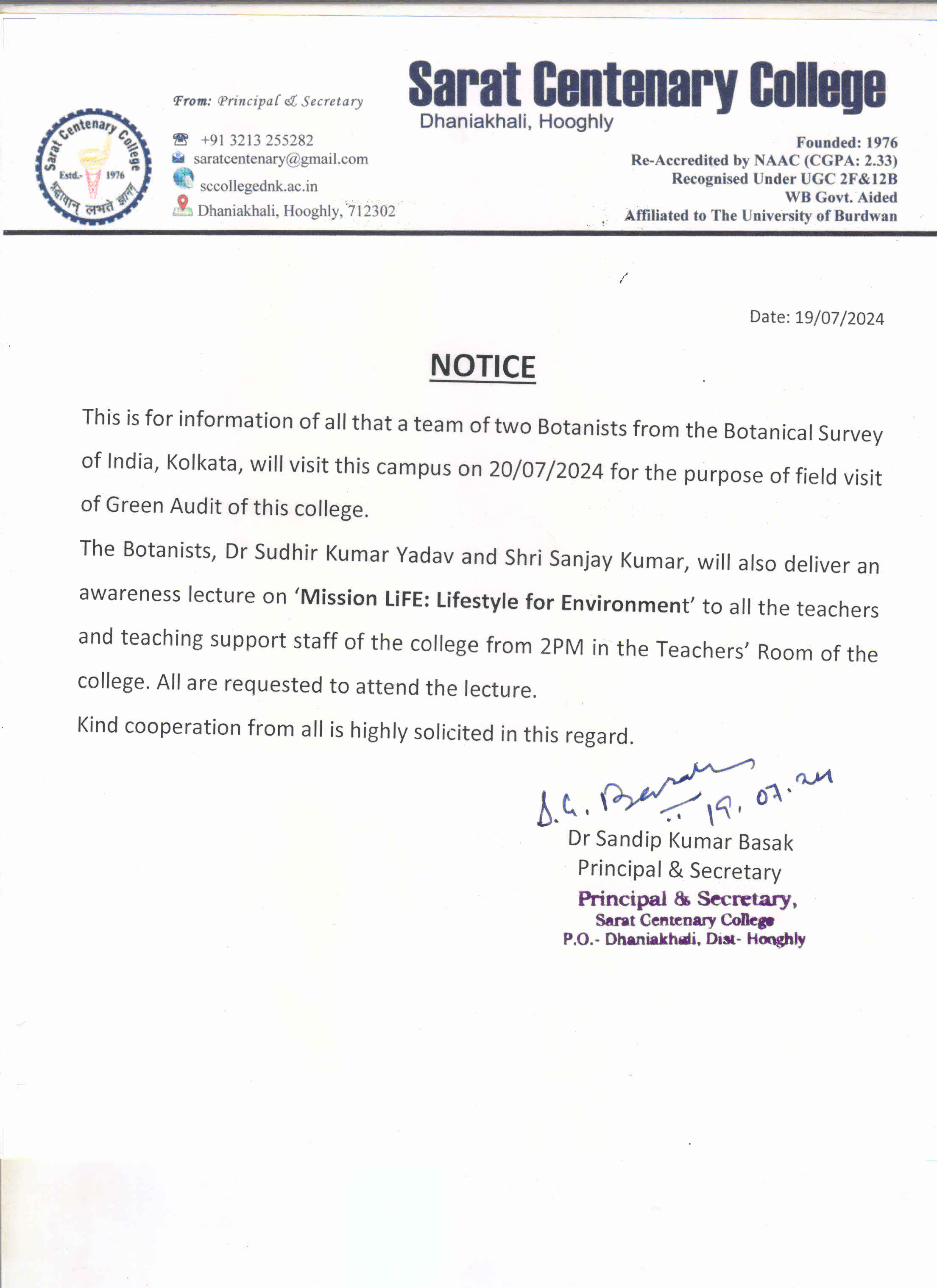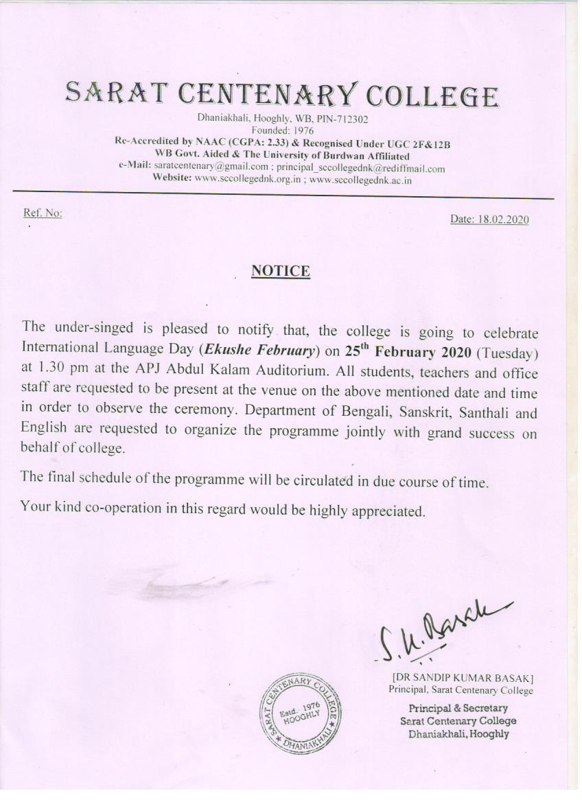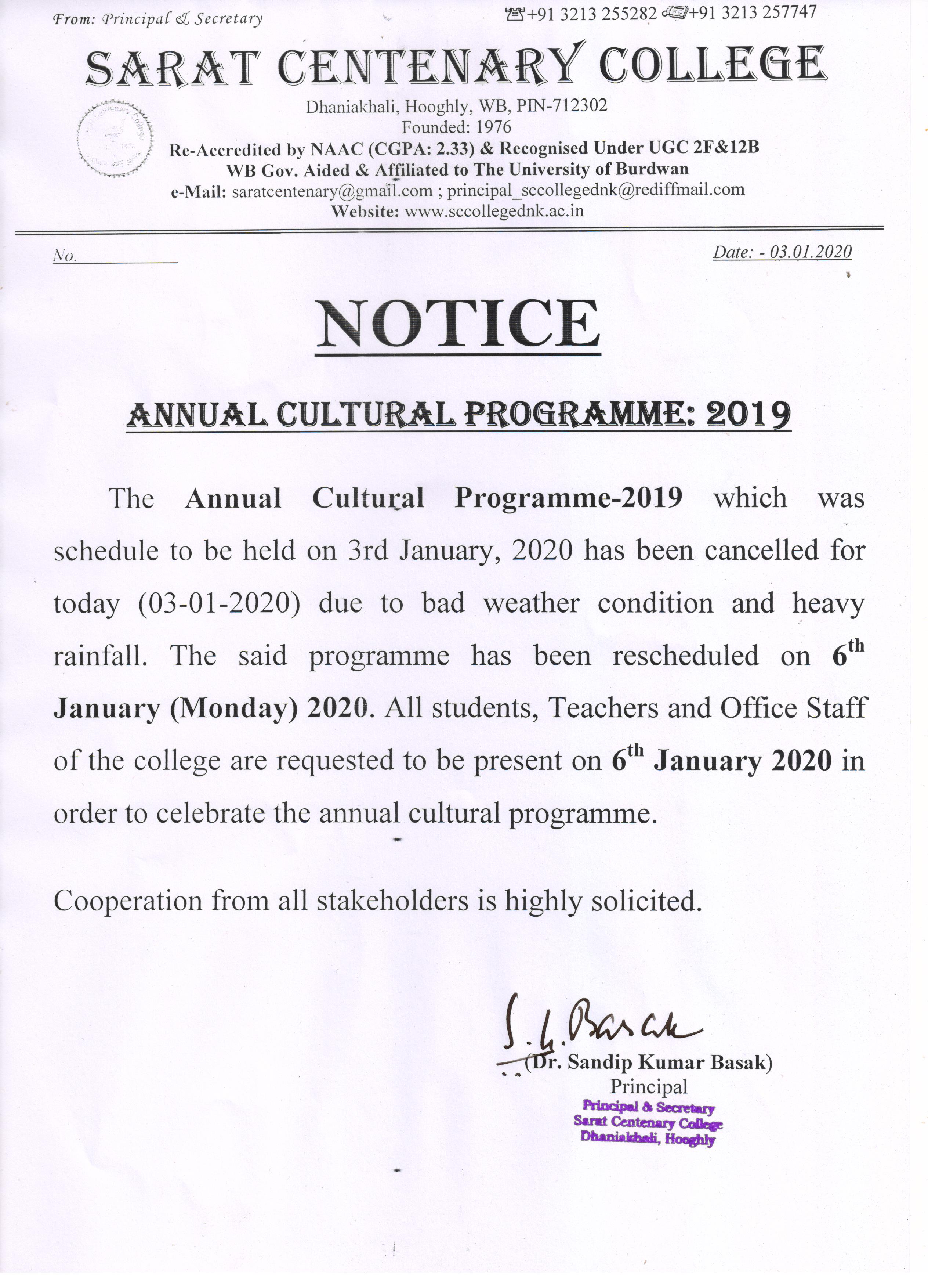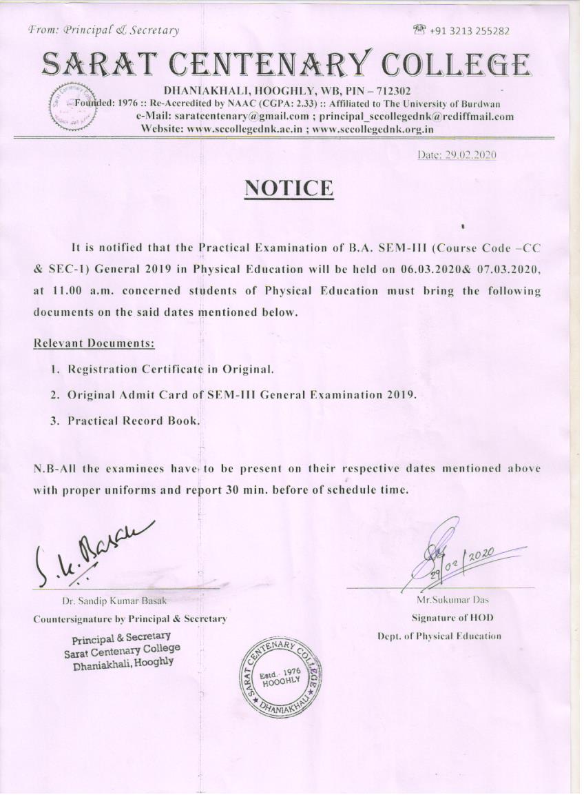 Notice for TS, NTS & Student of Geography Department