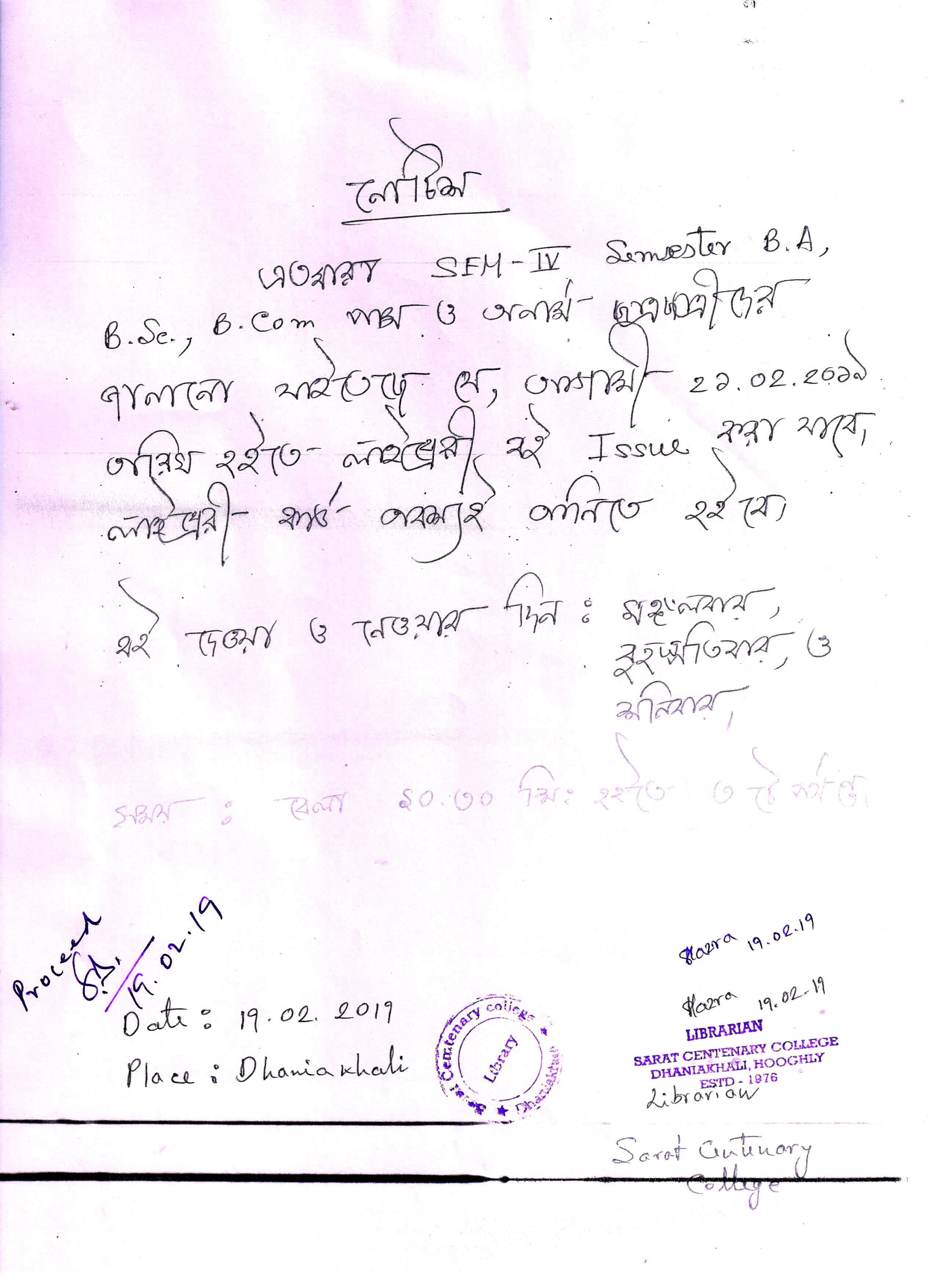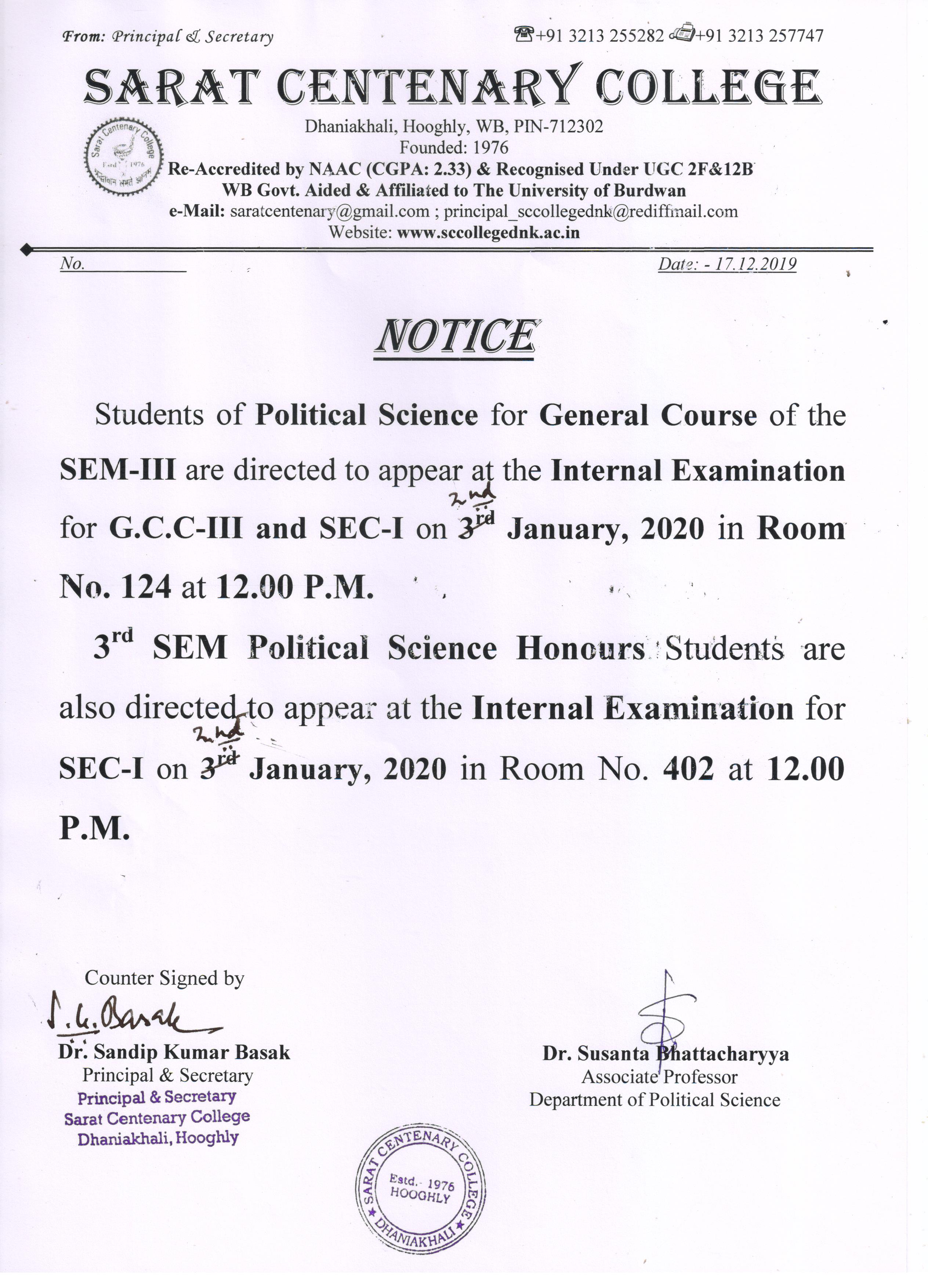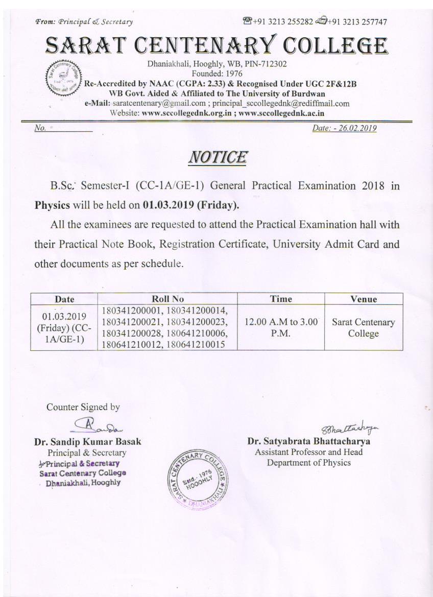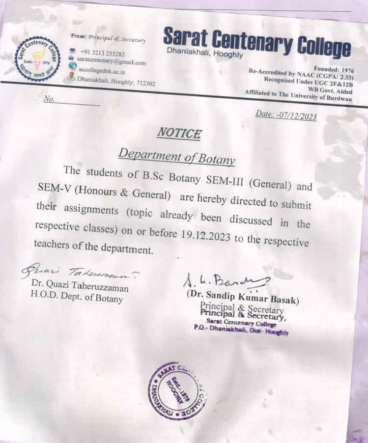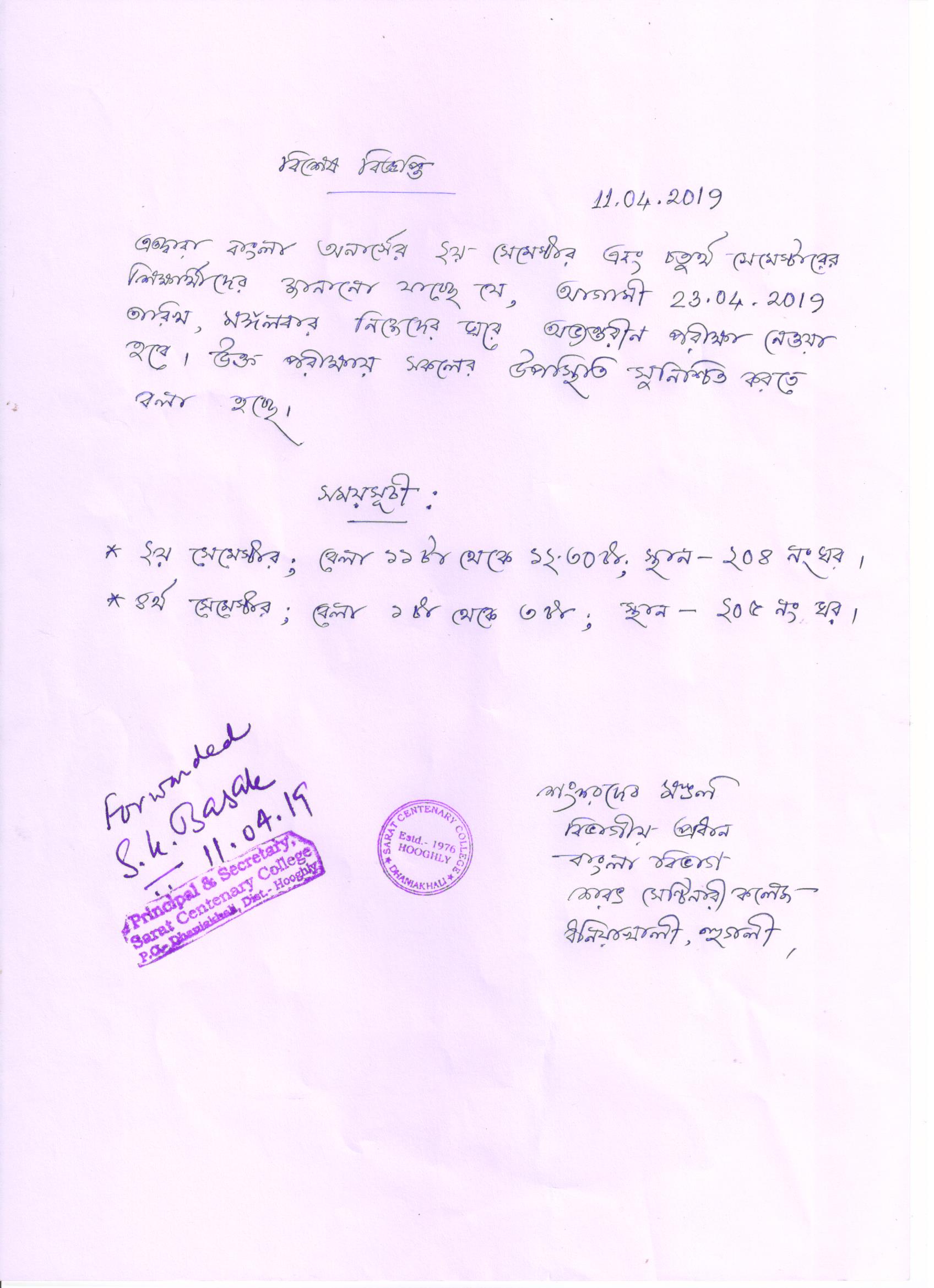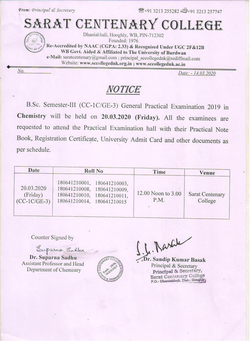 Notice for TS, NTS & Student of Geography Department