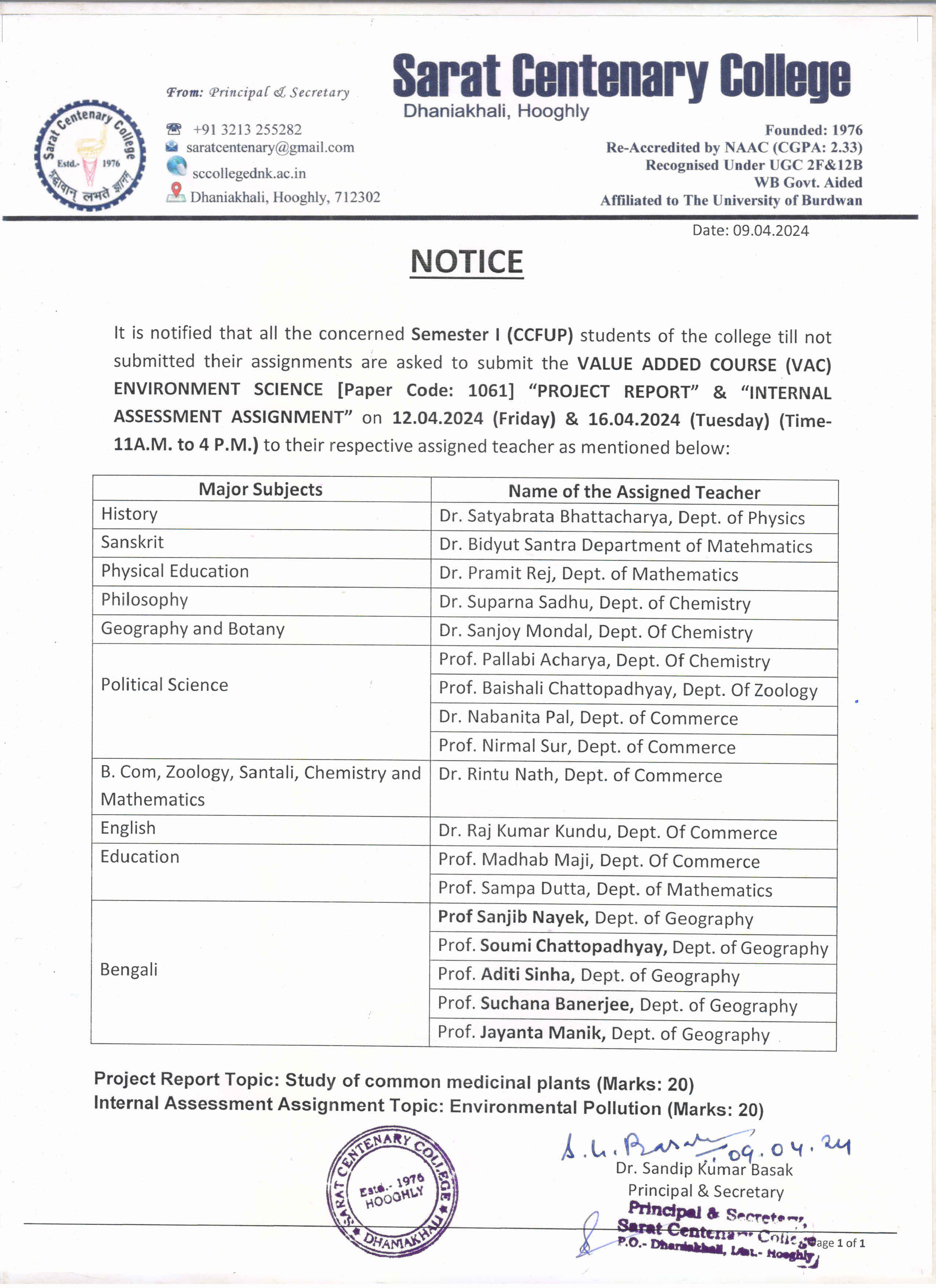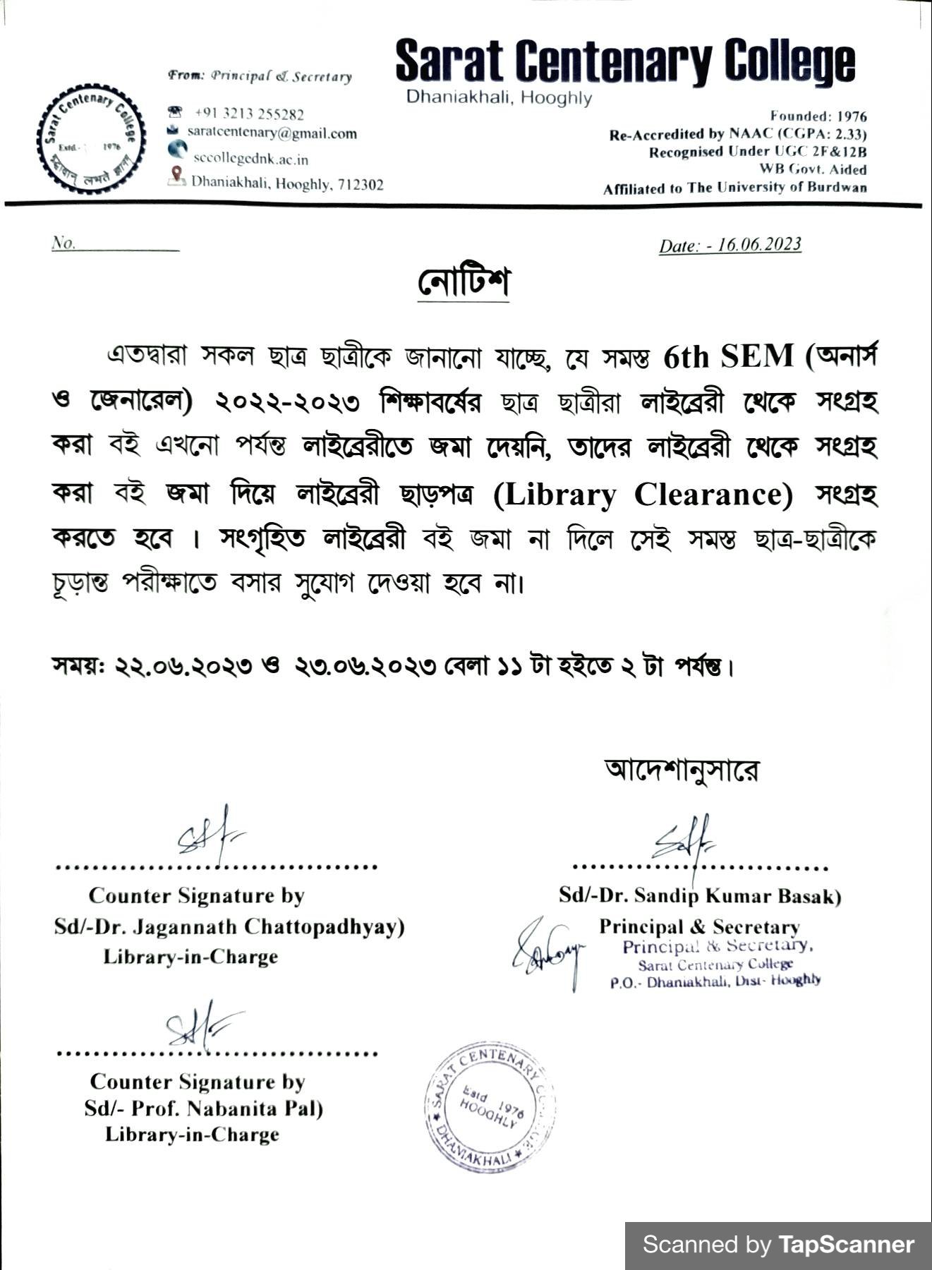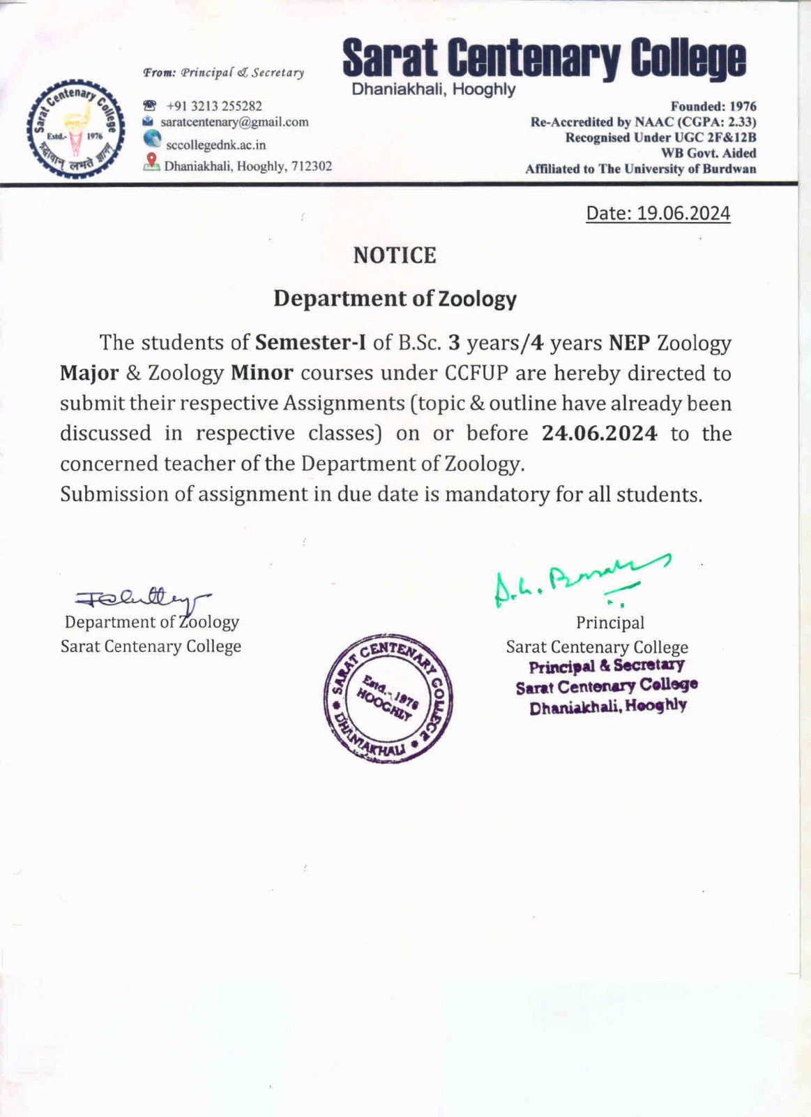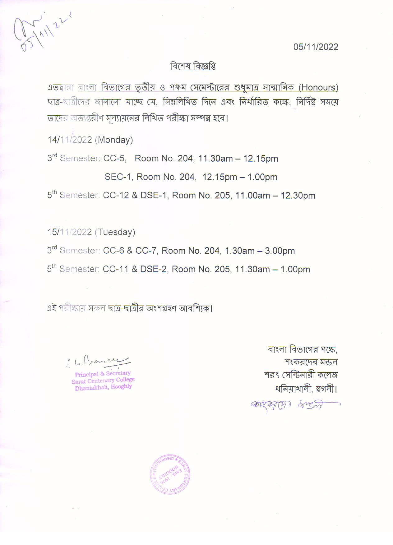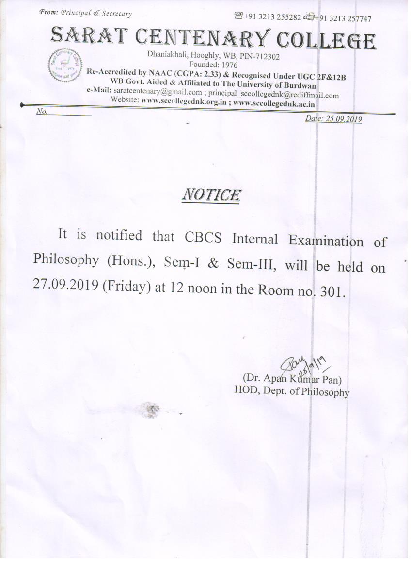 Notice for TS, NTS & Student of Geography Department
