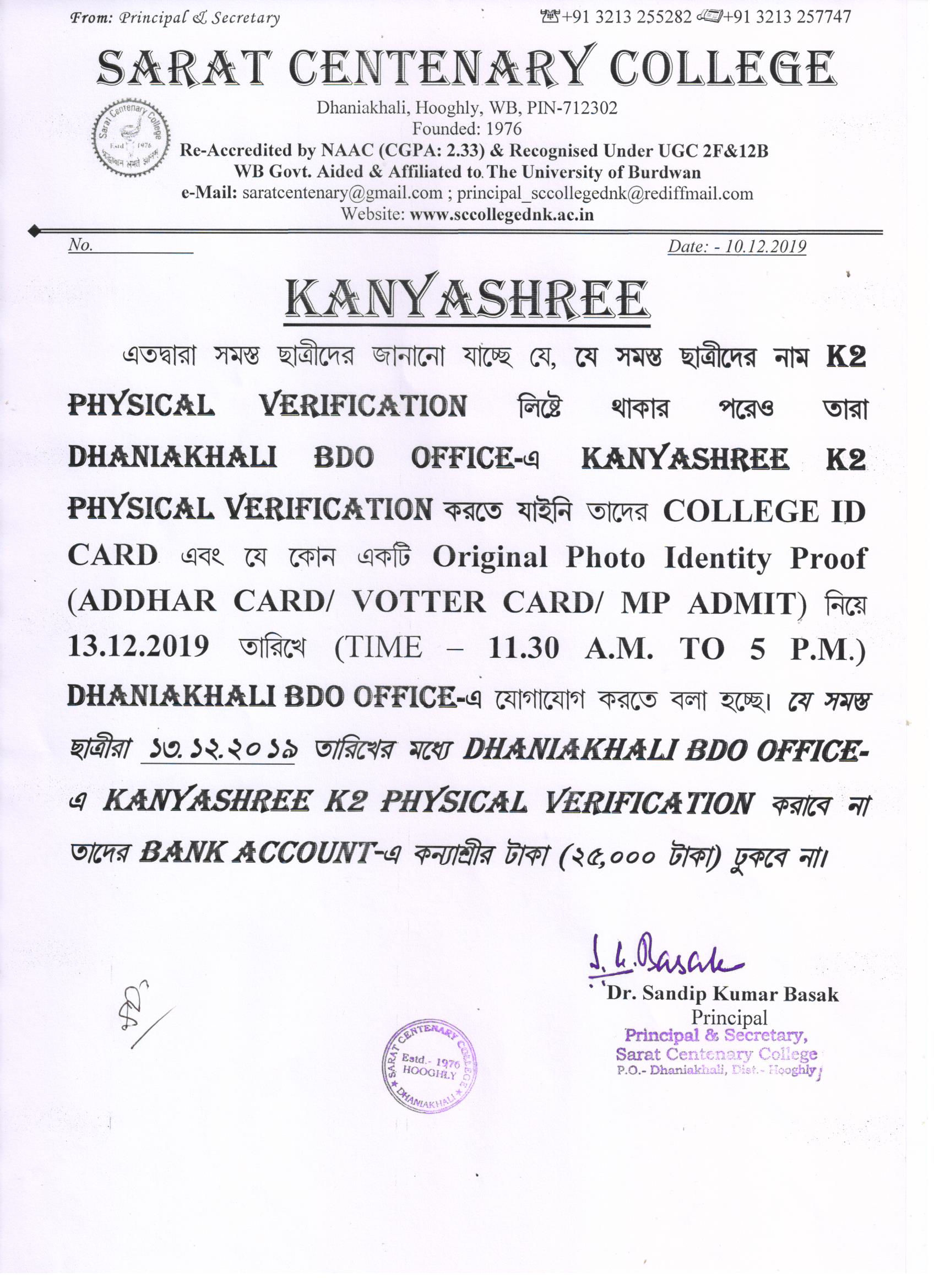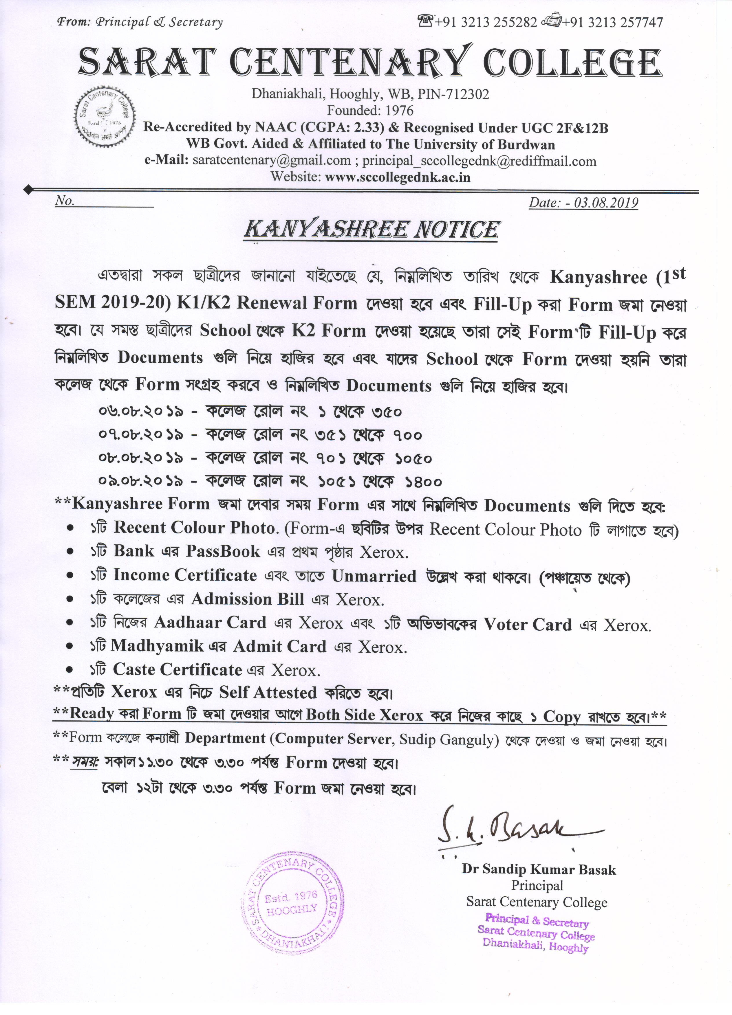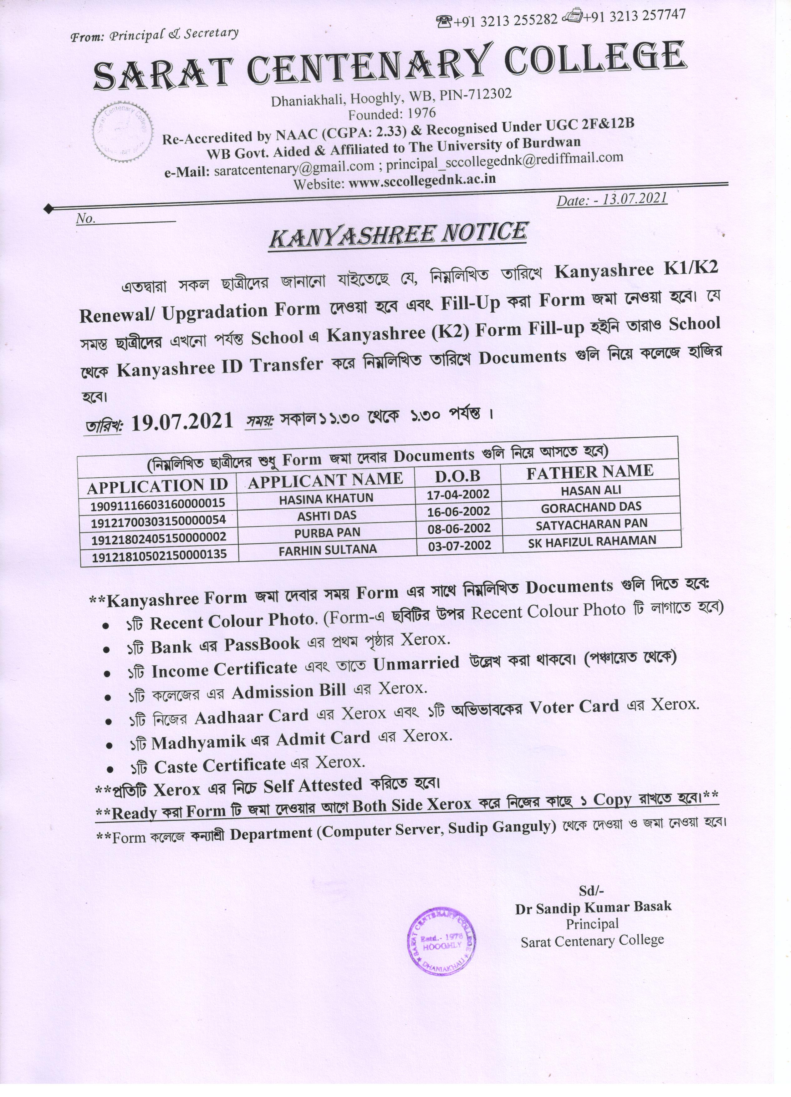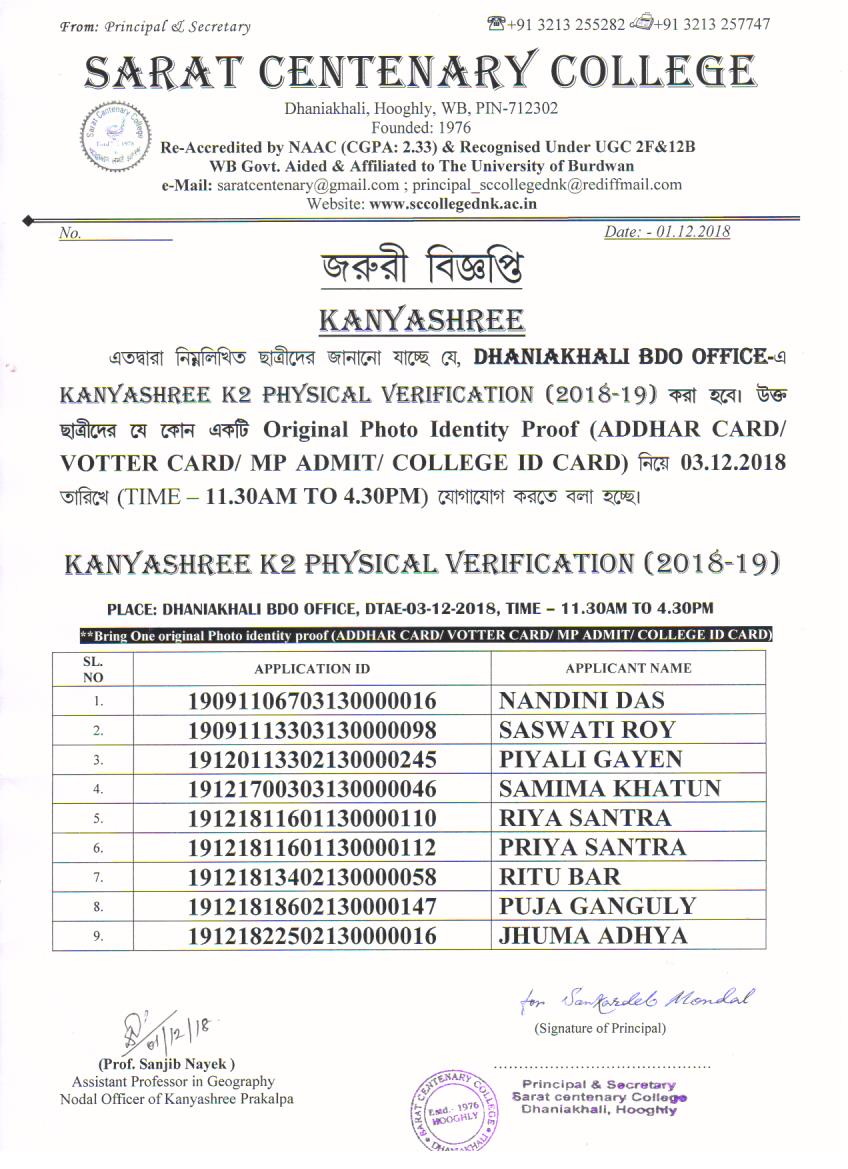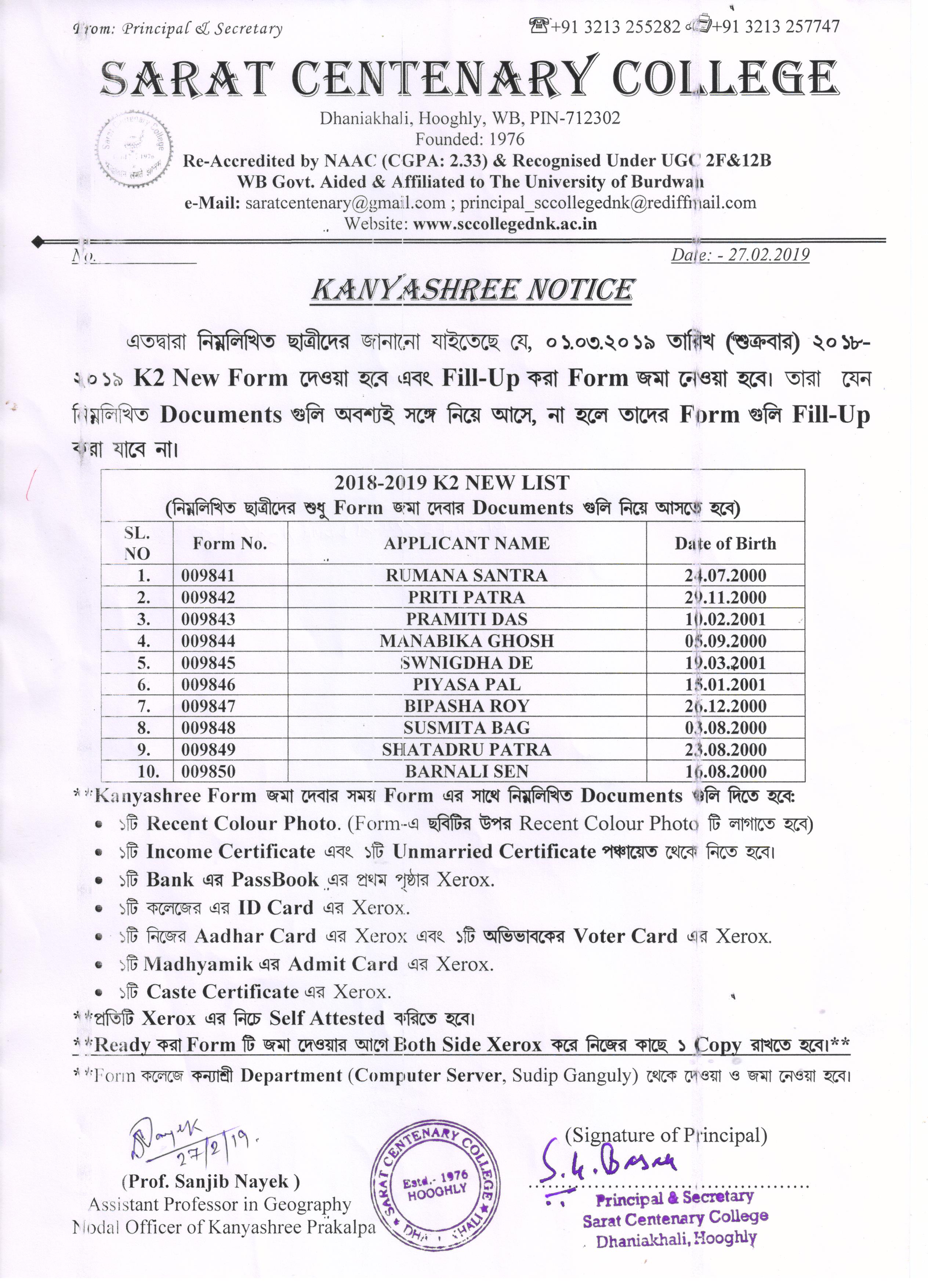 Kanyashree Notice for K2 Upgradation Form Fillup 2017-18