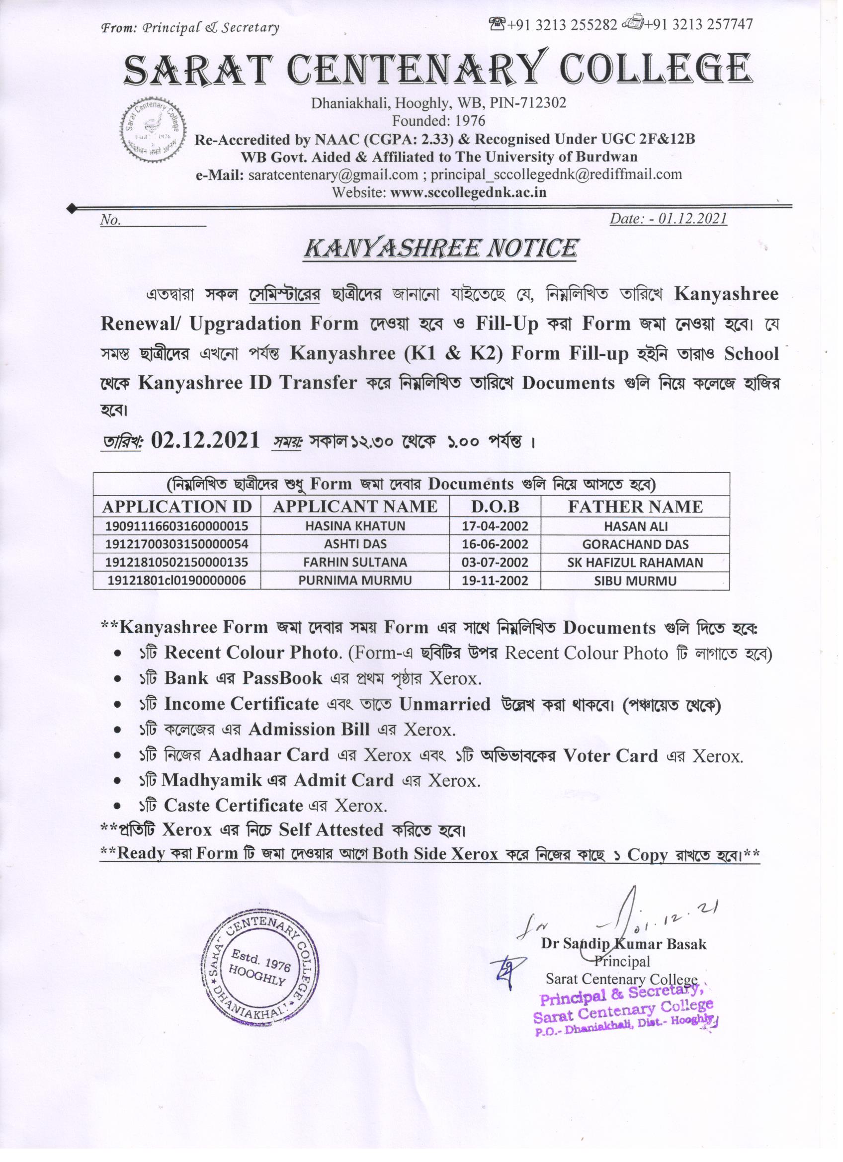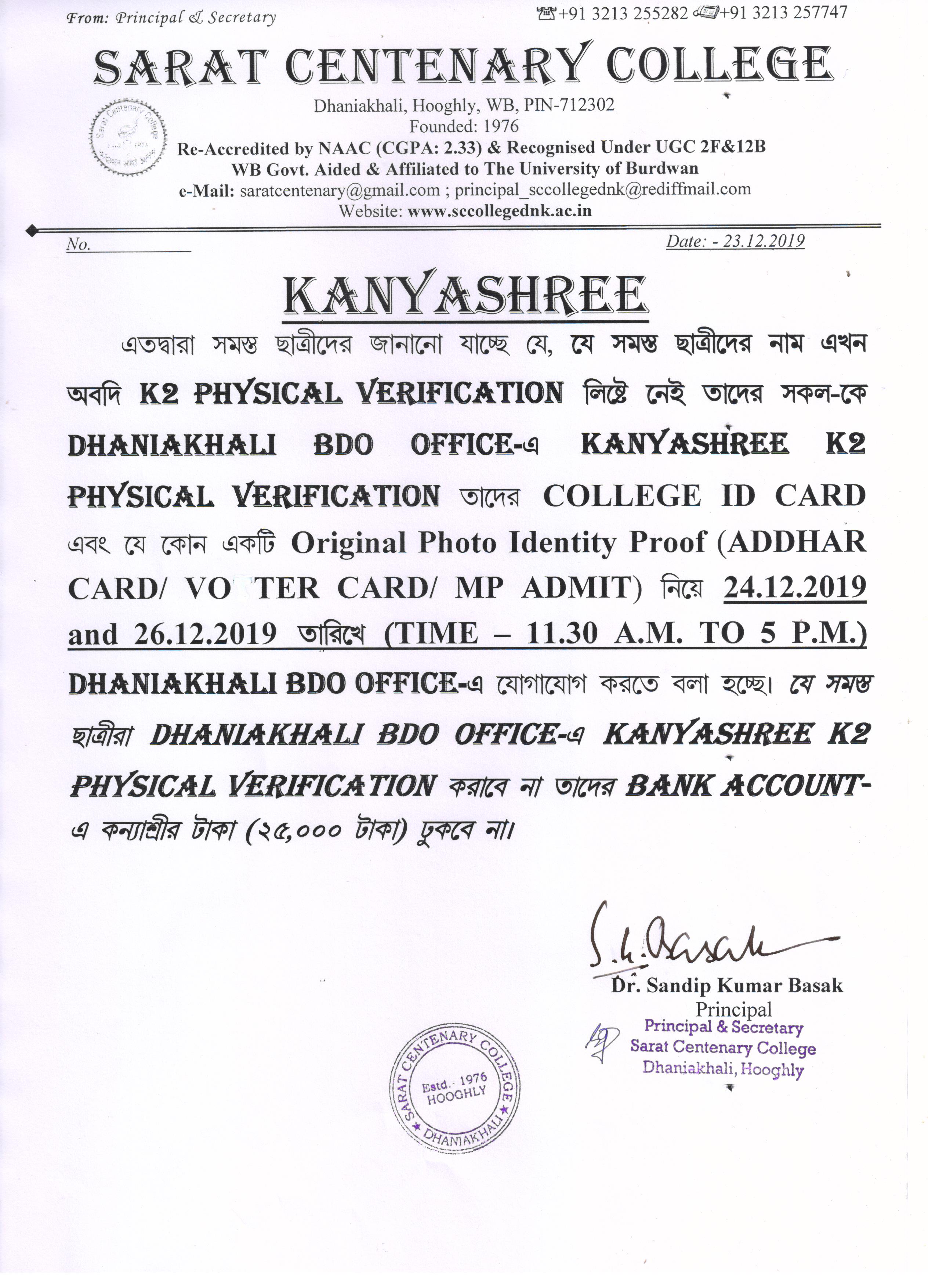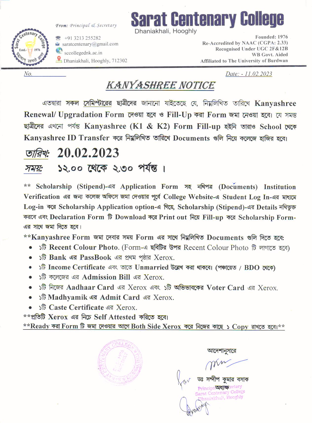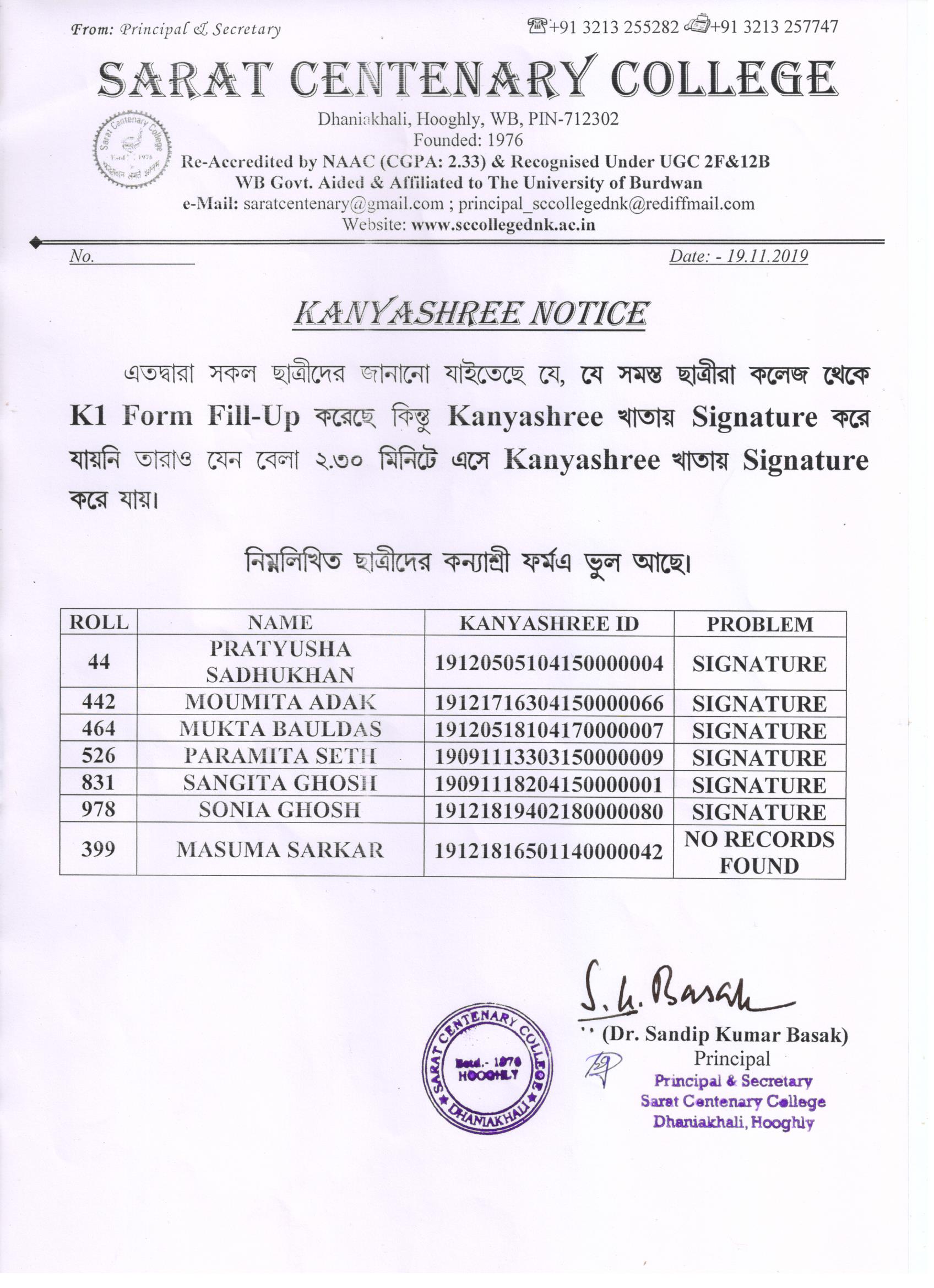 Kanyashree Notice for K2 Upgradation Form Fillup 2017-18