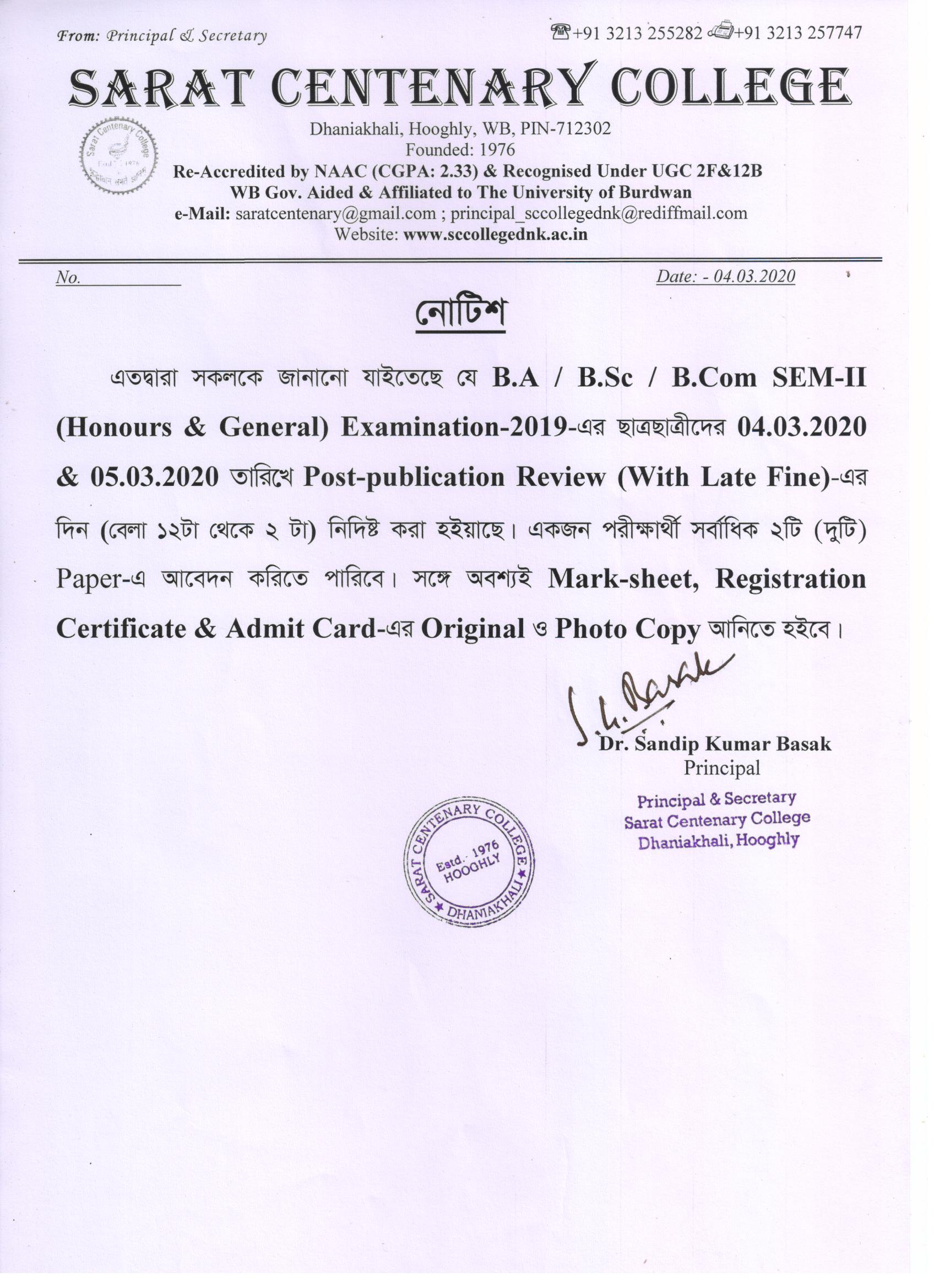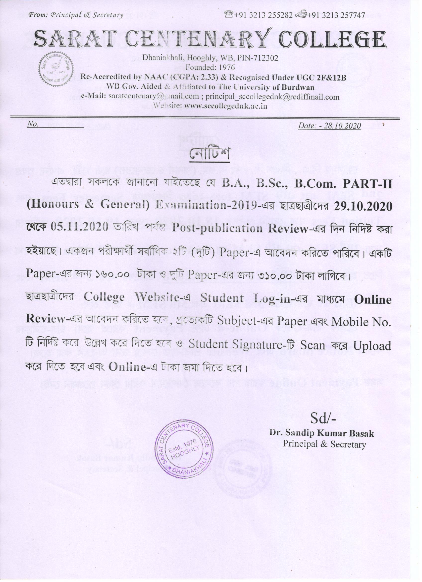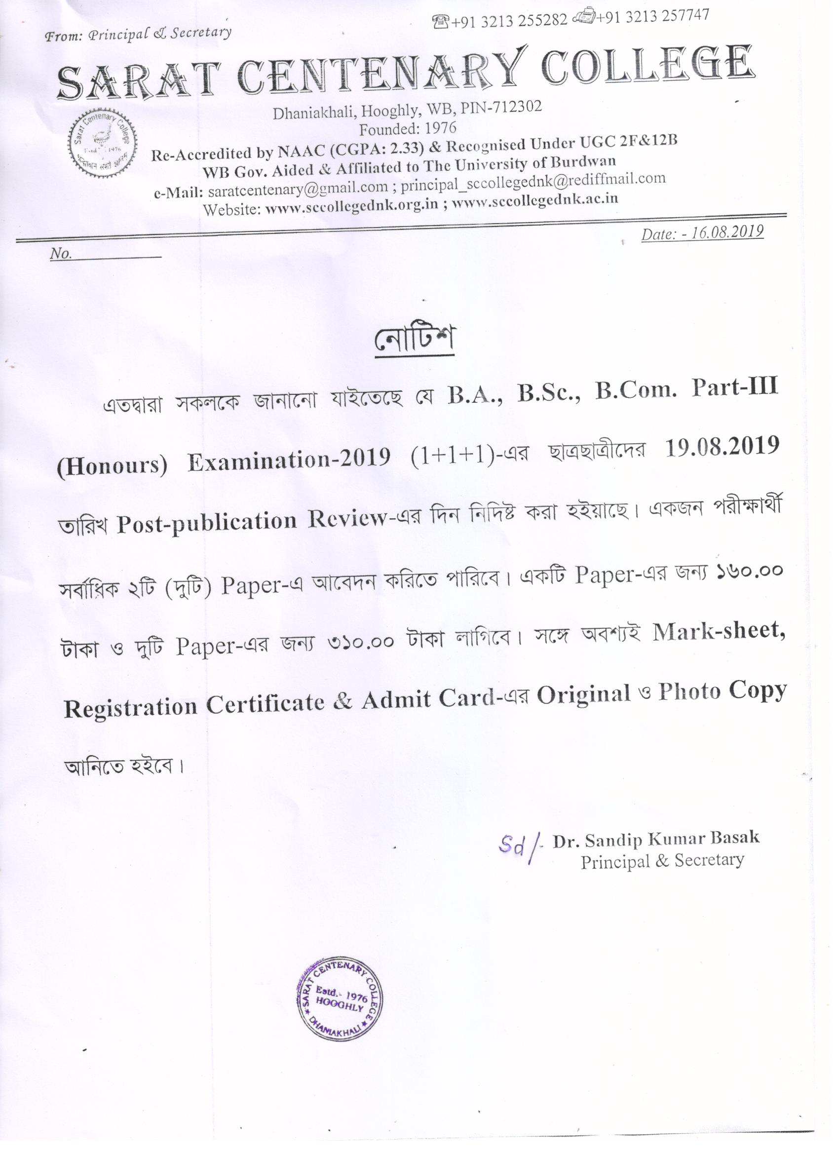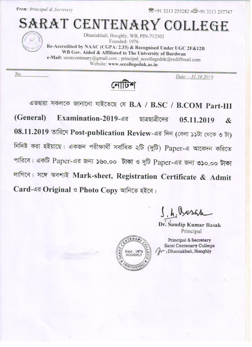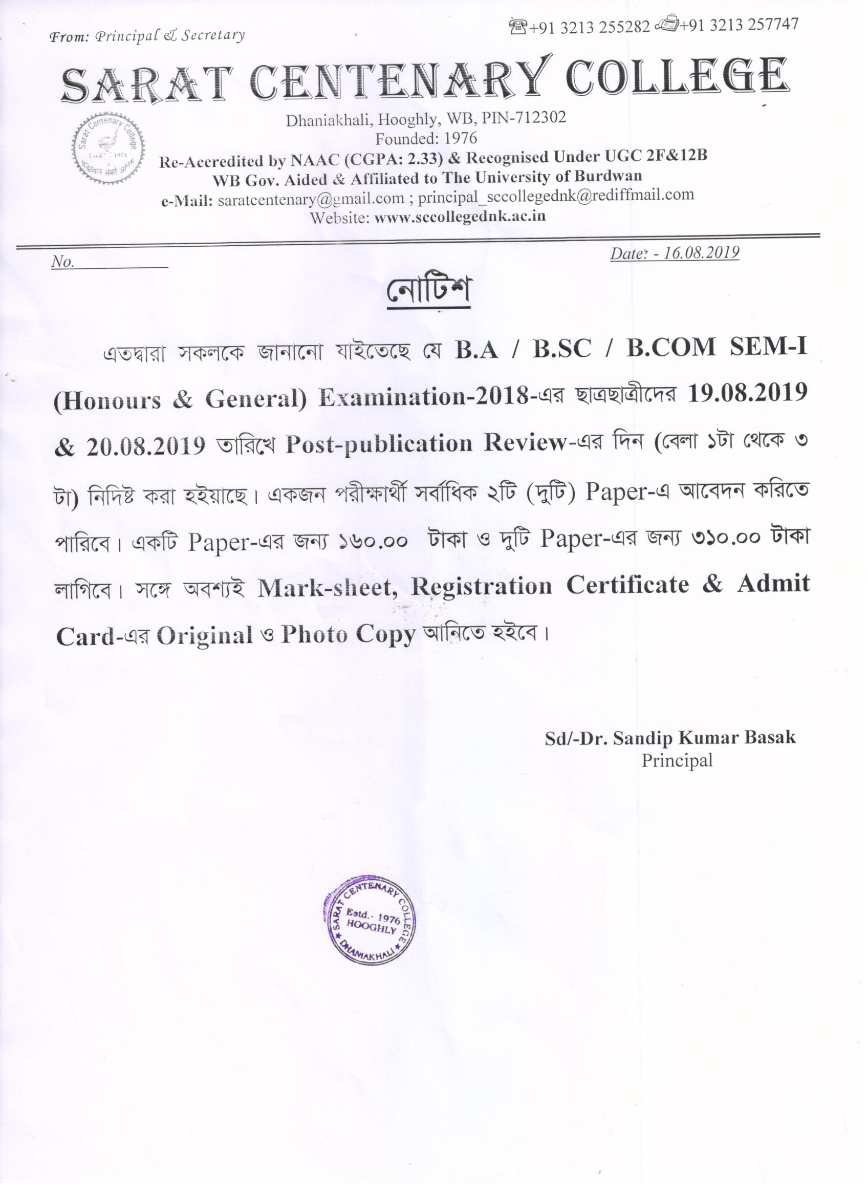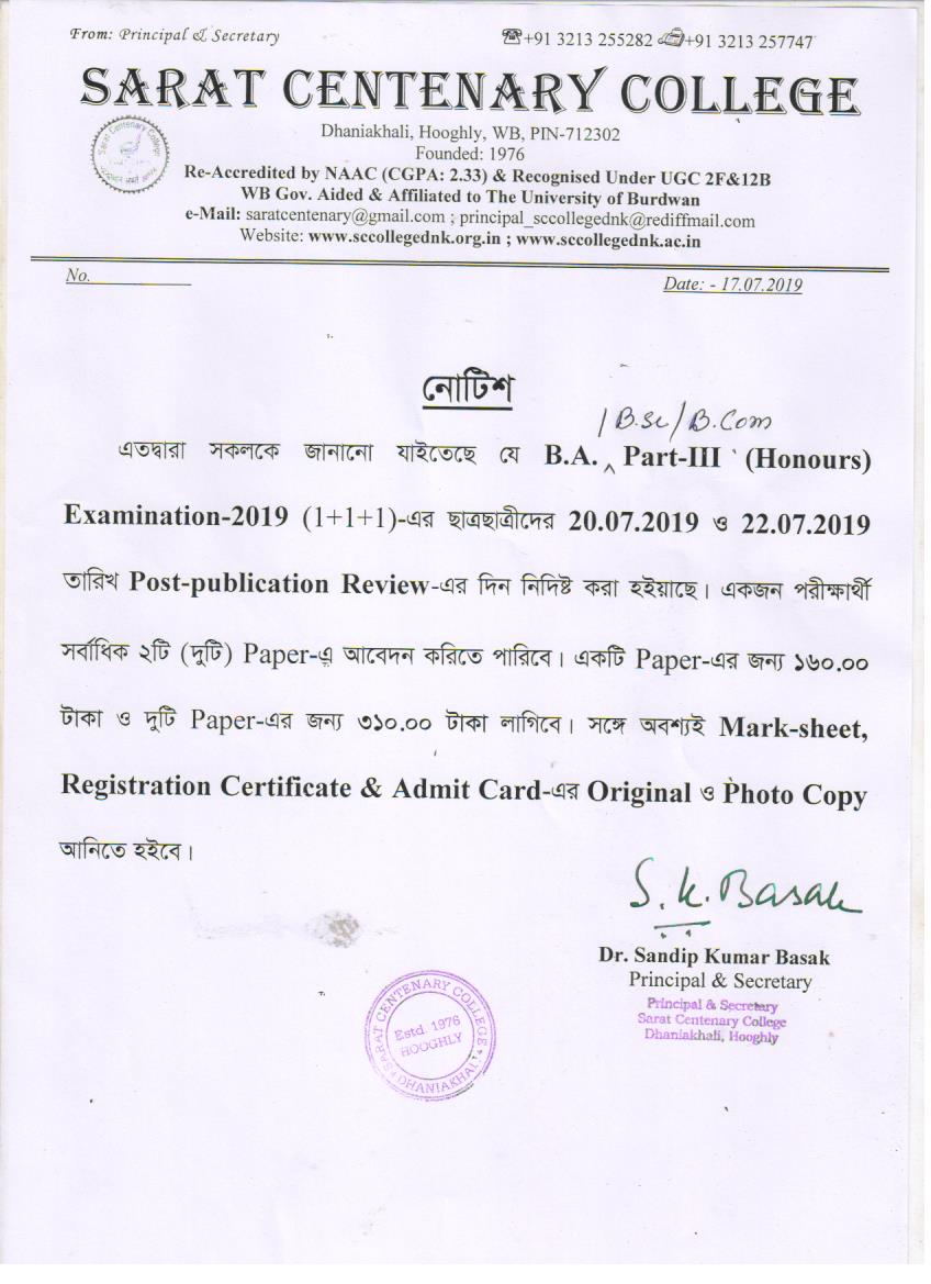 Notice for BA/BSc/BCom Part-1 Review Result