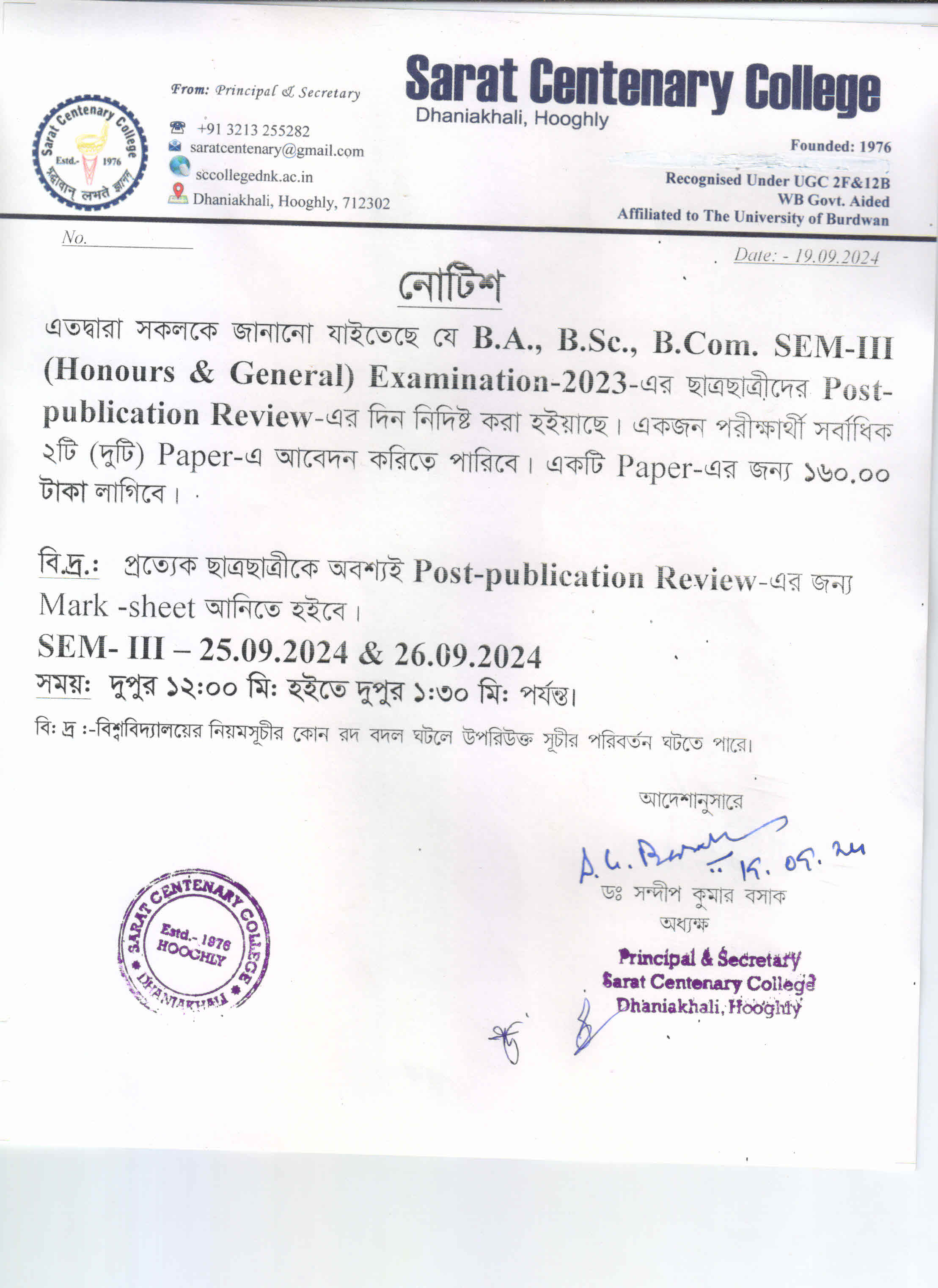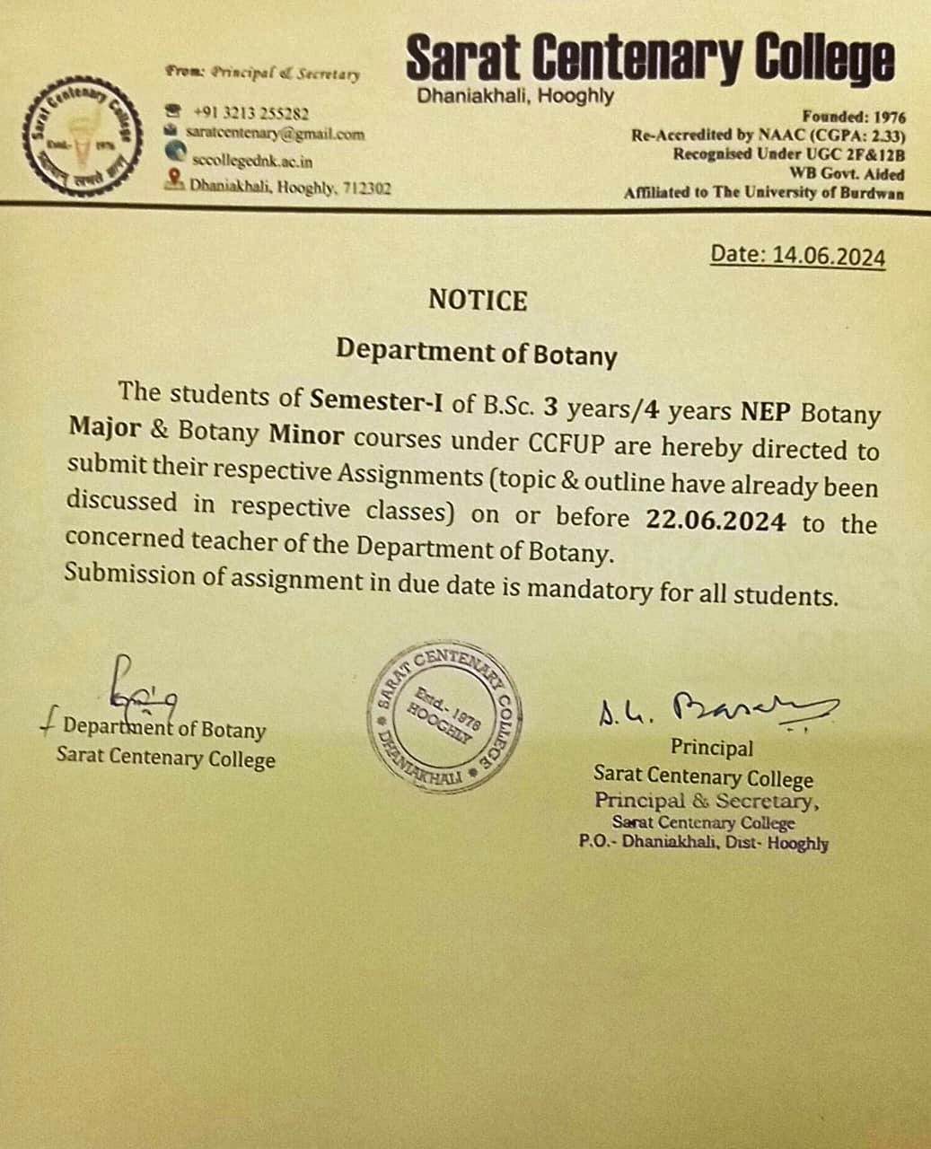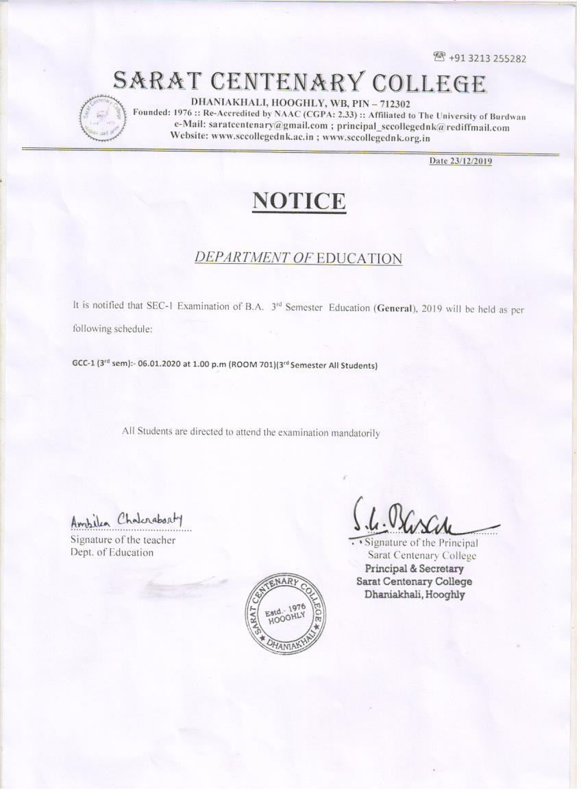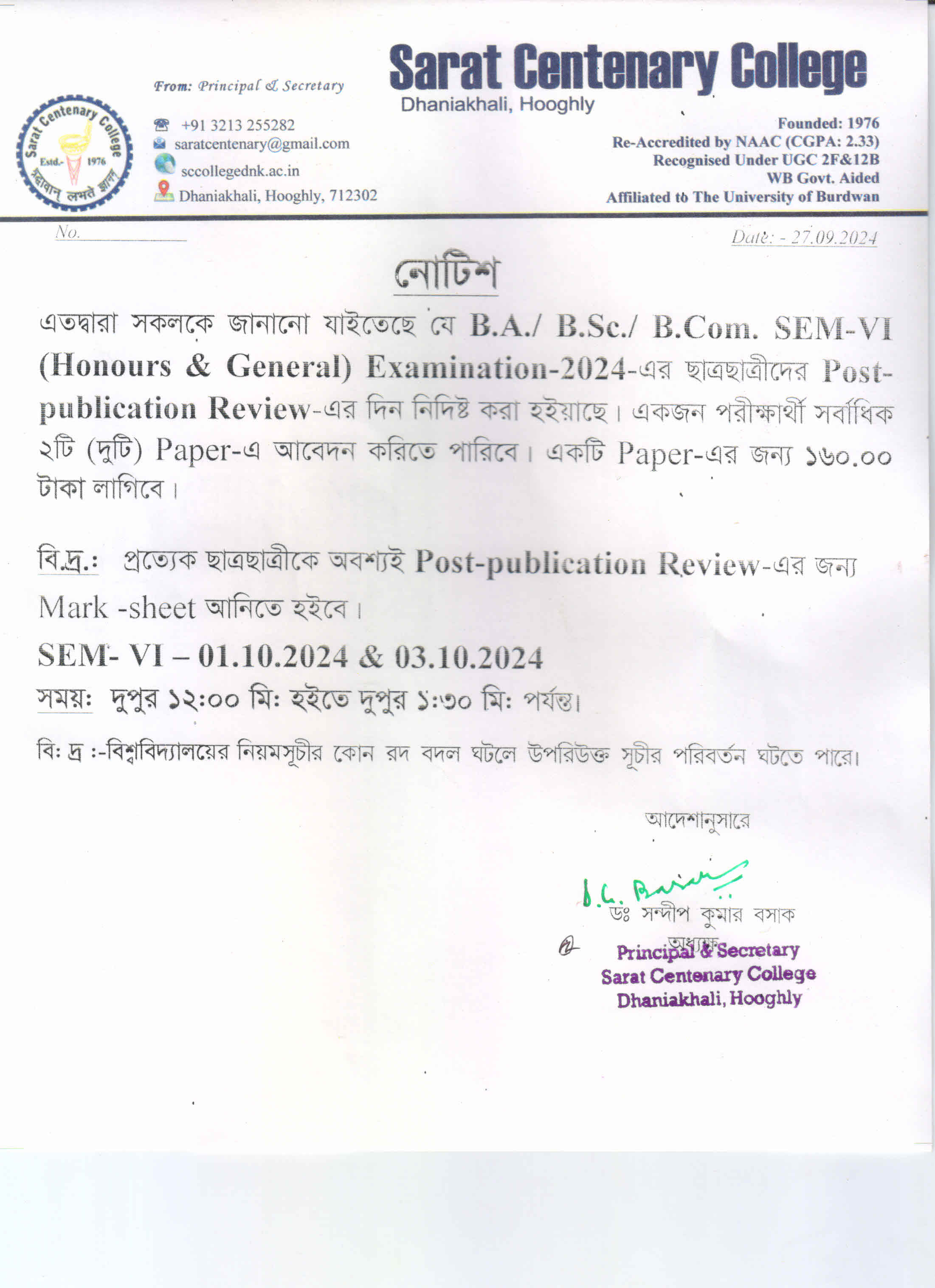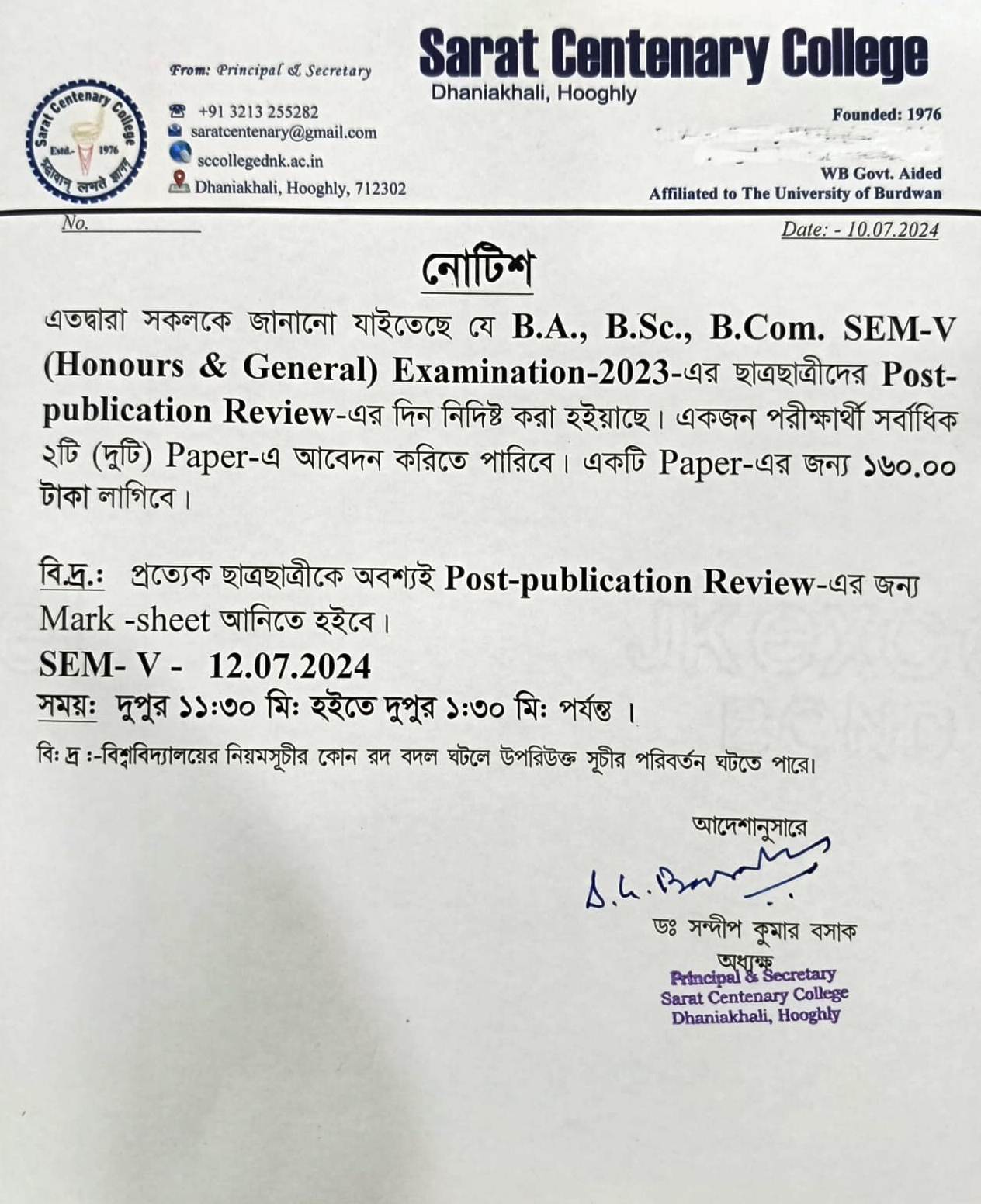 Notice for BA/BSc/BCom Part-1 Review Result