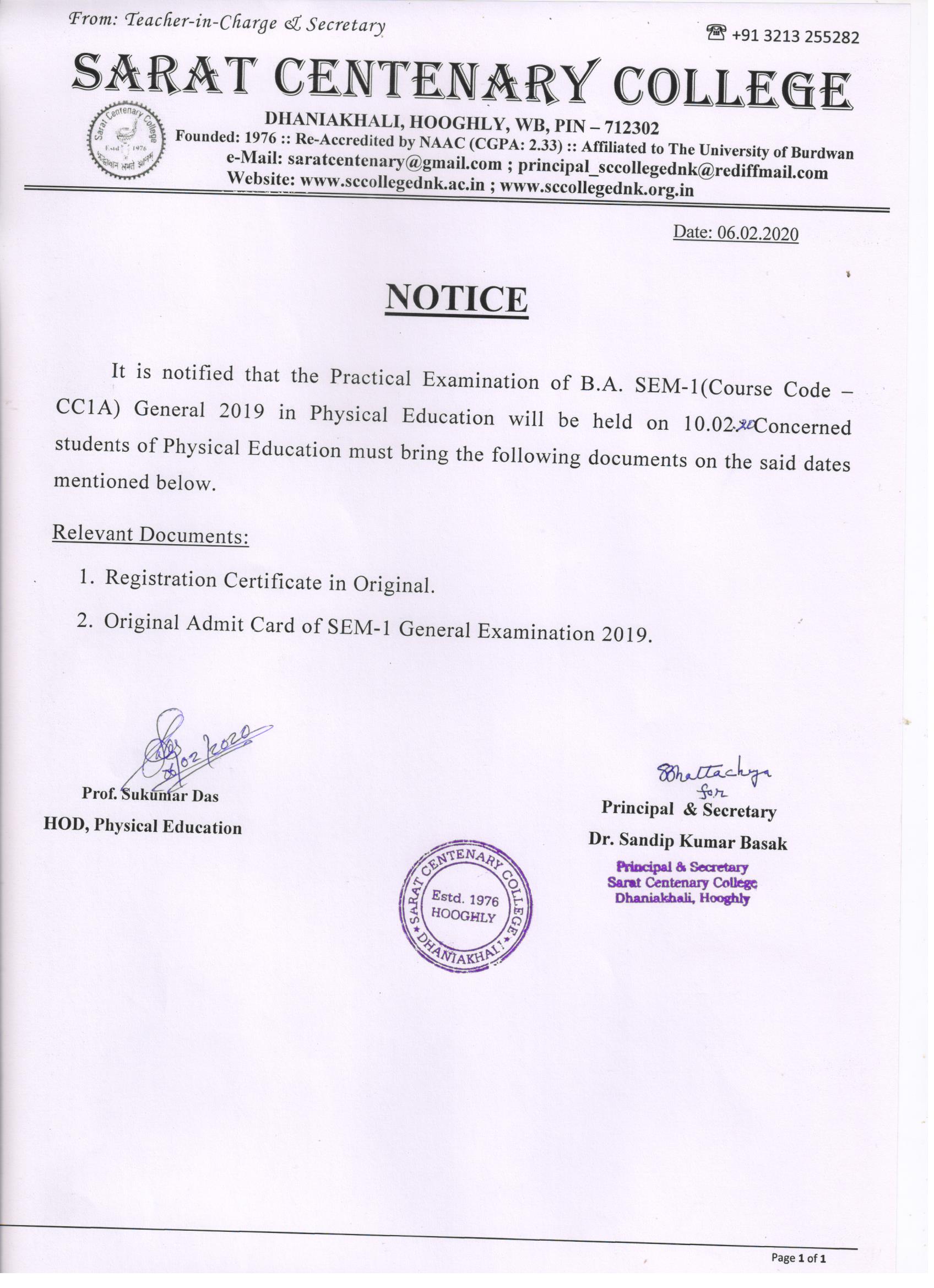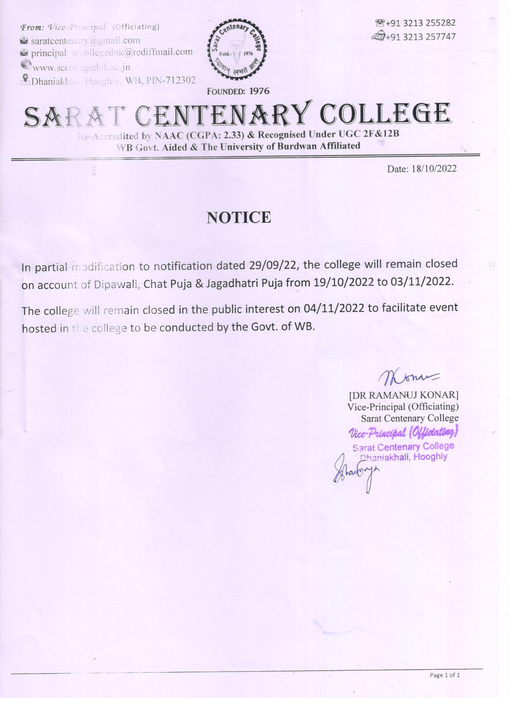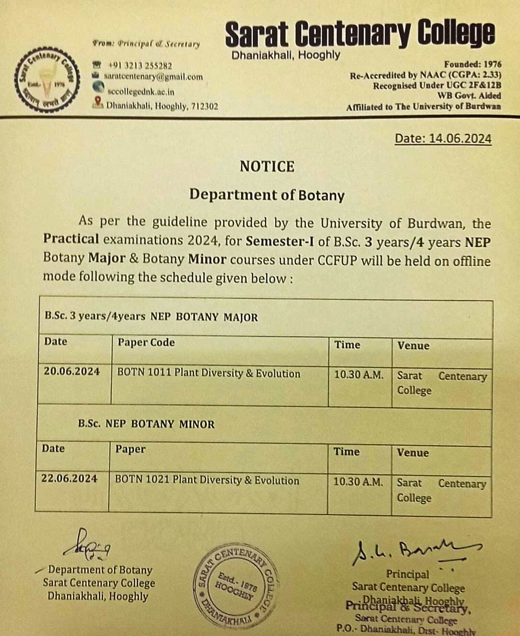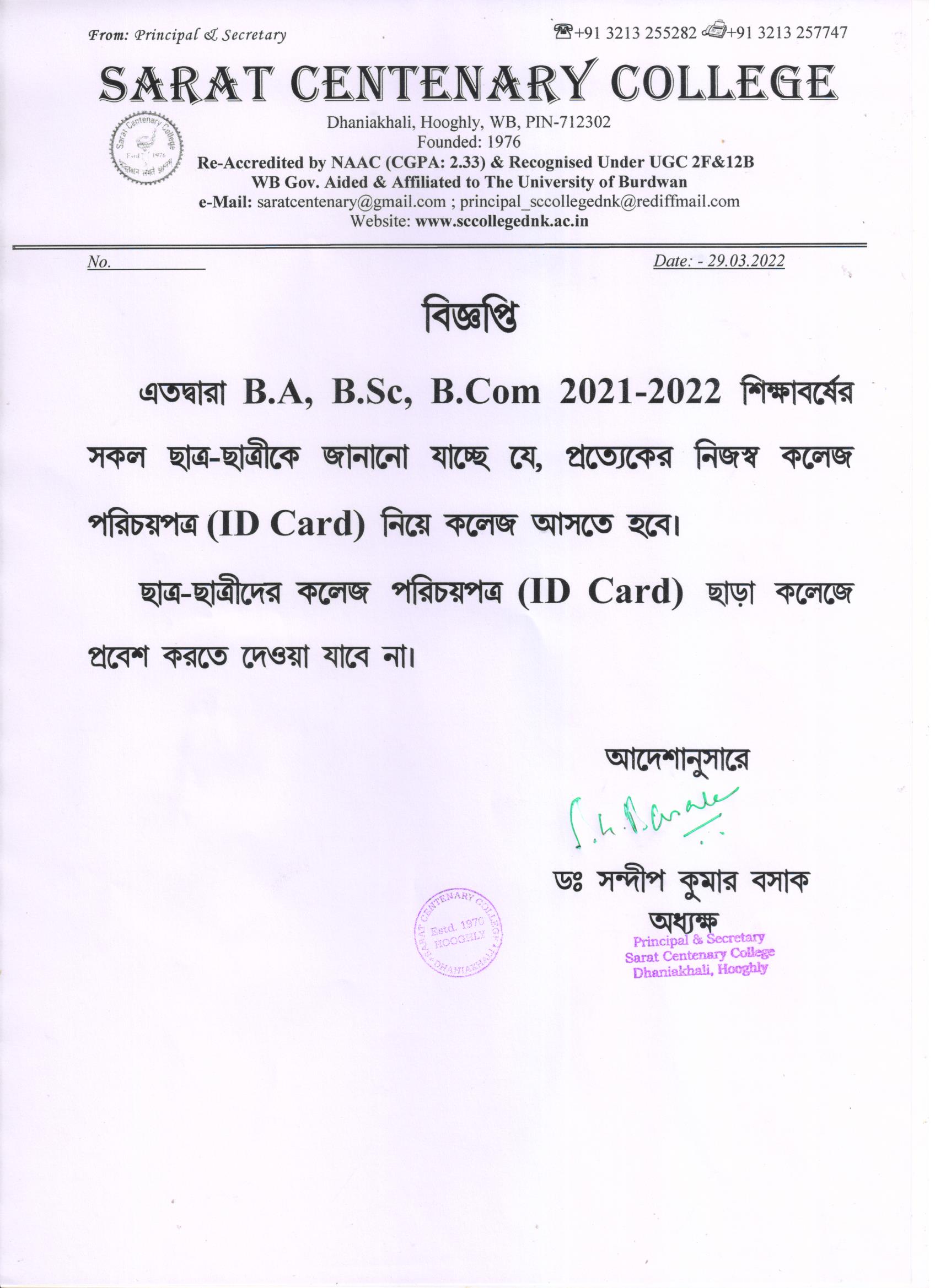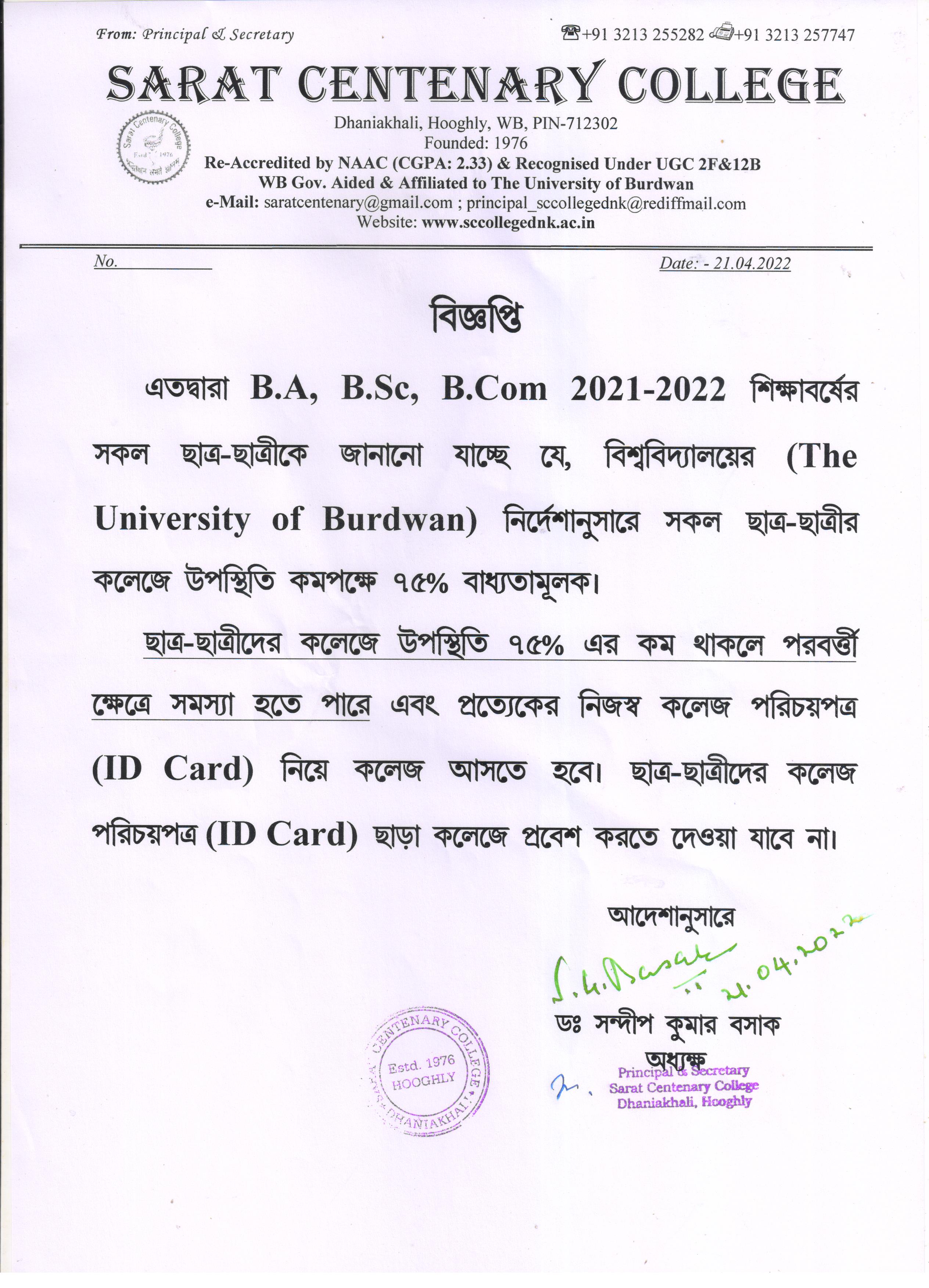 Notice for BA/BSc/BCom Part-1 Review Result