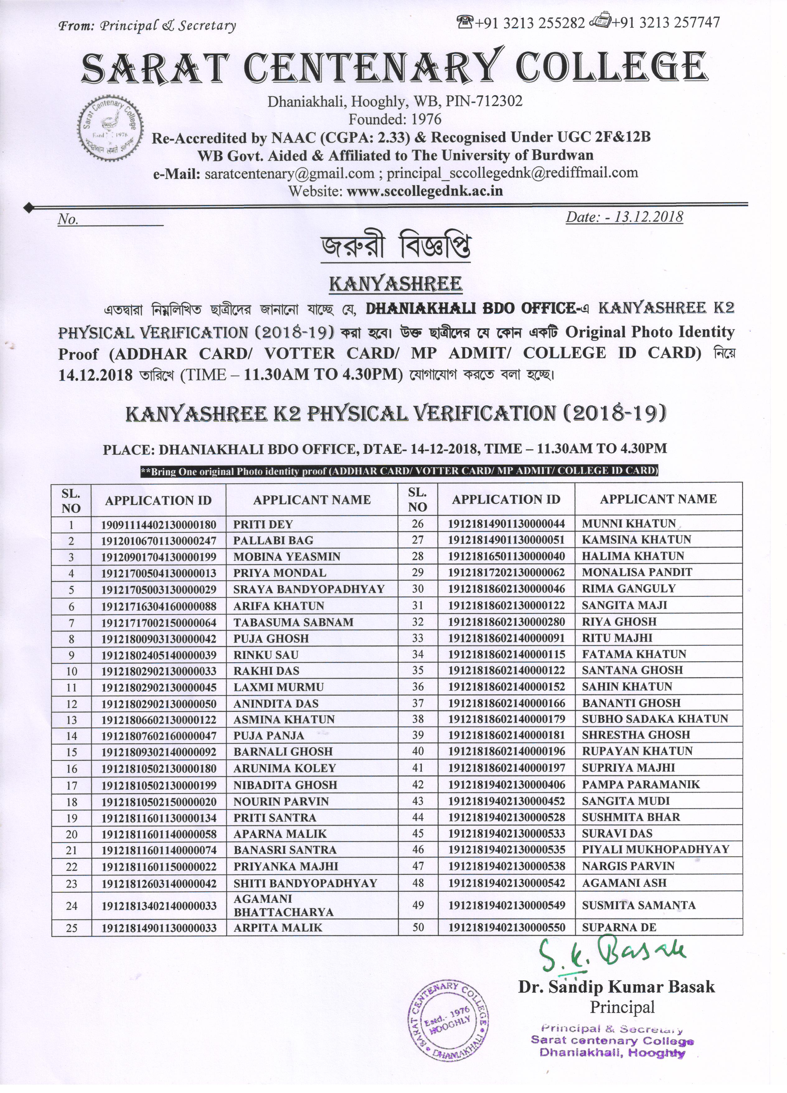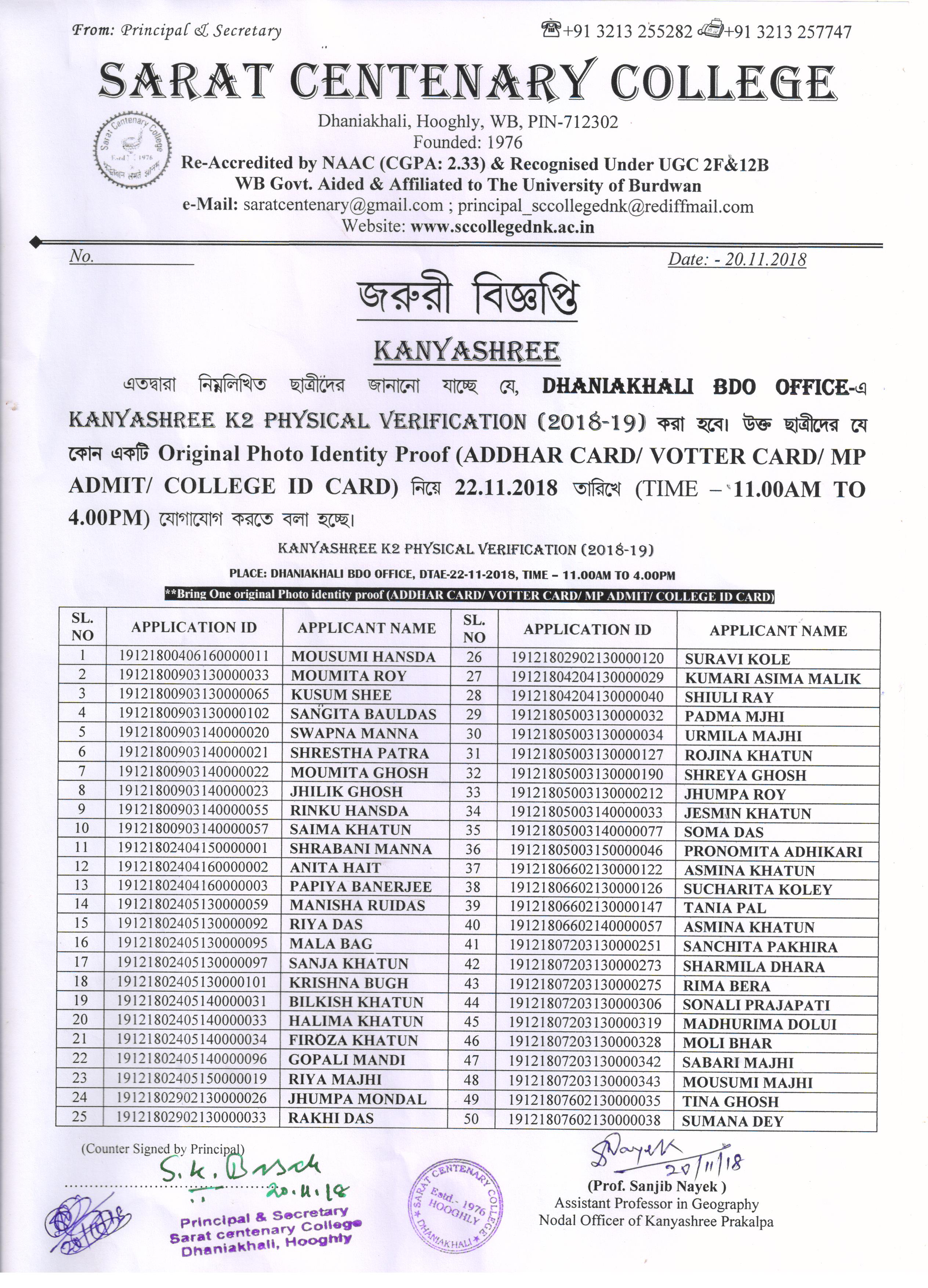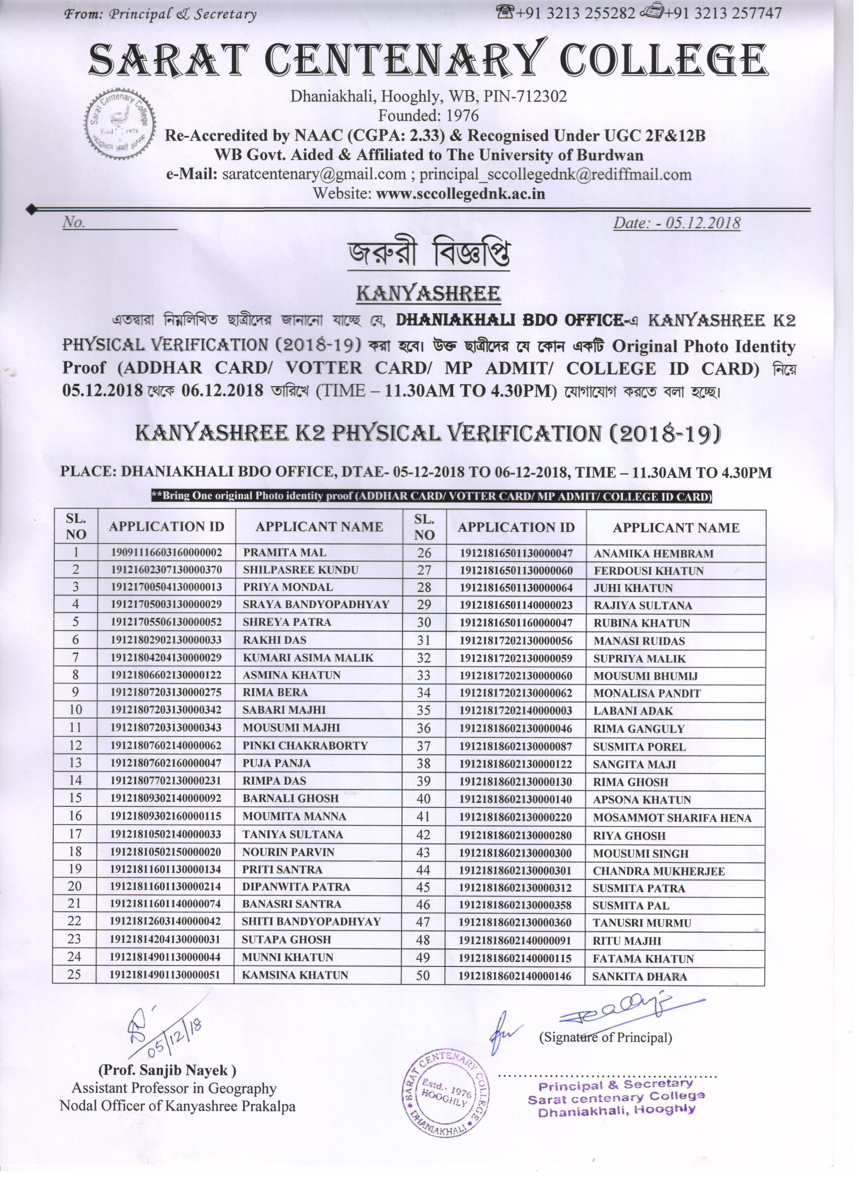 Provisional Register Students List (2018-19)