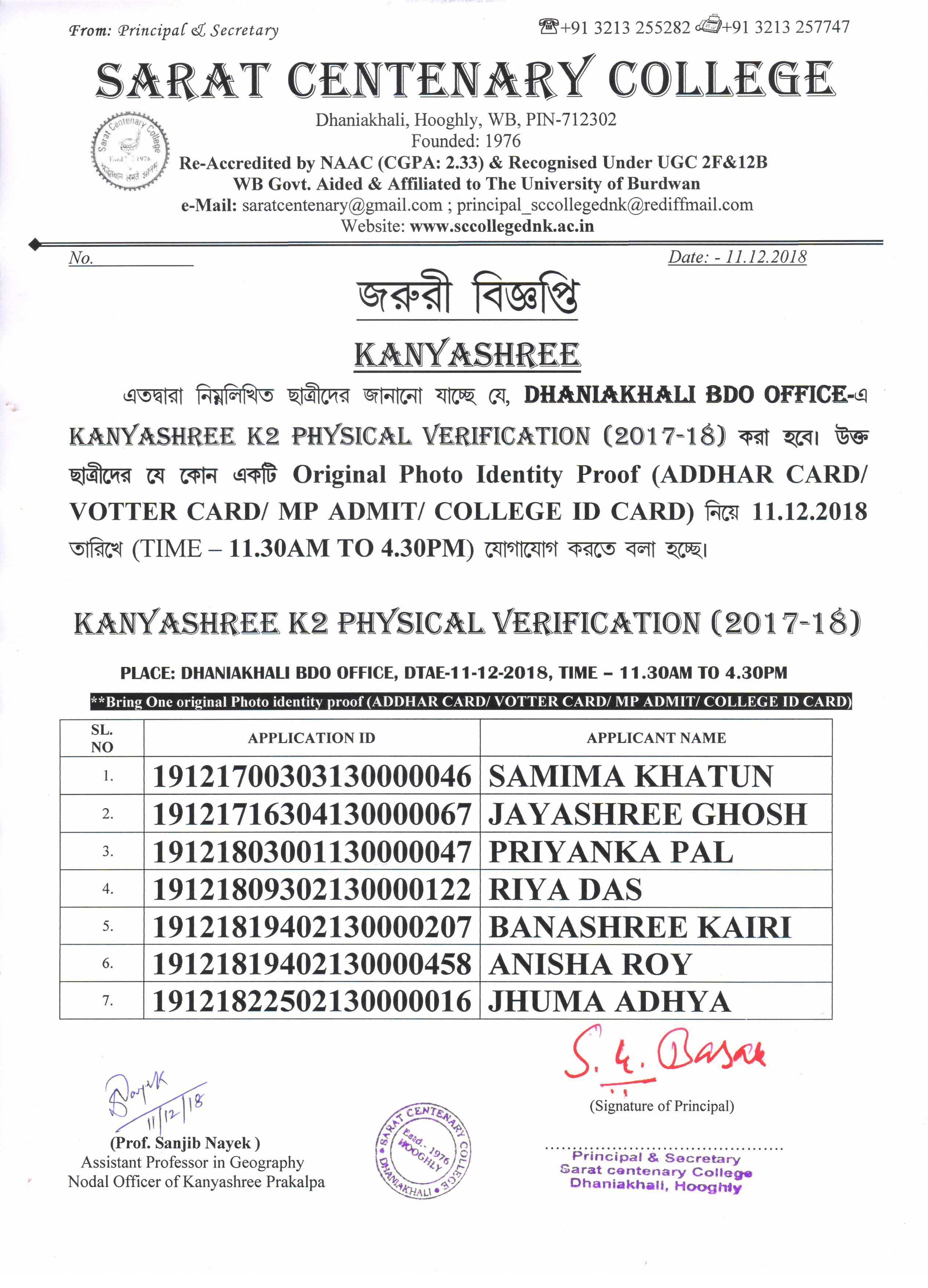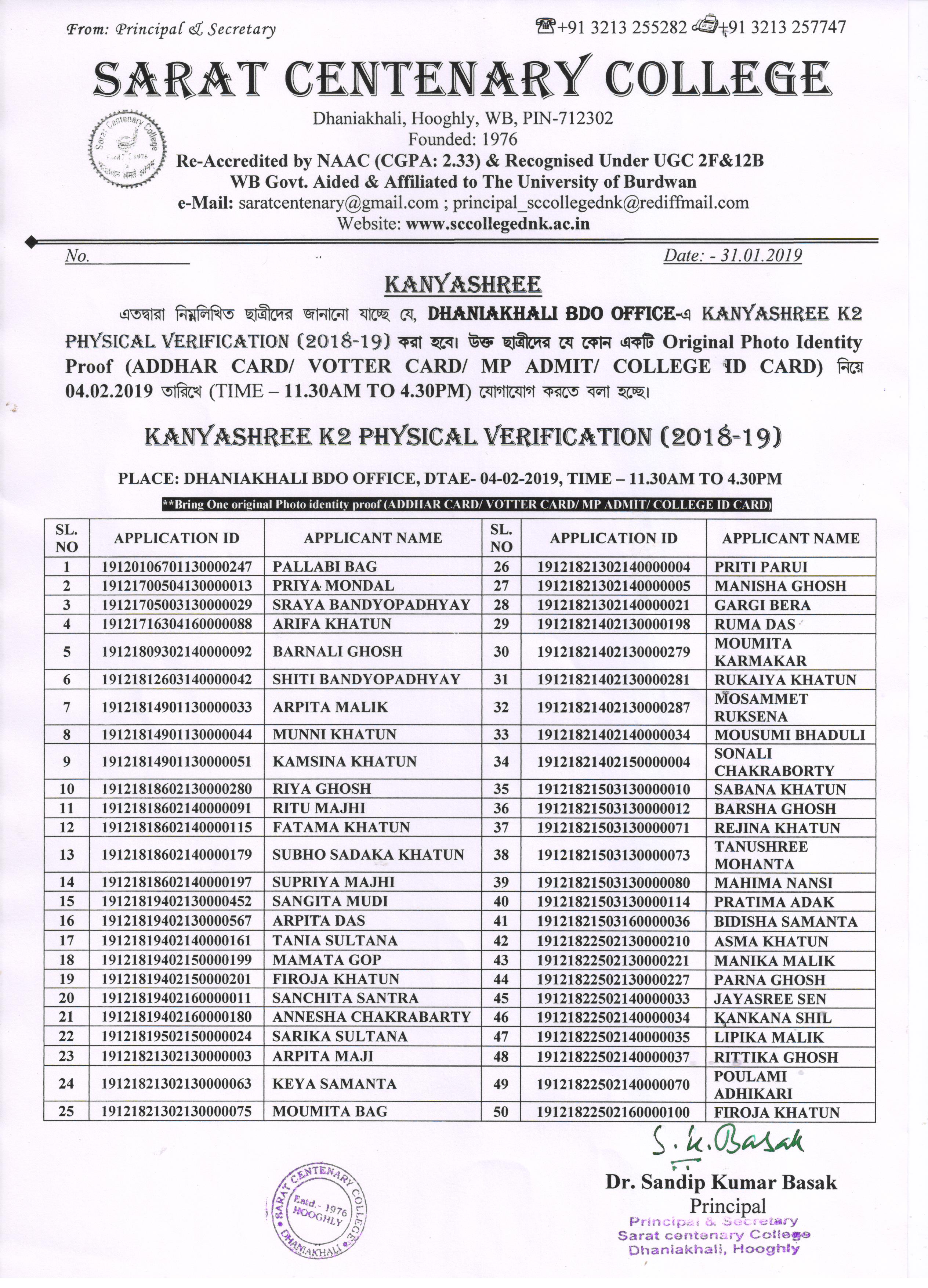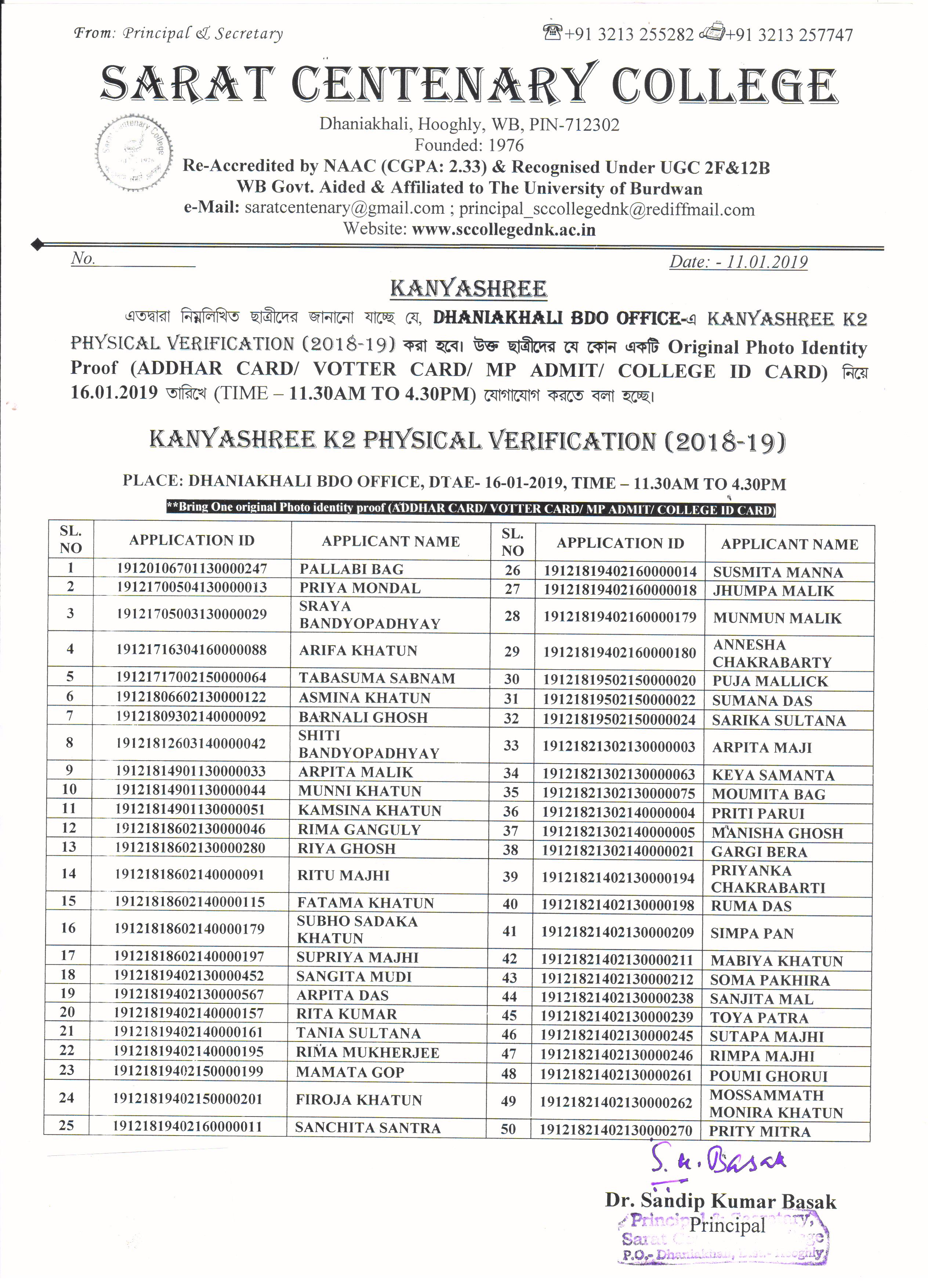 Provisional Register Students List (2018-19)