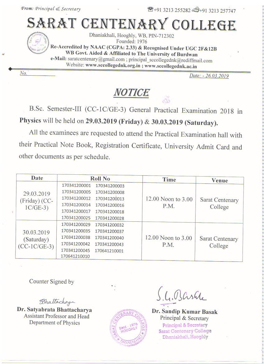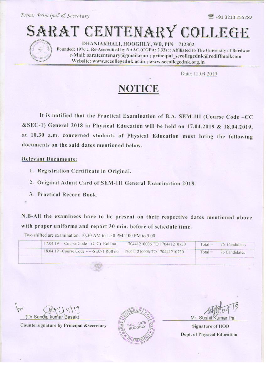Practical Examination of Phy Education BA Part-III (2018) on 29_06_2018