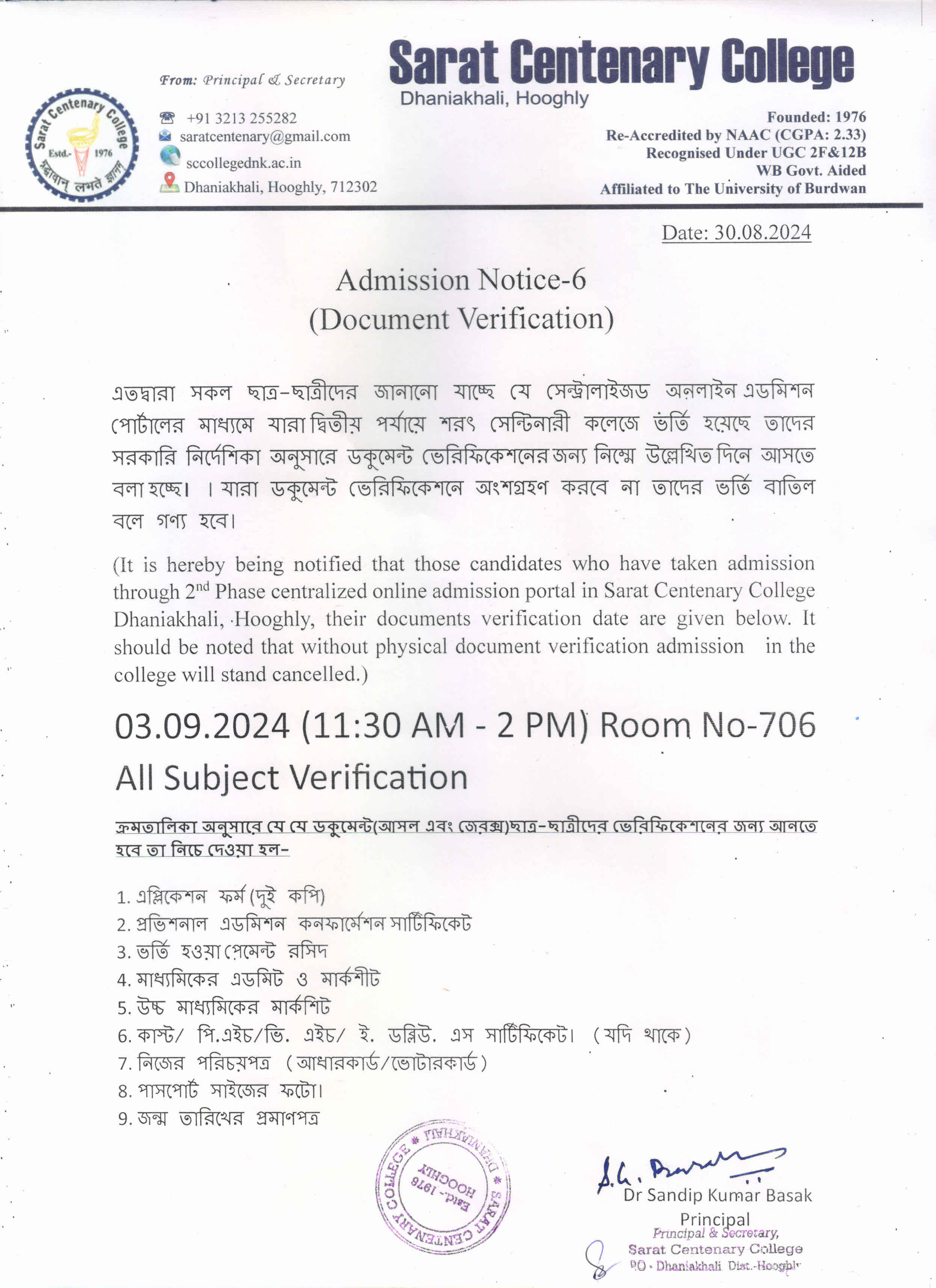 Admission Notice - 8