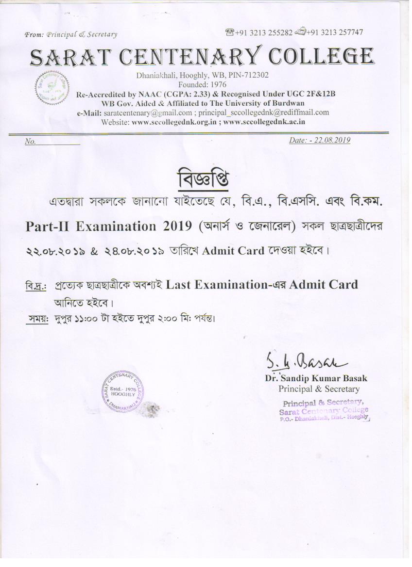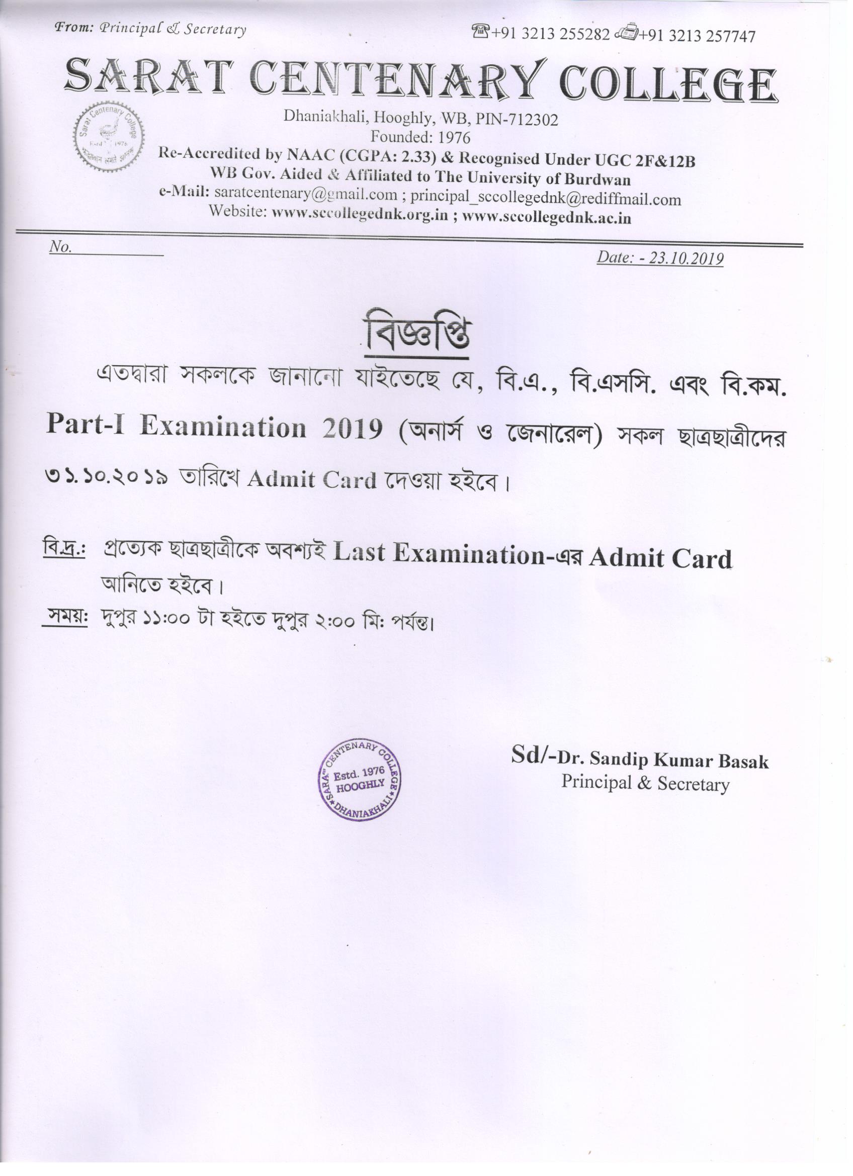 Part-I Admit Card distribution